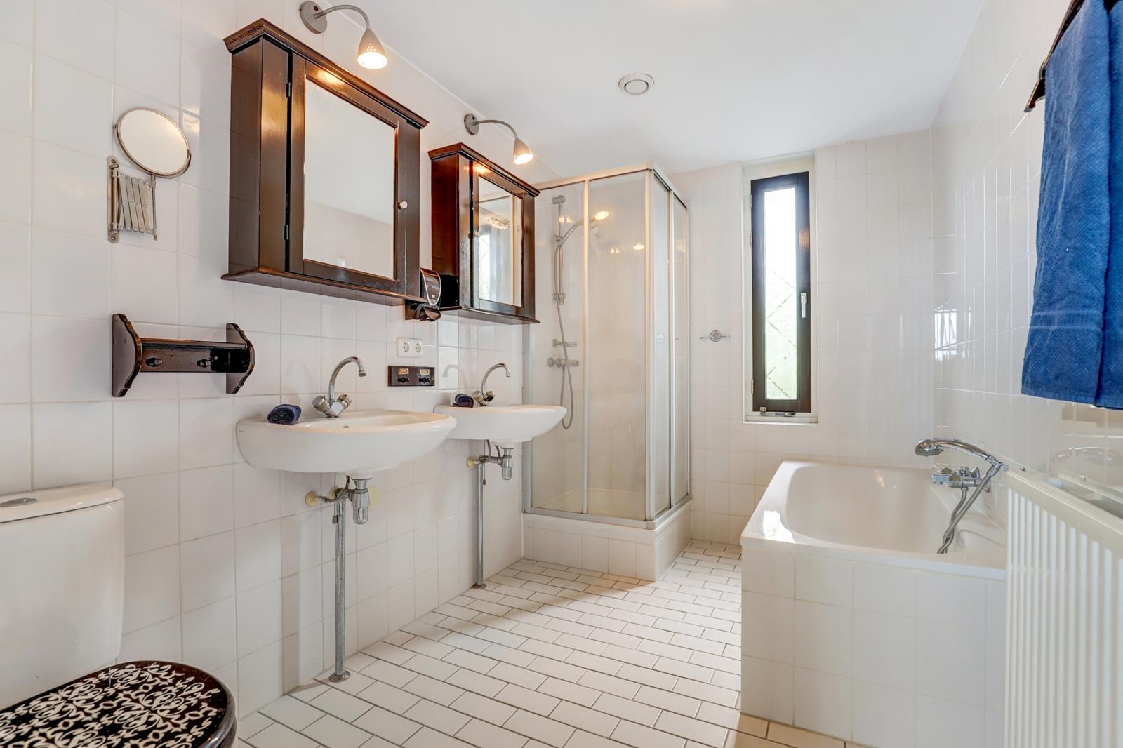De overloop leidt je naar de master bedroom aan de voorzijde. De comfortabele badkamer met vloerverwarming beschikt over een ligbad, aparte douche, dubbele wastafel met meubel en toilet.