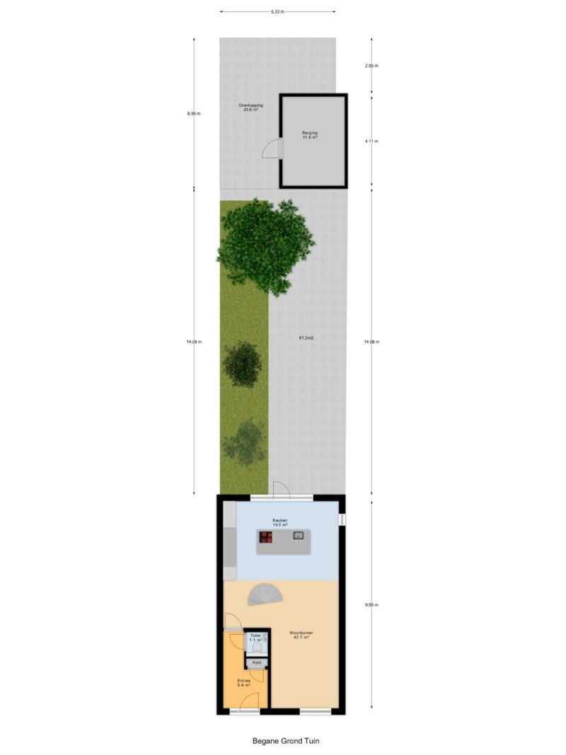 - Diepe tuin op het zuiden (20 meter inclusief carport)