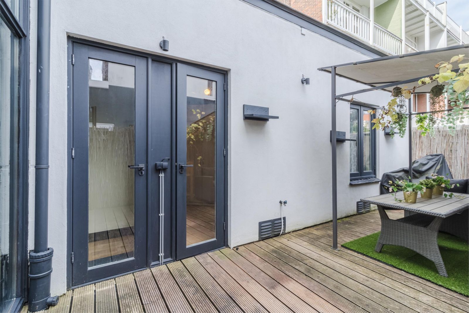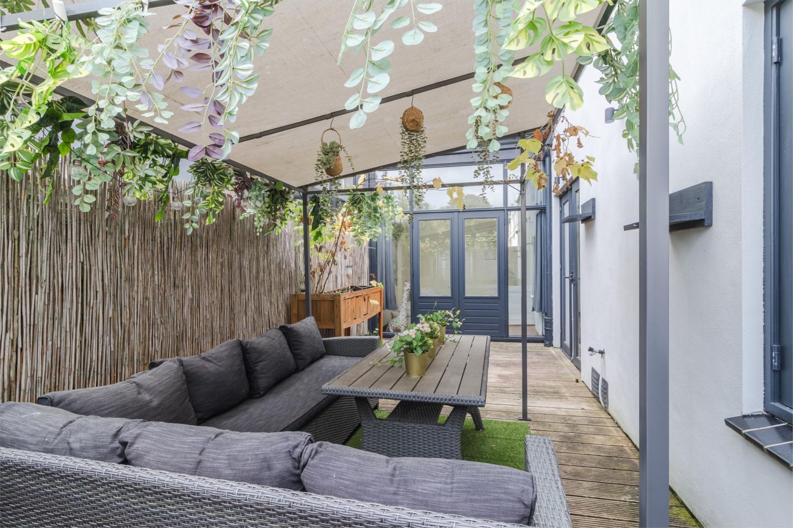 -Achtertuin (ca. 7.00 x 3.00) met veranda en sfeervolle verlichting – perfect om te ontspannen na een drukke dag.