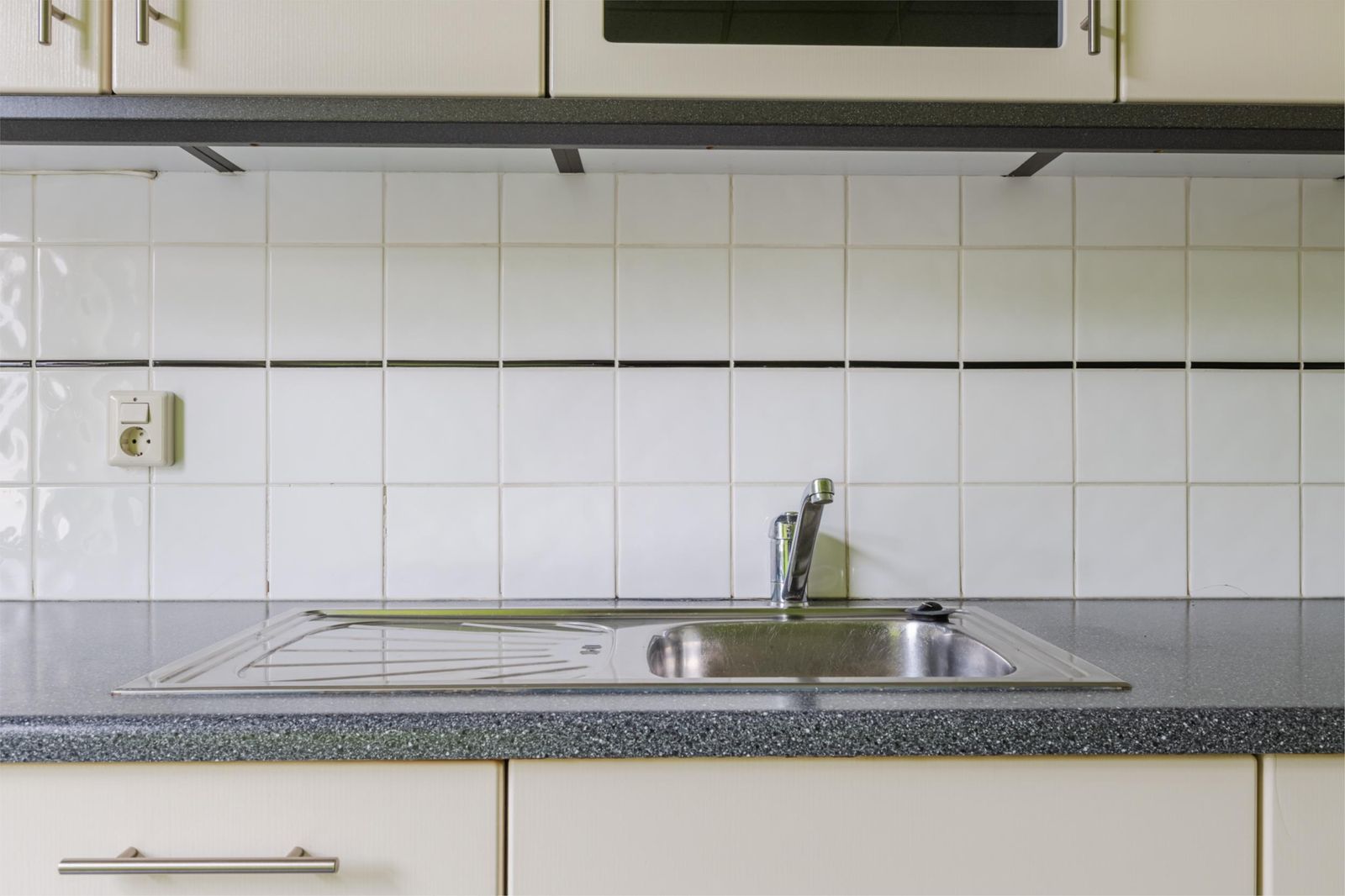 Ruime L-vormige woonkamer met veel lichtinval en toegang tot het grote dakterras, perfect voor buiten dineren of ontspannen. Aangrenzend bevindt zich de ruime keuken, voorzien van voldoende werk- en opbergruimte.