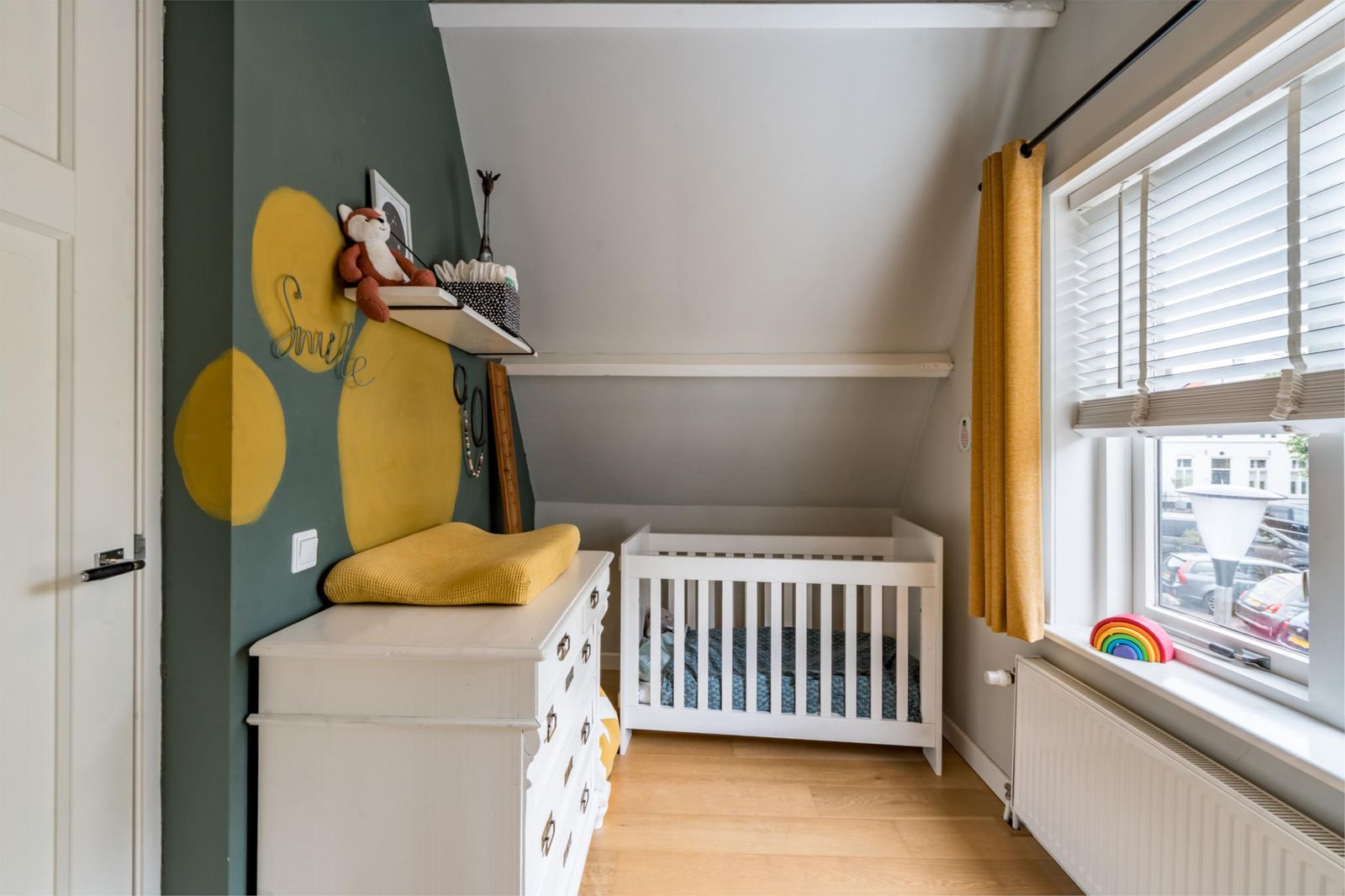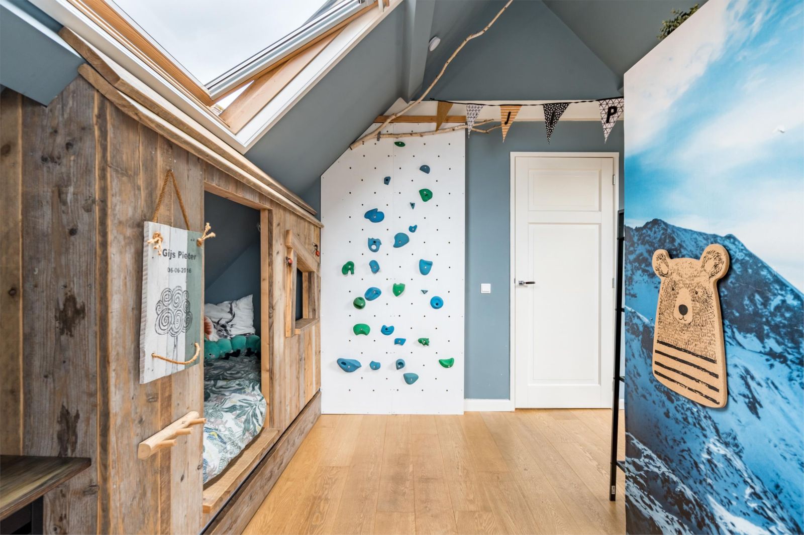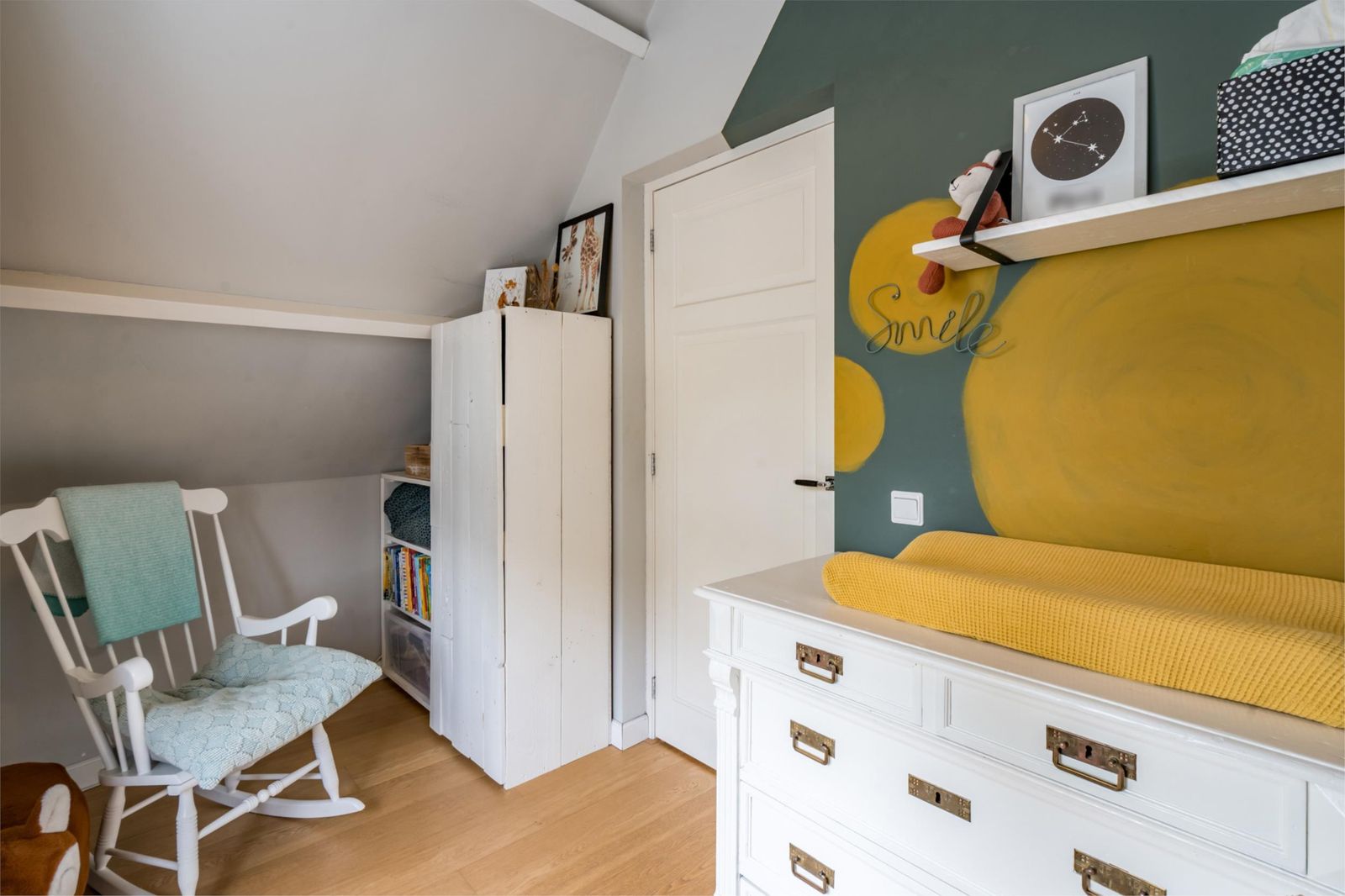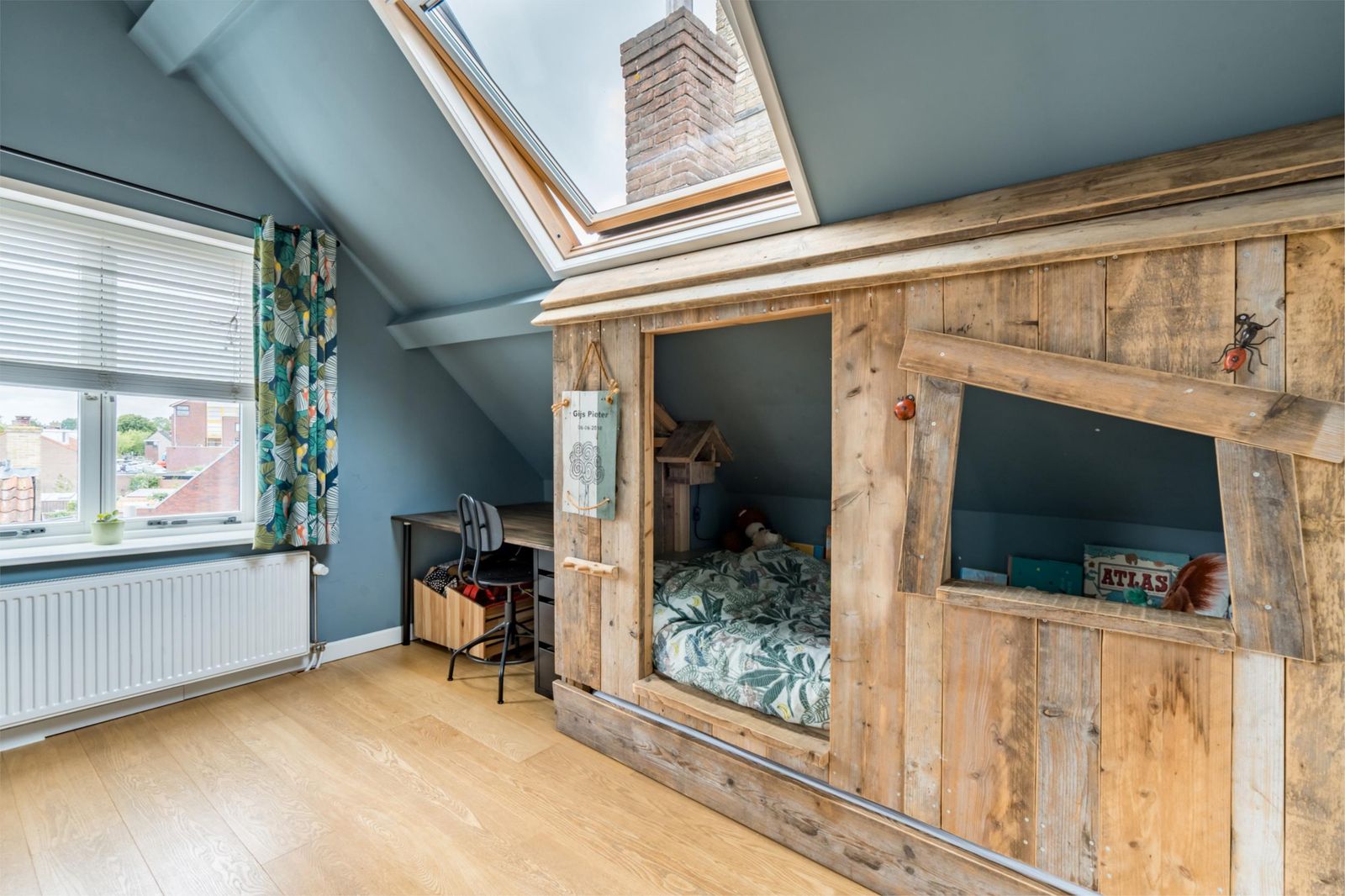 De overloop geeft toegang tot de slaapkamer aan de voorzijde, de betegelde badkamer met toilet en douche én de grote slaapkamer aan de achterzijde. Van deze slaapkamer kunnen eenvoudig twee slaapkamers worden gemaakt. Dankzij de twee grote Velux-dakramen komt er veel natuurlijk licht binnen.