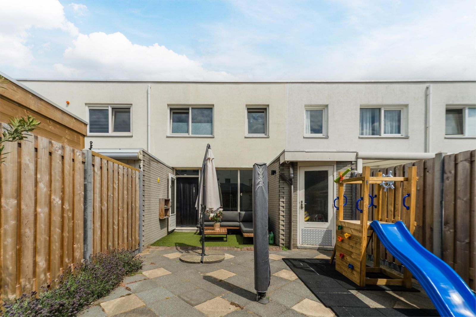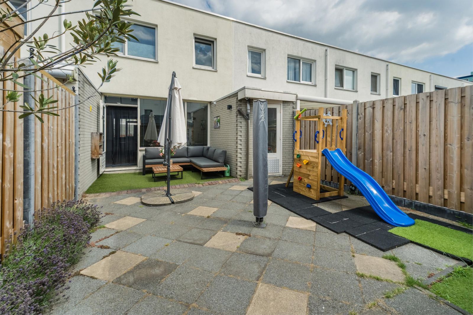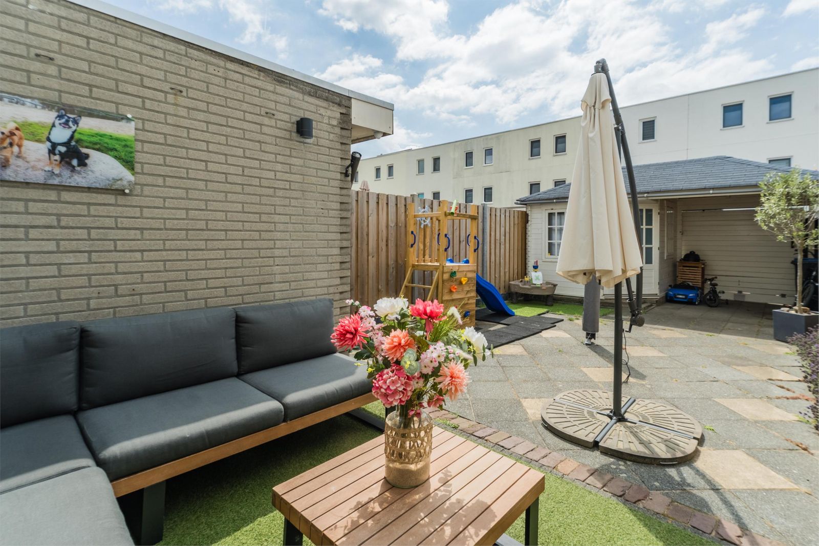 Via de achterdeur in de woonkamer stap je zo de zonnige achtertuin in van ca.55m², gelegen op het zuiden. De tuin is nagenoeg onderhoudsvrij en biedt volop ruimte om met familie of vrienden te genieten van lange, gezellige avonden.