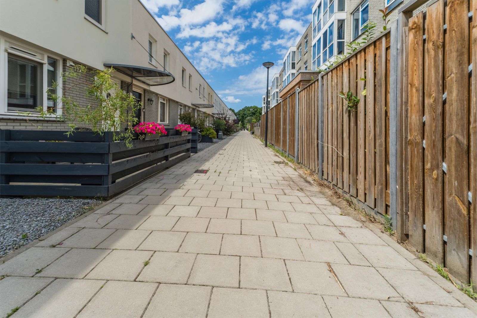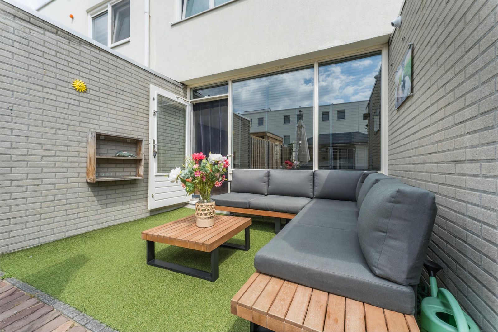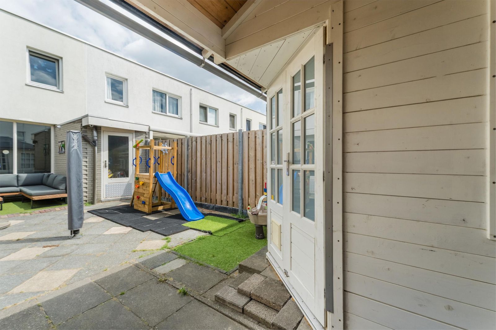 Via de achterdeur in de woonkamer stap je zo de zonnige achtertuin in van ca.55m², gelegen op het zuiden. De tuin is nagenoeg onderhoudsvrij en biedt volop ruimte om met familie of vrienden te genieten van lange, gezellige avonden.