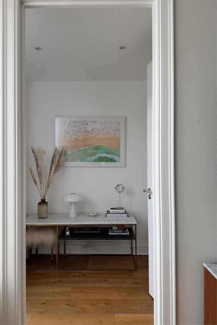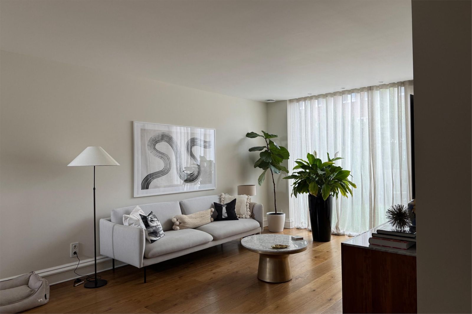 Bij binnenkomst word je verwelkomd door een stijlvolle entree met een klassieke deurportaal, een chique dressoir en een luxe toiletruimte met een marmeren mozaïek in basket weave-patroon. De ruime sfeervolle woonkamer is een perfecte mix van modern en warm. De woonkamer is voorzien van een parketvloer die naadloos door het huis doorloopt, linnen gordijnen en subtiele inbouwspots die zorgen voor indirect licht. Via het imposante panoramavenster bereik je direct de afgesloten tuin, wat aanvoelt als een verlengstuk van de woning. Hier geniet je het hele jaar door van luxe door de zone voor de buitenkeuken.