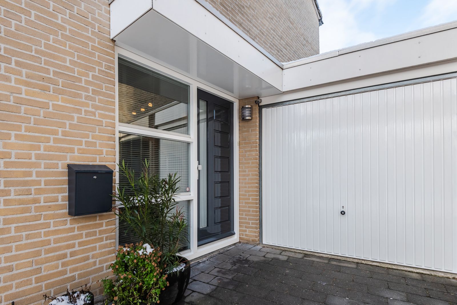 Naast een groen aangelegde voortuin, vindt u aan de voorzijde van de woning een oprit welke parkeerruimte biedt en toegang verschaft tot de aangebouwde garage. Via de garage, die voorzien is van elektra en een kraan met spoelbak, kunt u doorlopen naar de achtertuin, die ook bereikbaar is via achterom of via de schuifpui of achterdeur van de woning.