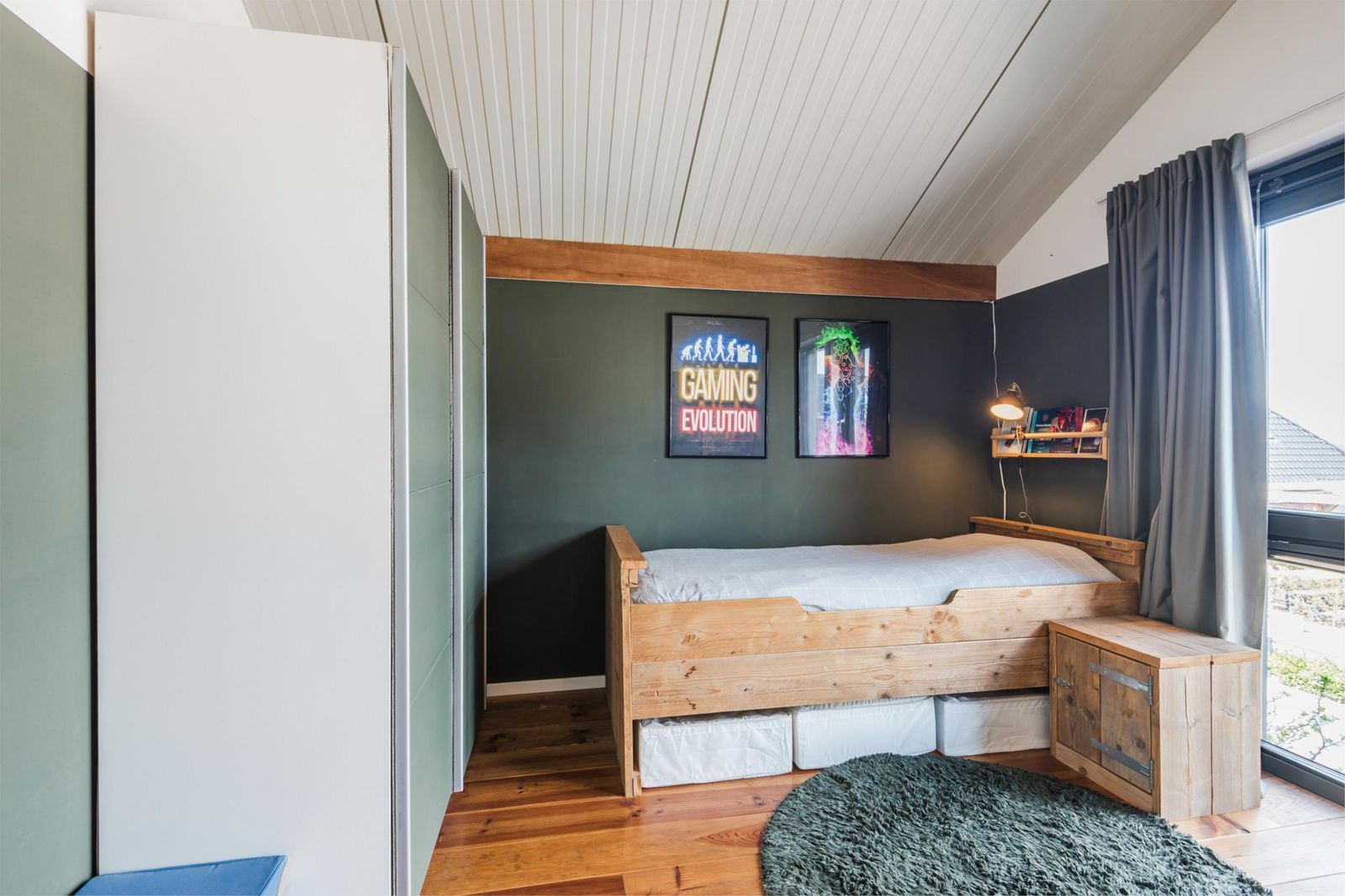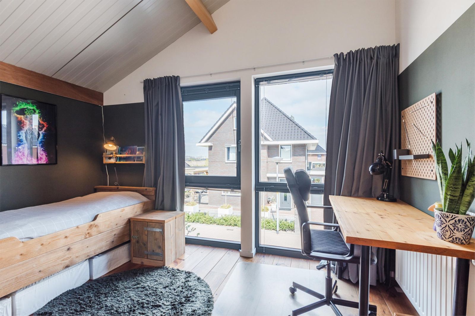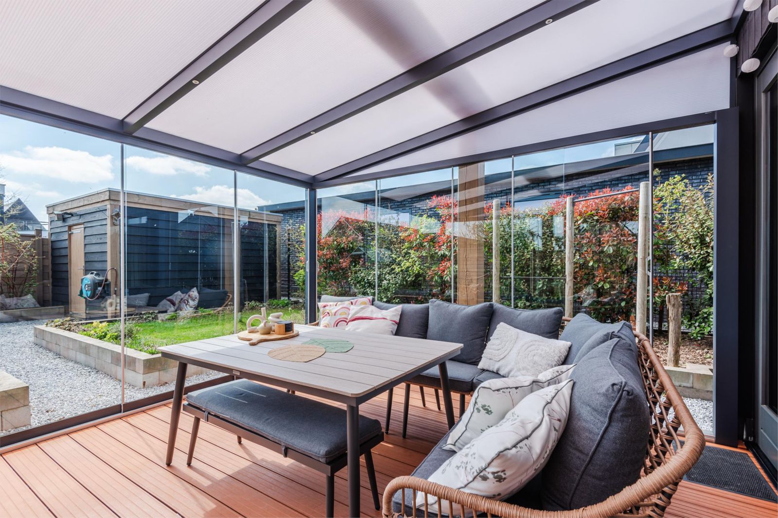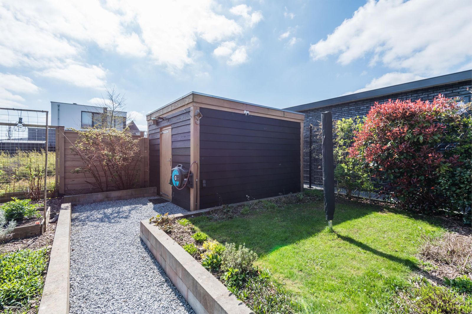 De tuin is een absolute eyecatcher. De op het zuiden gelegen achtertuin is aangelegd als een bloemrijke tuin met veel groen, een trampoline, een kas en een fijne overkapping aan de zijkant. Aan de achterzijde zorgt een doorlopend dak voor een natuurlijke overgang tussen woning en tuin.