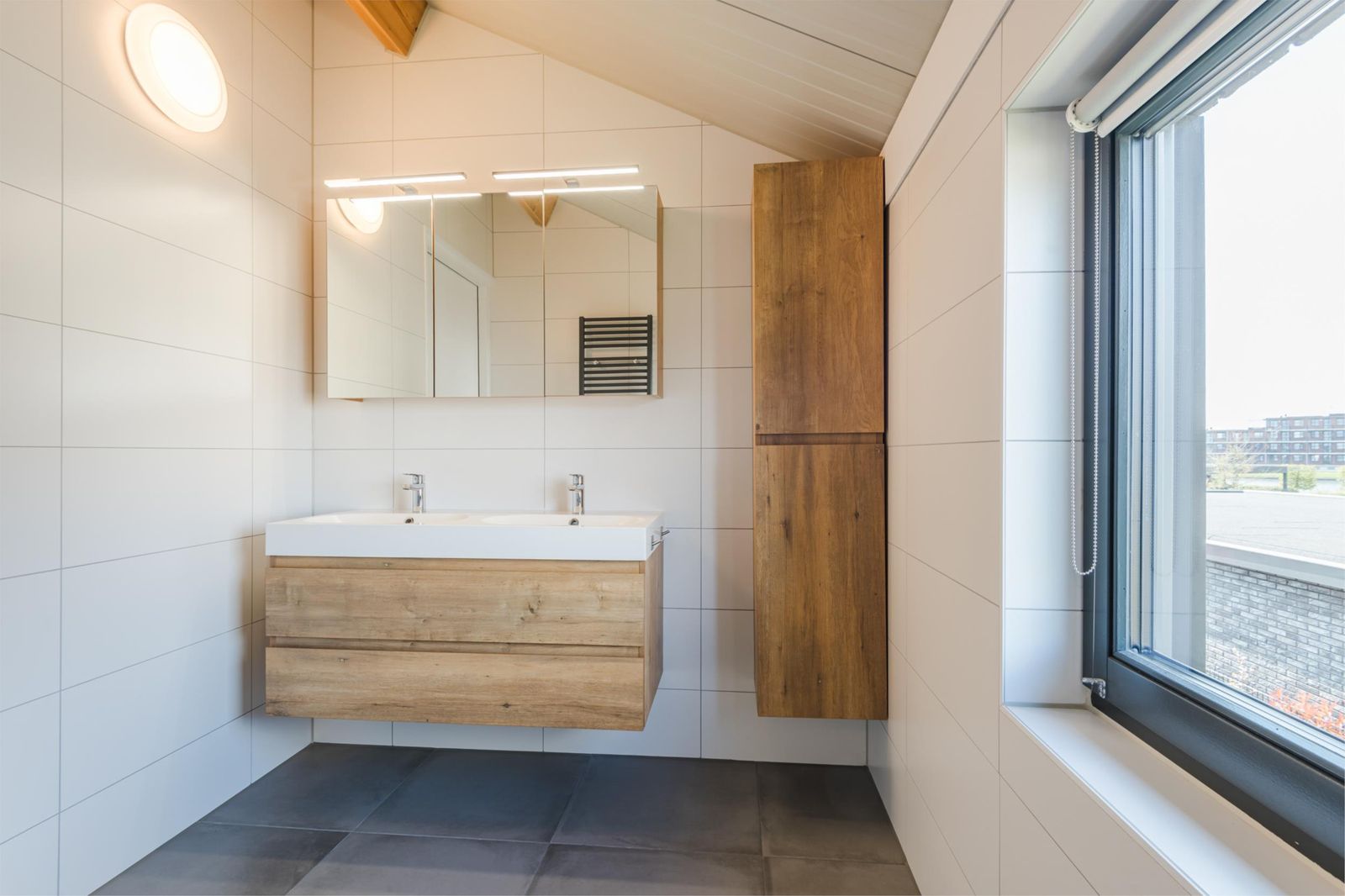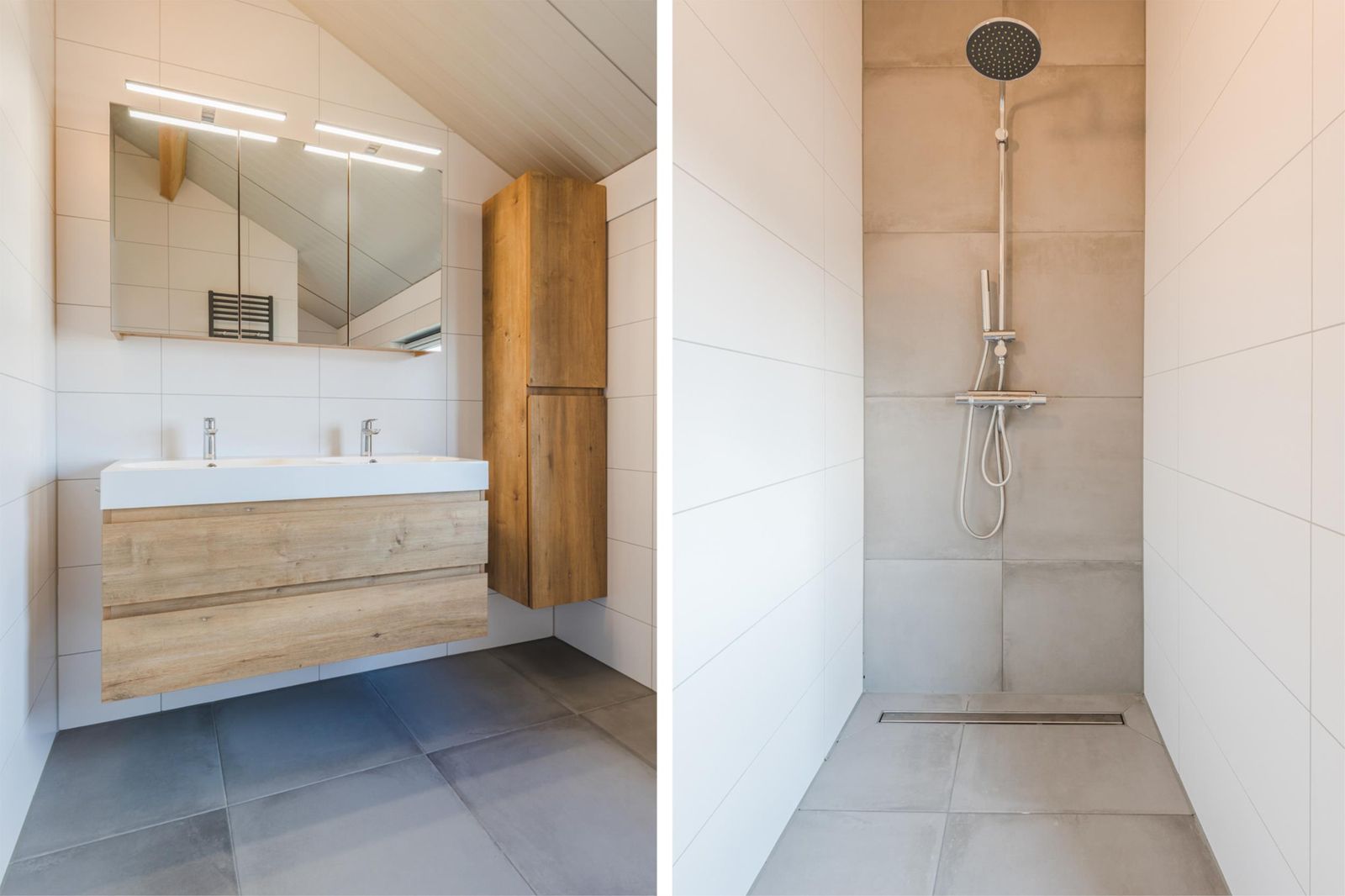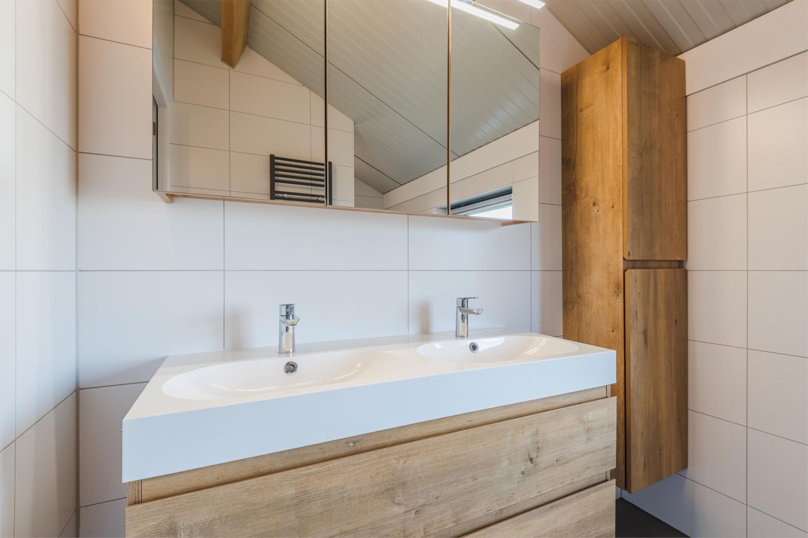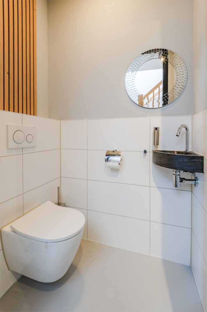 Aangrenzend vind je een handige bijkeuken, compleet met keukenblok, keukenkasten, wasbak en aansluitingen voor wasmachine en droger. Ook is er een separaat toilet op de begane grond aanwezig. Deze zijn ook voorzien van vloerverwarming.