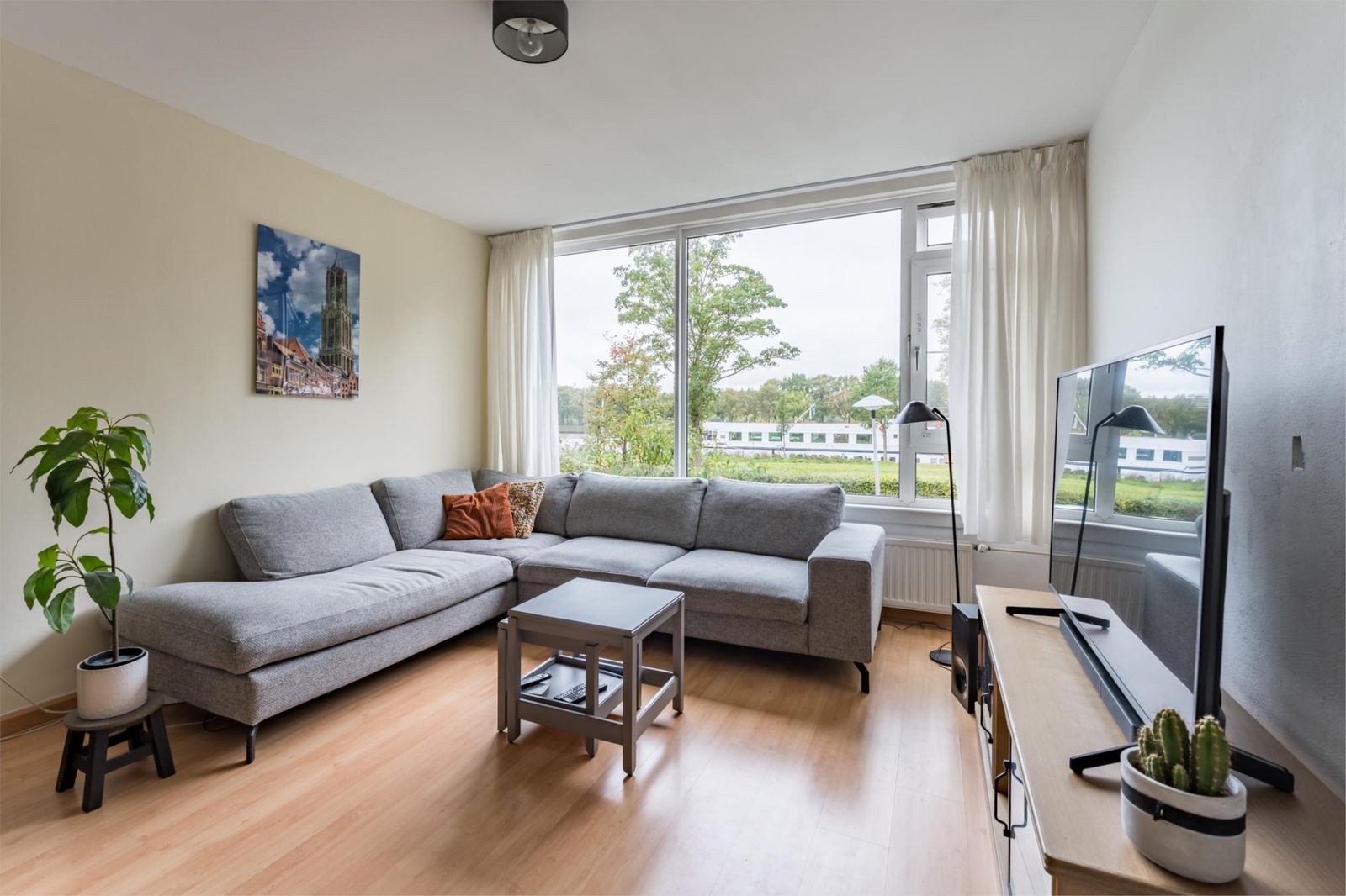 Elke dag wakker worden met een schitterend uitzicht over het kabbelende water, waar plezierboten en indrukwekkende binnenvaartschepen rustig voorbijvaren. Dit ruime en lichte 3-kamerappartement op de eerste verdieping met fietsberging biedt precies dat een unieke combinatie van rust, gezelligheid en stads gemak.