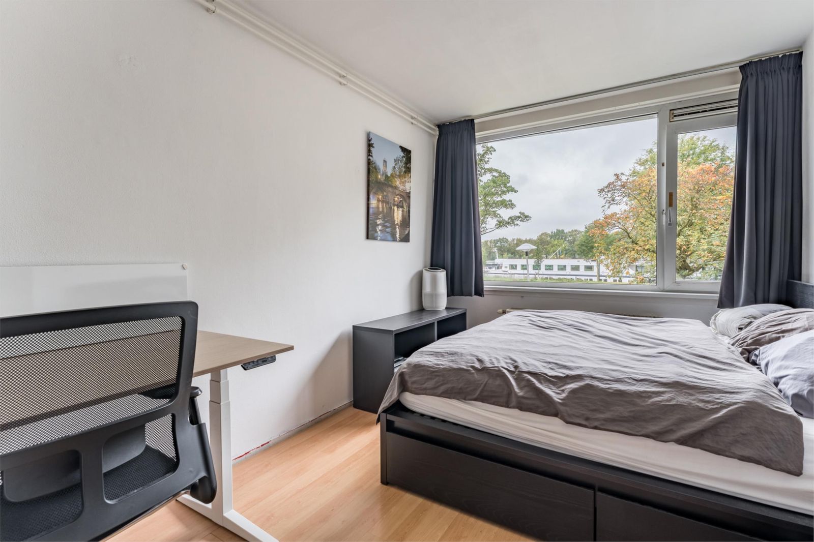 Vanaf de woonkamer en slaap- of werkkamer voorzijde geniet je van een panoramisch uitzicht over het Amsterdam-Rijnkanaal. Aan de achterzijde, direct grenzend aan de keuken, vind je een balkon, voor een kop koffie in de ochtend of een borrel in de avondzon. Hier woon je rustig, maar toch dichtbij alles wat de stad te bieden heeft. Met de fiets ben je in 10 minuten in het centrum, en om de hoek vind je een bus- en tramhalte. Bovendien kun je hier nu nog gratis parkeren, echt zeldzaam in de stad!
