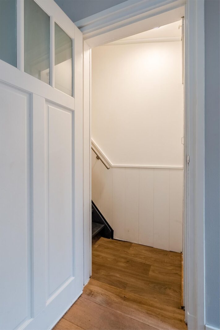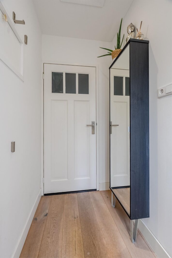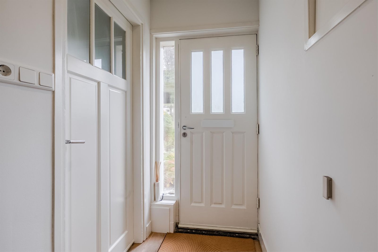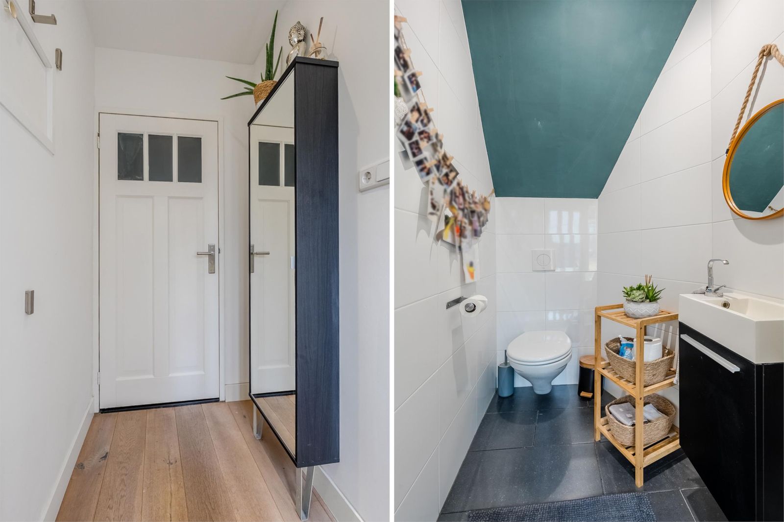 Via de voortuin kom je binnen in de hal met toilet en trapopgang.