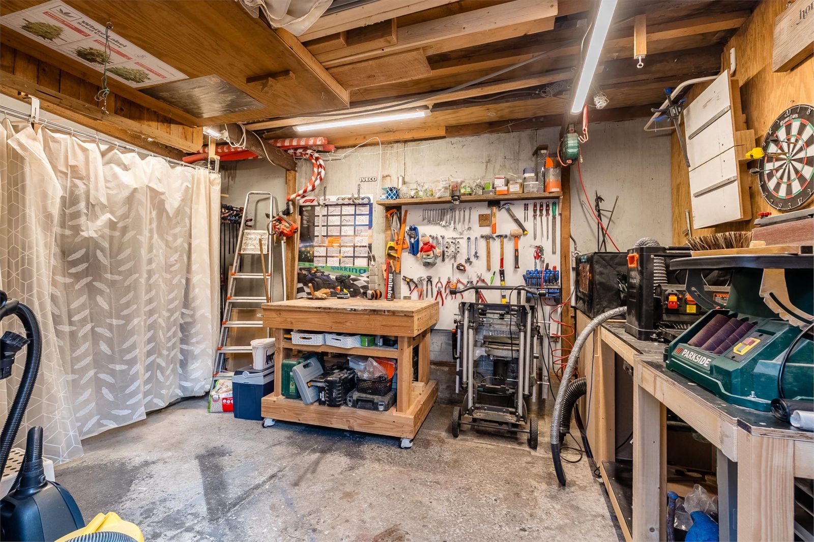 Achterin de tuin bevindt zich een ruime werkplaats/schuur (ca. 4,56 m x 3,20 m) en in de zijtuin een extra tuinhuisje.