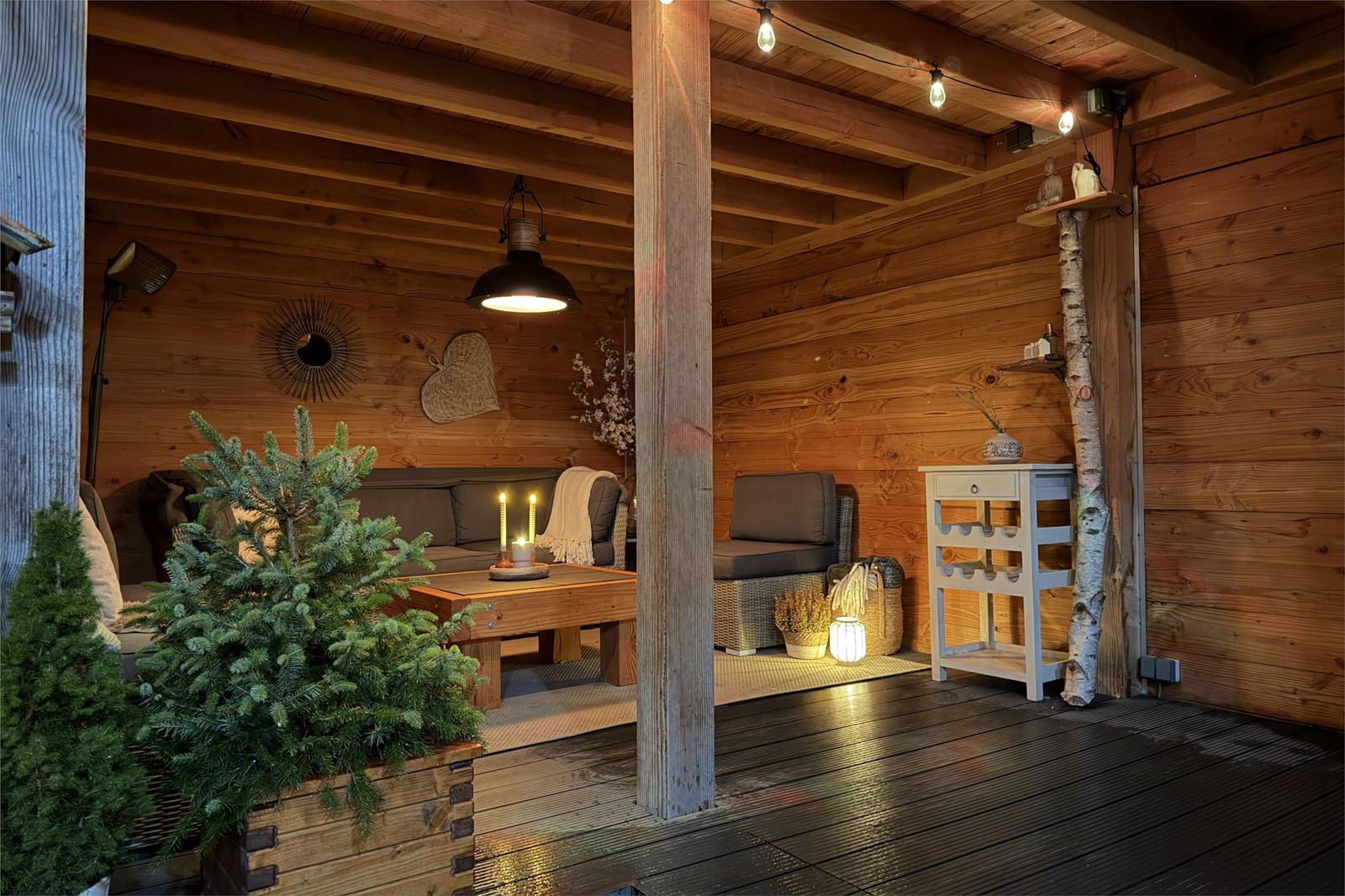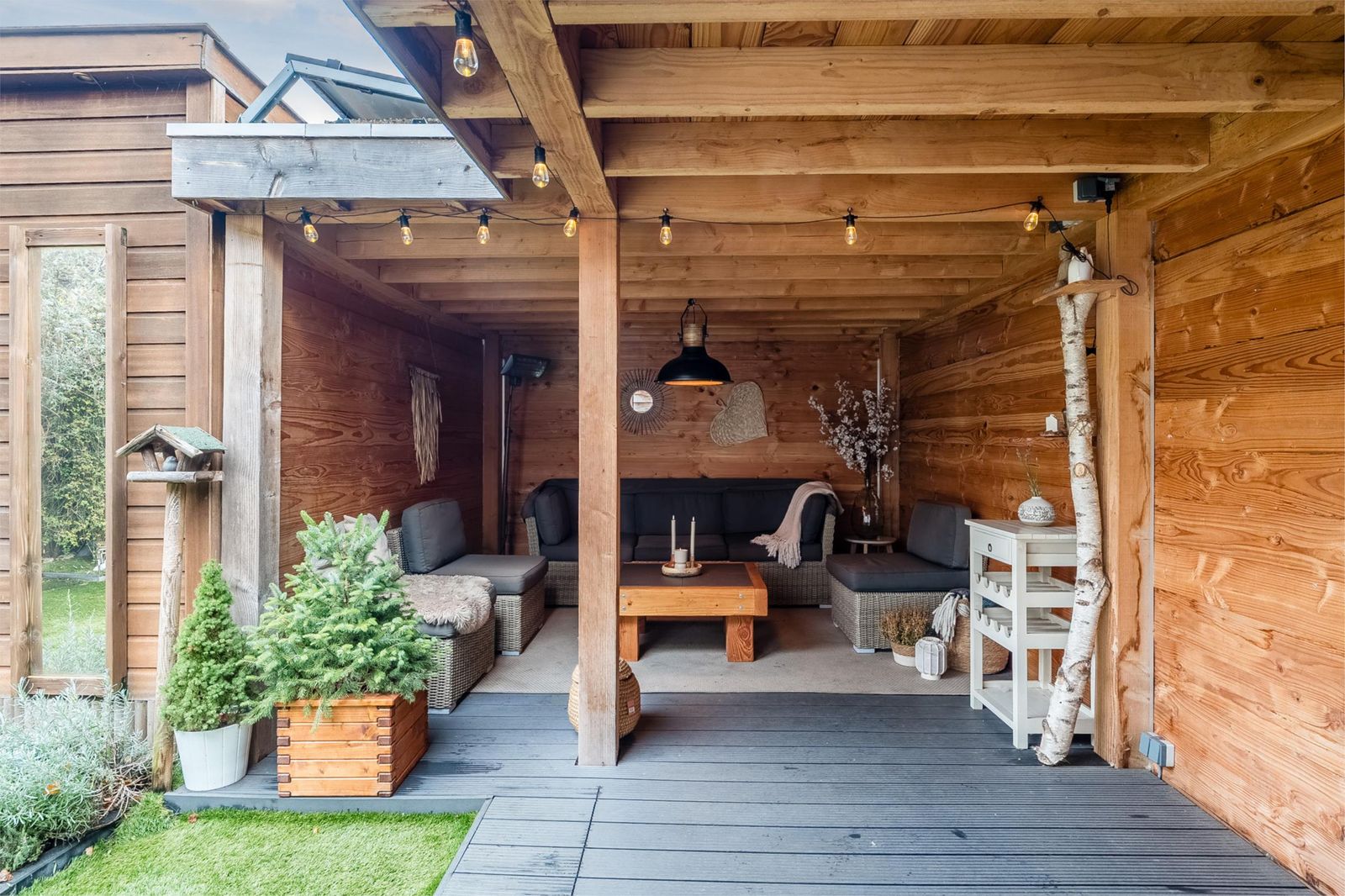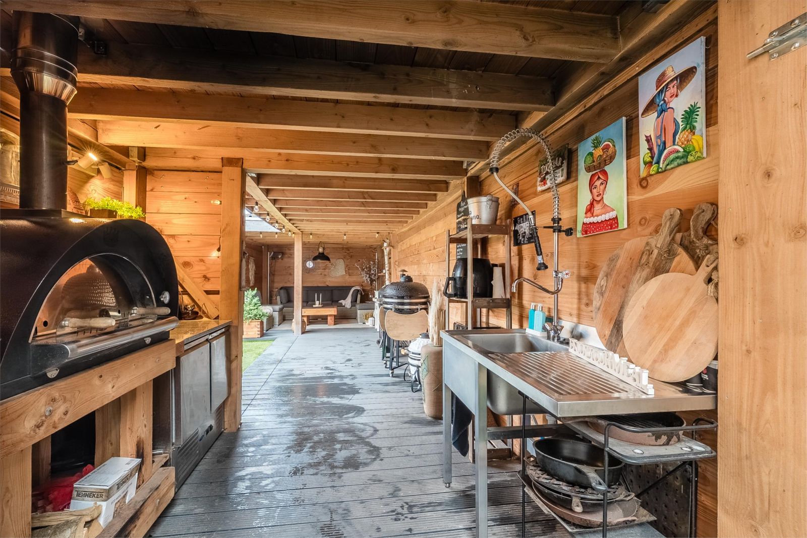 De eyecatcher is de royale veranda van 32 m², compleet met buitenkeuken en pizzaoven: een heerlijke plek voor lange zomeravonden met vrienden en familie.