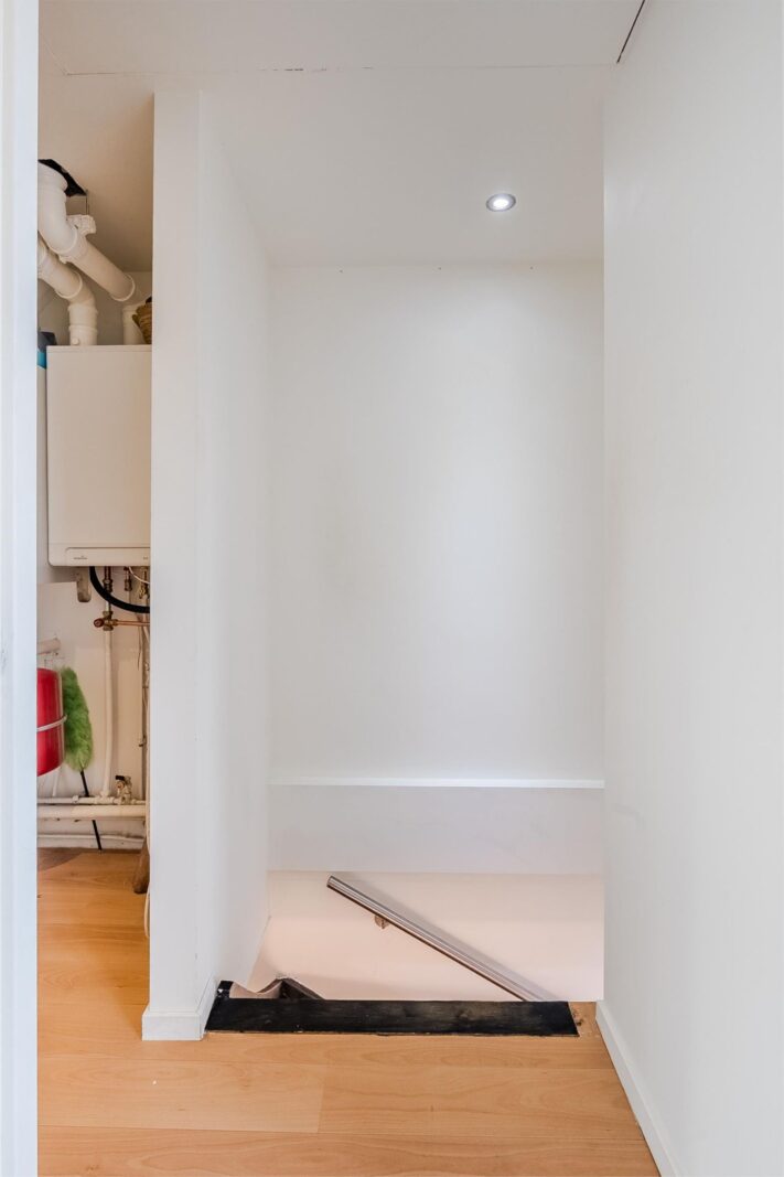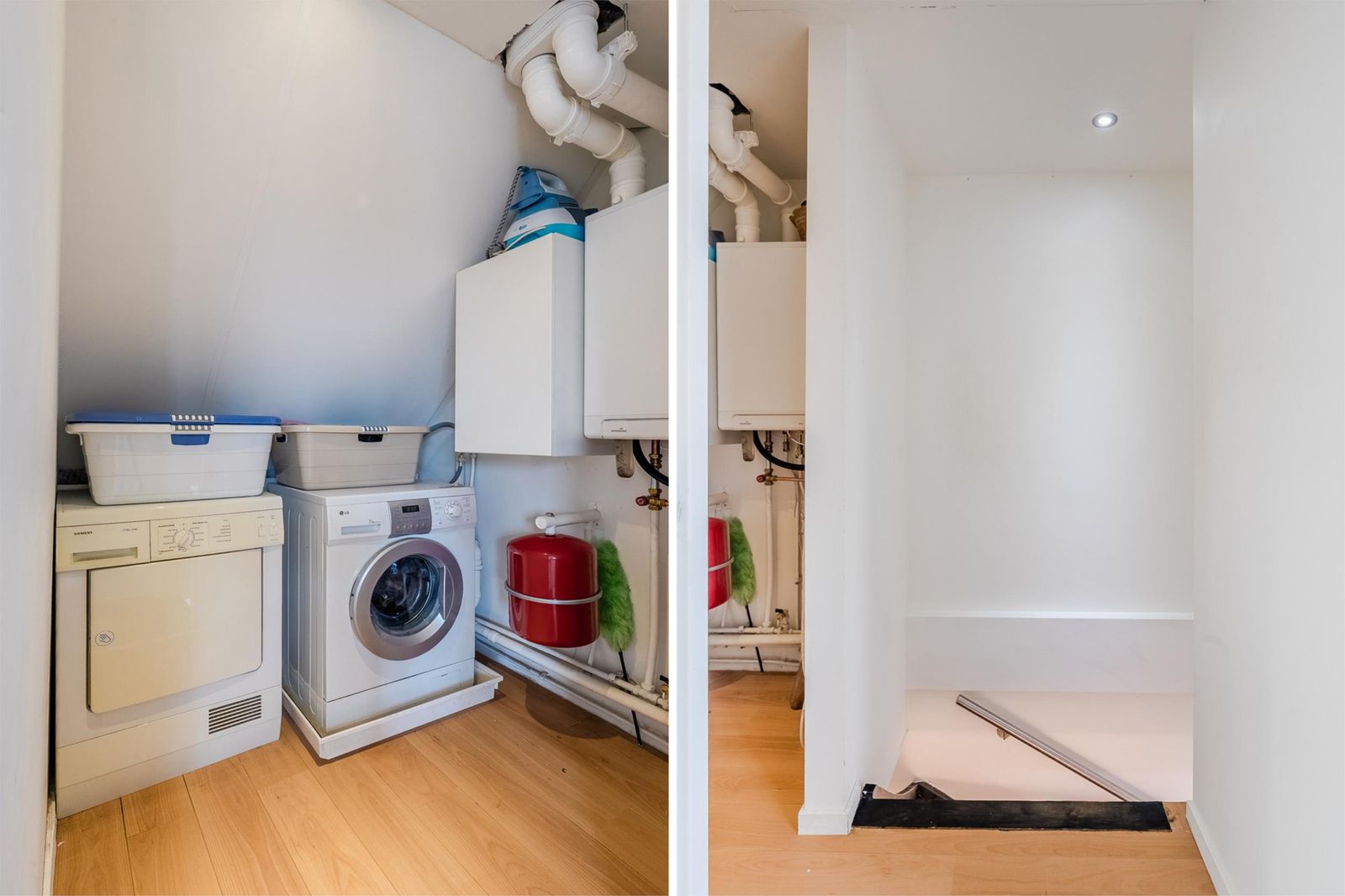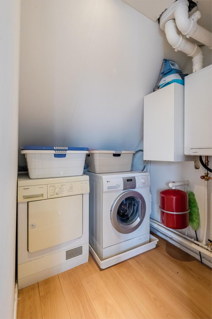 Ook bevinden zich hier de aansluitingen voor wasmachine en droger.