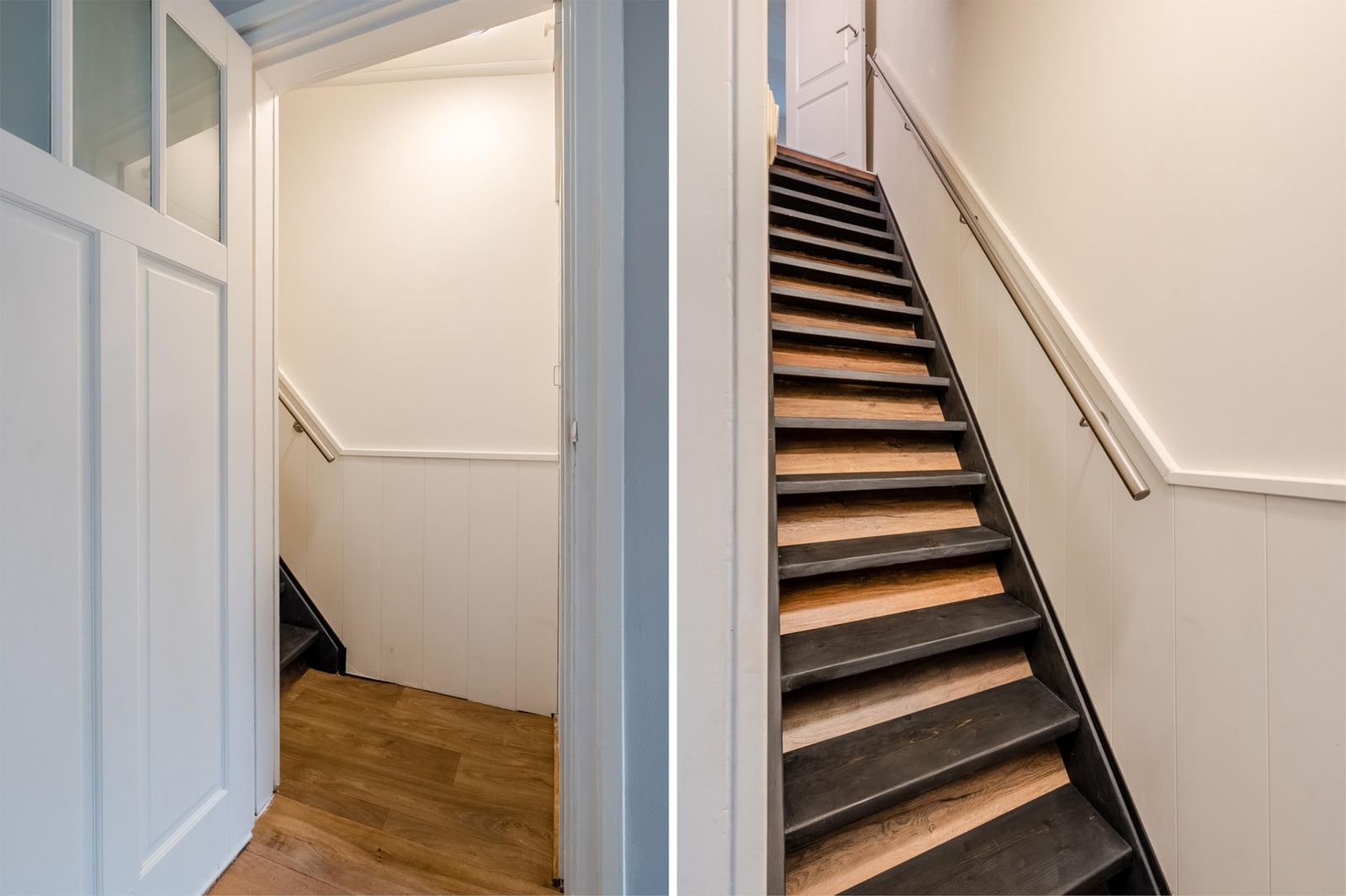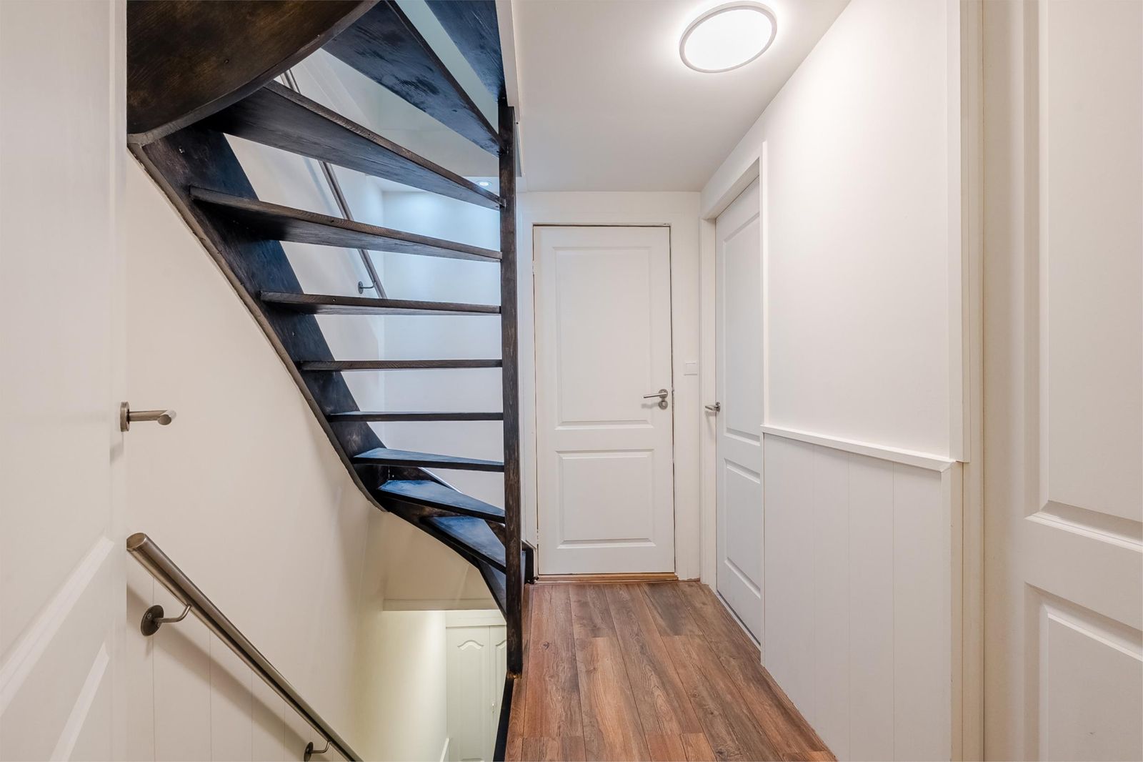 Via de trap bereik je de overloop met drie slaapkamers en de badkamer.