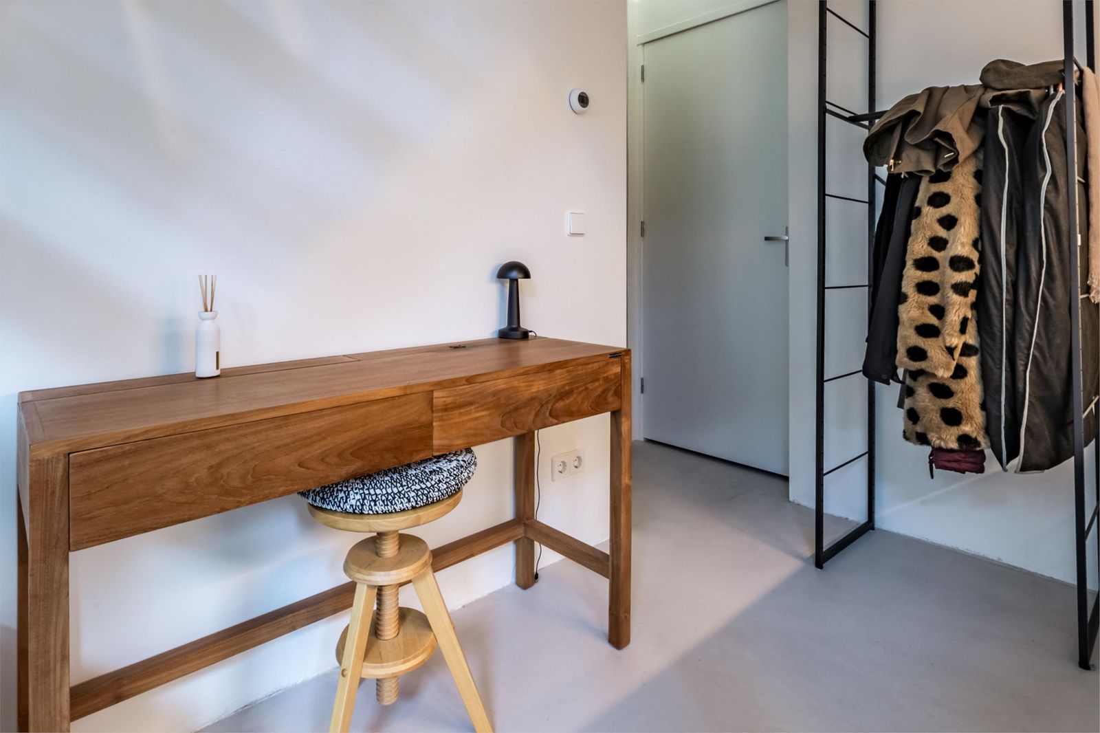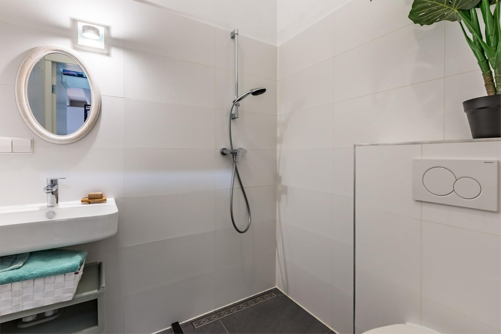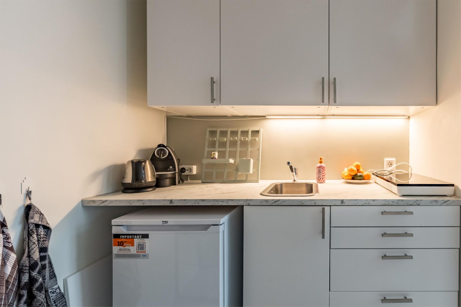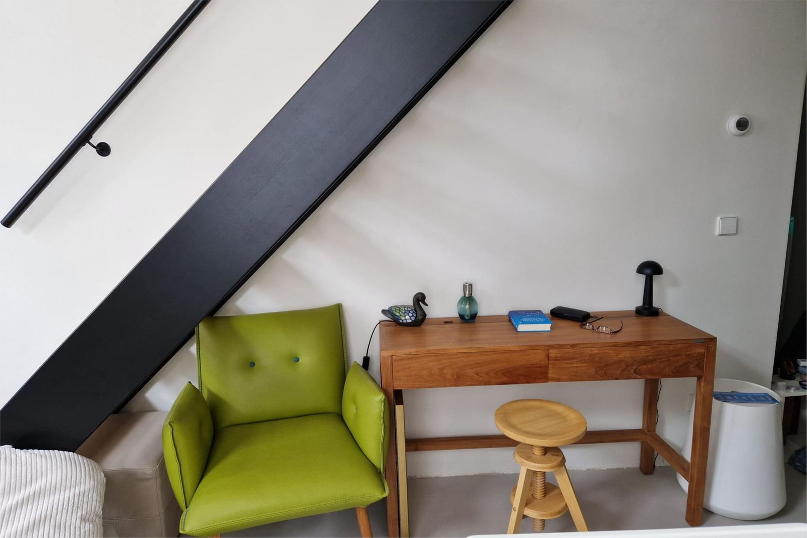 De indeling: Eigen ingang met entree op begaande grond. Woonkamer met 2 grote raampartijen die daglicht geven en een hoog plafond waardoor het extra ruim voelt. Open keuken in hoek, slaap mezzanine, badkamer voorzien van een inloopdouche, wastafel, toilet en veel bergruimte mogelijk dankzij het hoge plafond.