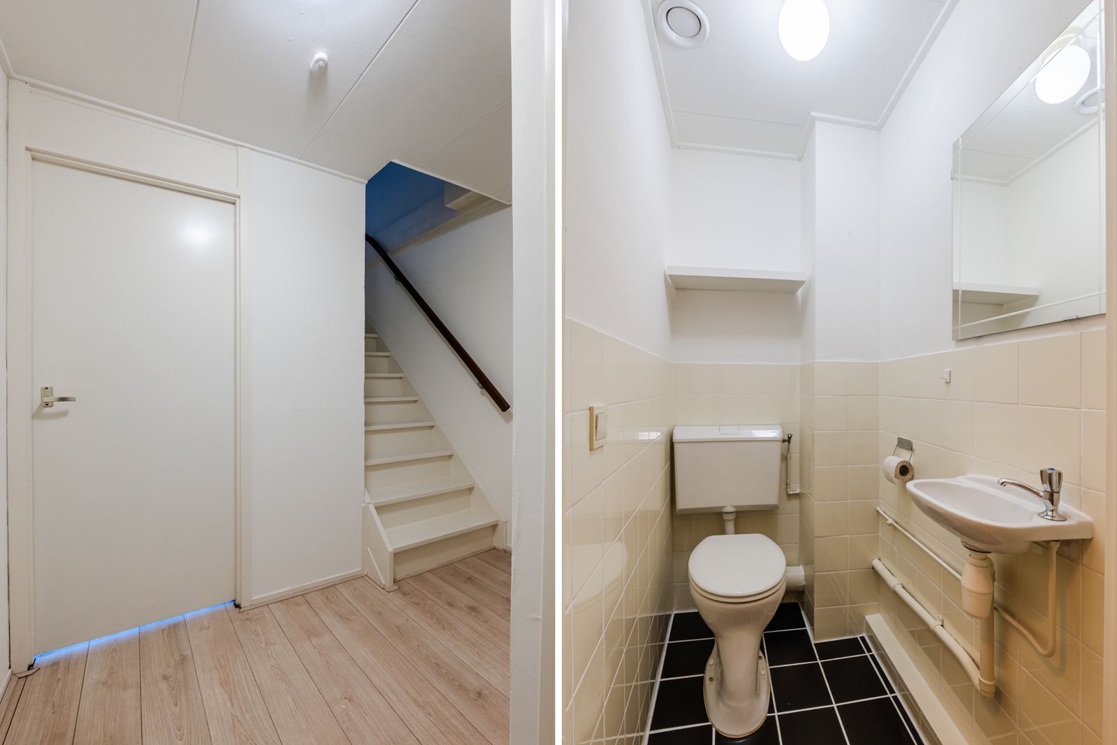 Eerste verdieping: hal met meterkast en trapopgang naar de tweede verdieping.