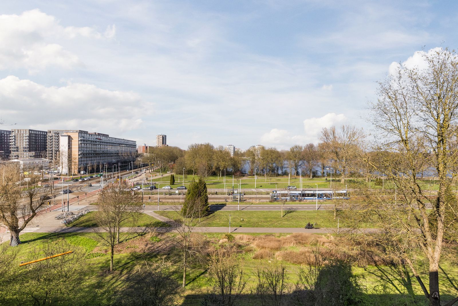 Uitstekend bereikbaar met tram, metro en bus richting centrum en Schiphol • Met de fiets bent u in ca. 15 minuten in het Vondelpark • Dichtbij de A4, A9 en A10 – snel de stad in én uit • Parkeren in de buurt met korte wachttijd voor een vergunning