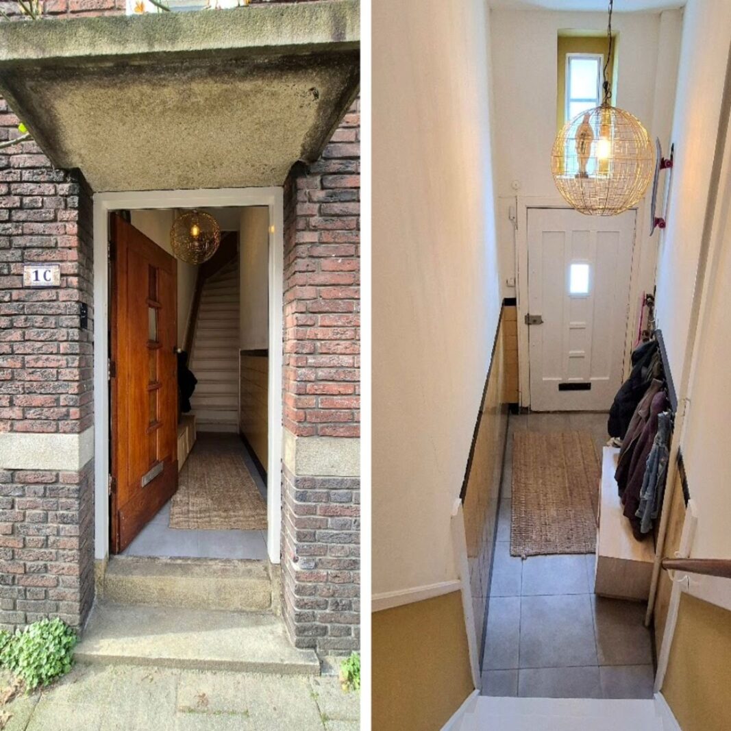 Eigen opgang met ruime hal naar de 1e verdieping.