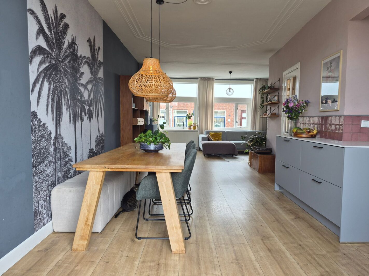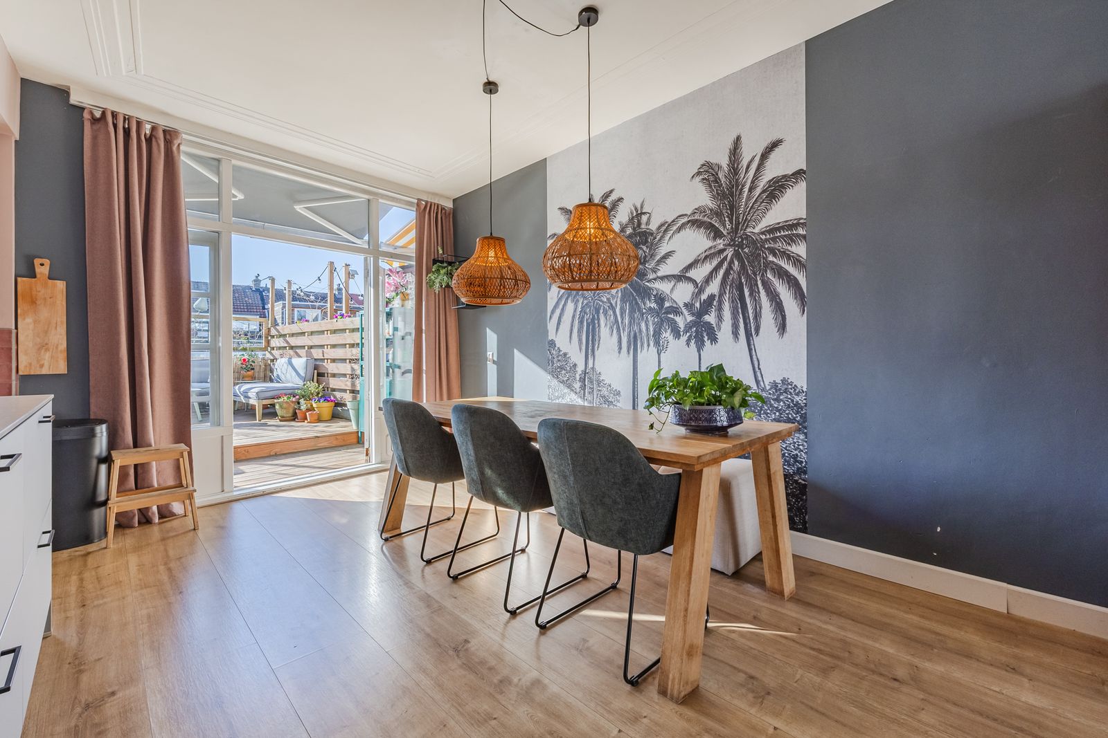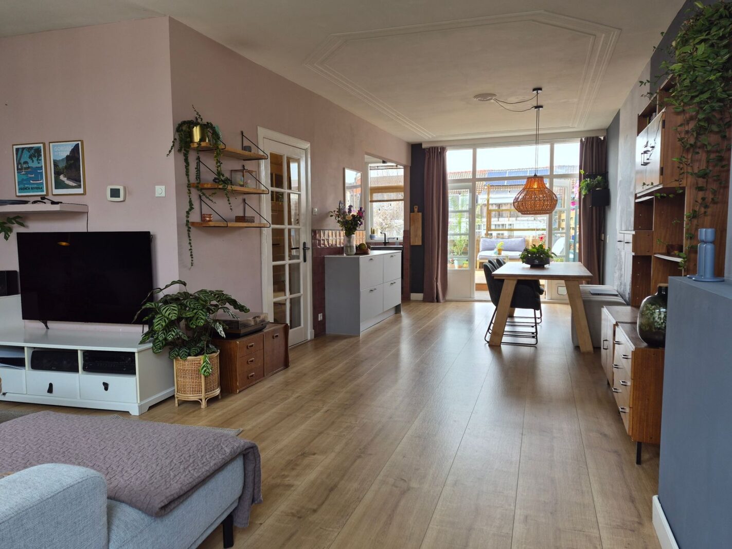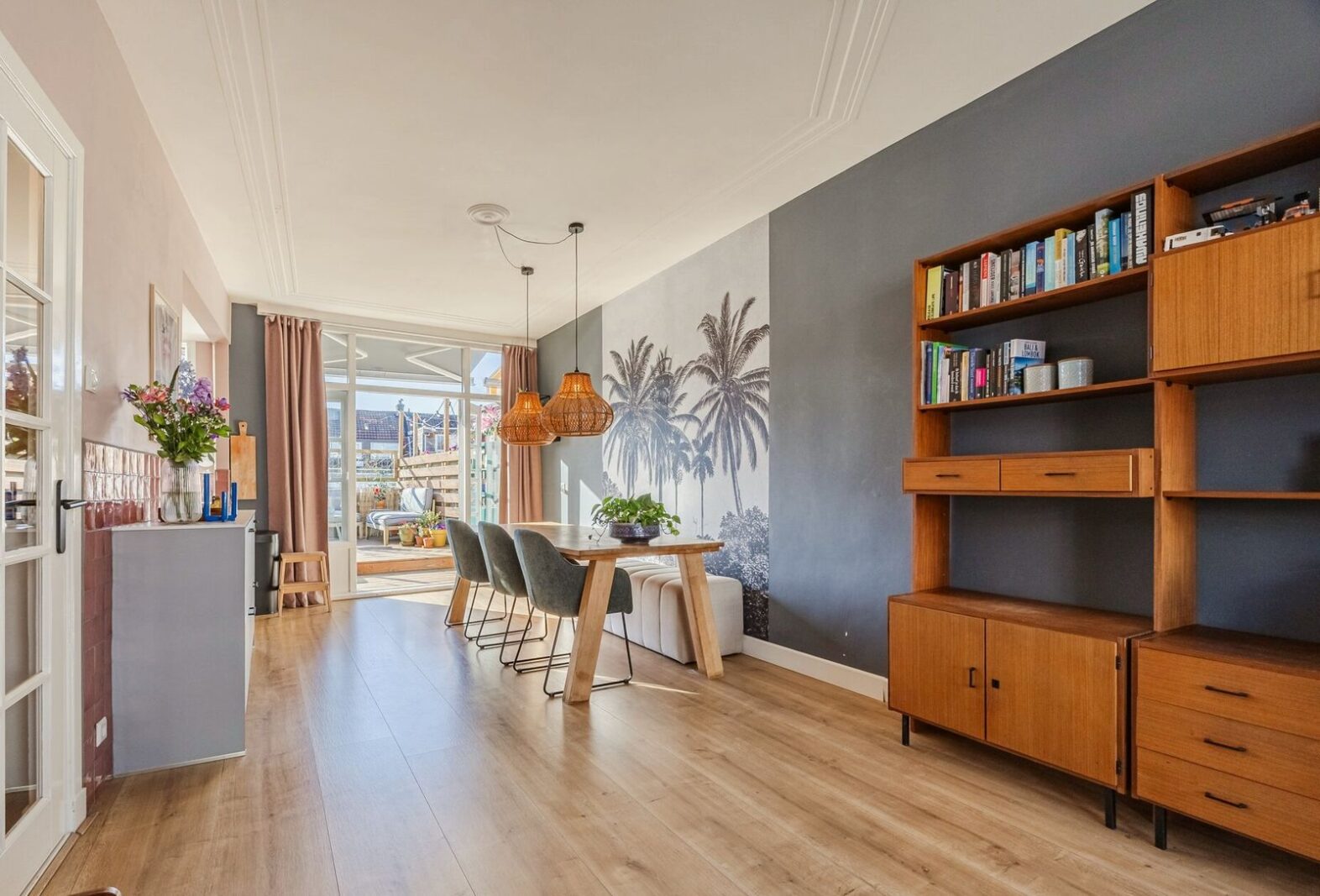 Buitenkans! Sfeervol en ruim jaren ‘30 boven woonhuis (121m²) met zonnig dakterras aan de woonetage / eetkamer / keuken.
