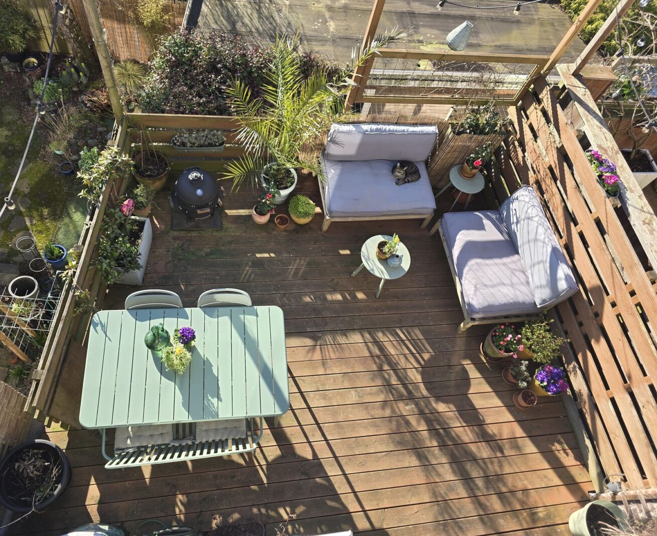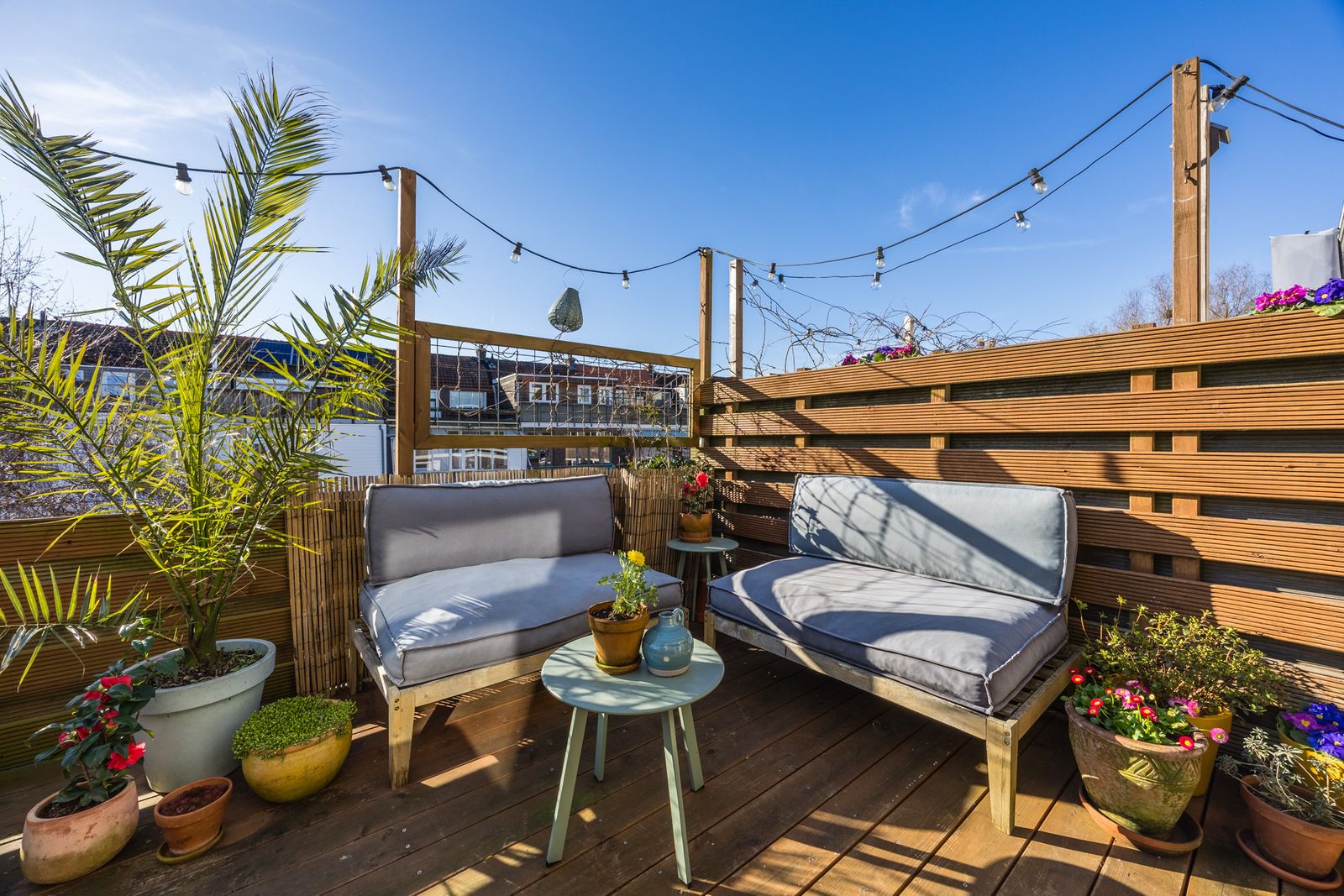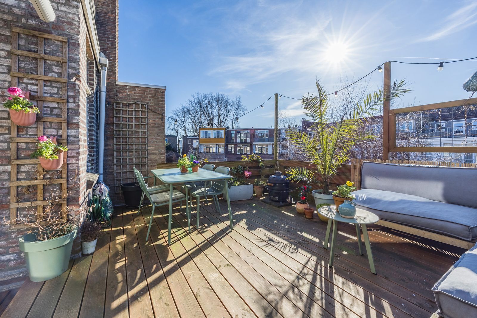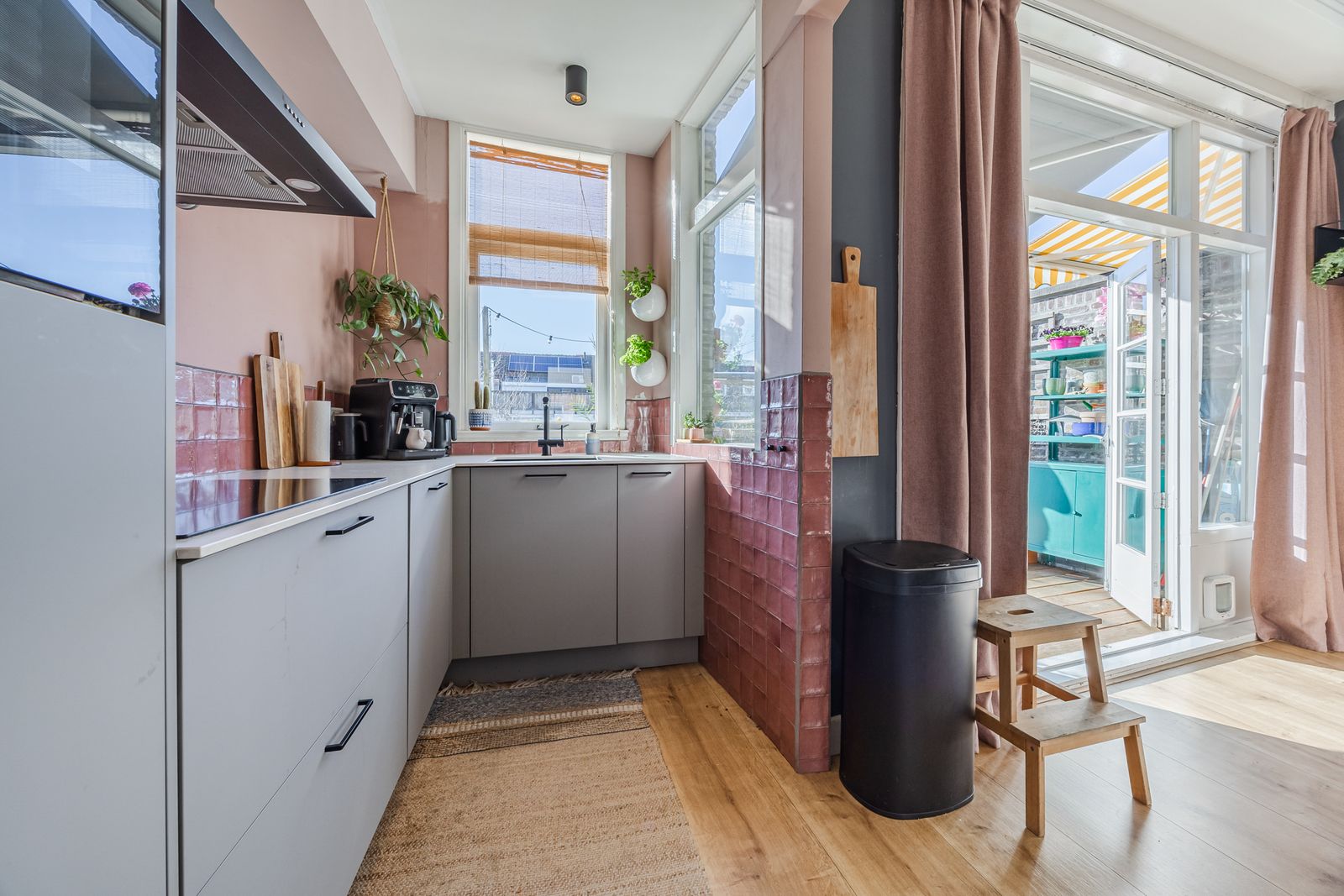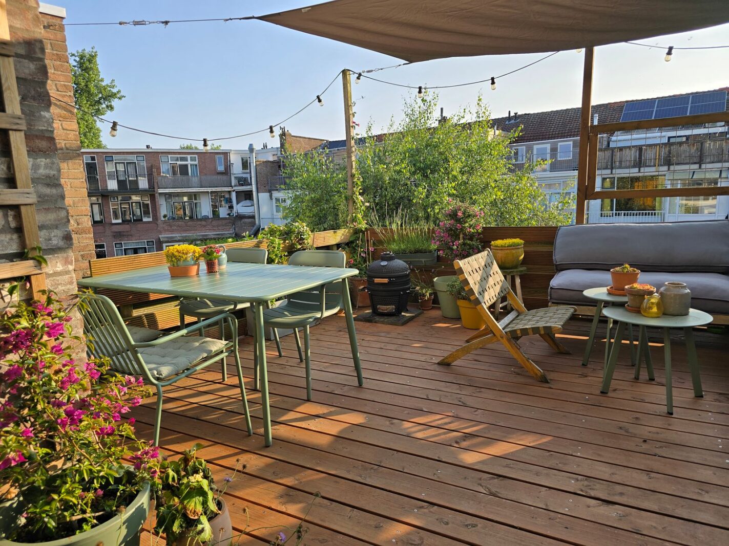 Buitenkans! Sfeervol en ruim jaren ‘30 boven woonhuis (121m²) met zonnig dakterras aan de woonetage / eetkamer / keuken.