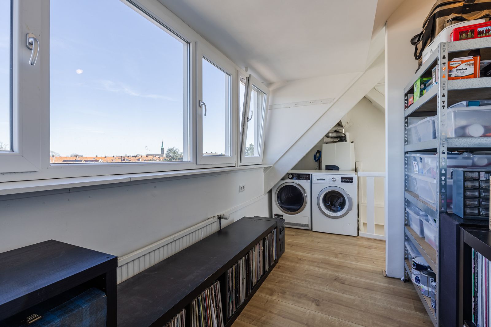 Dankzij twee geplaatste dakkapellen (2018) is hier extra woonruimte gecreëerd. Momenteel in gebruik als slaapkamer en werk-/hobbyruimte. Op de overloop bevindt zich de opstelling voor wasmachine, droger en de CV-ketel.