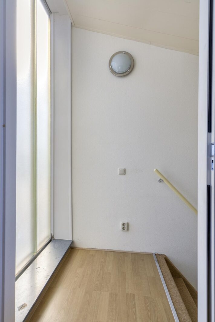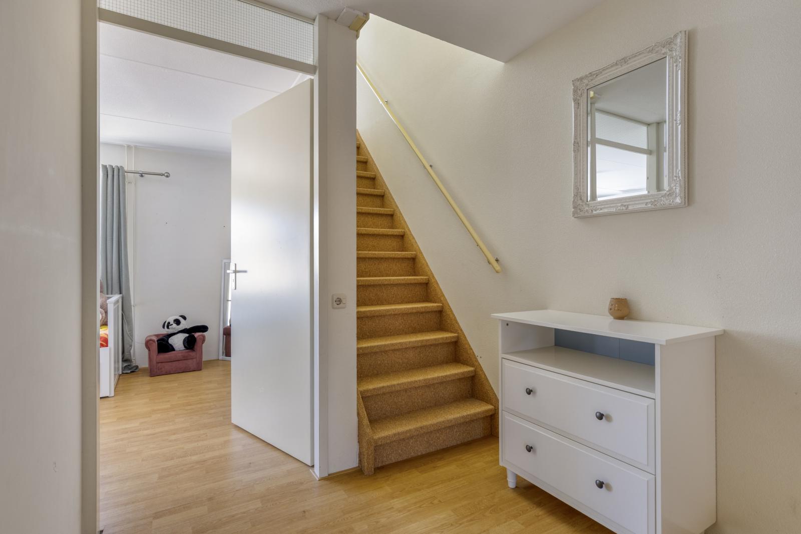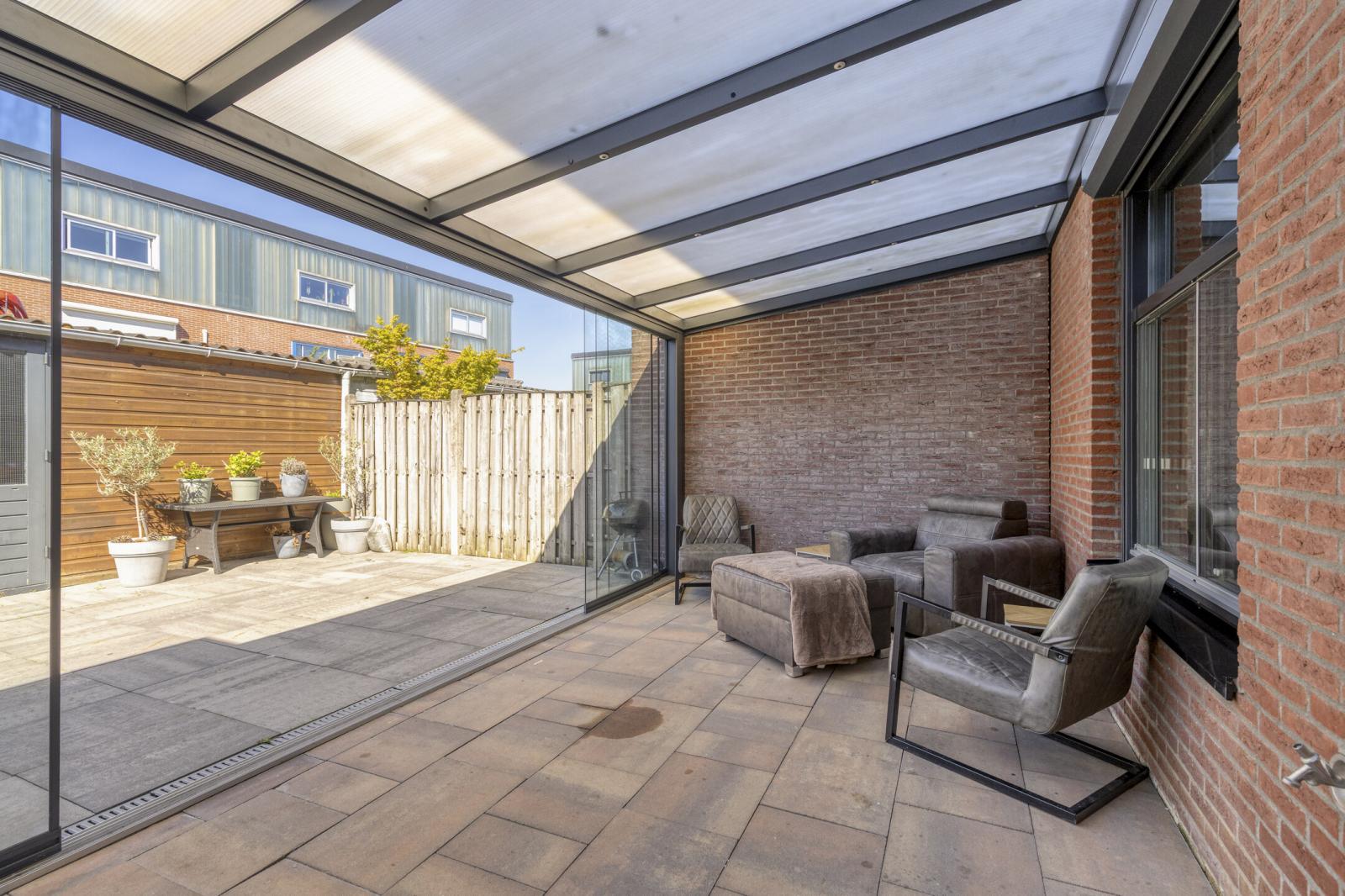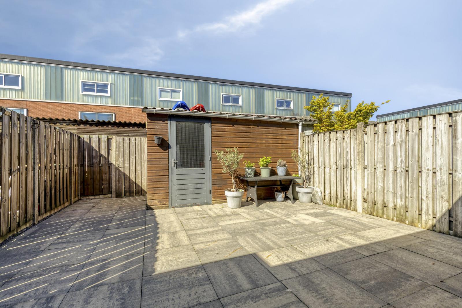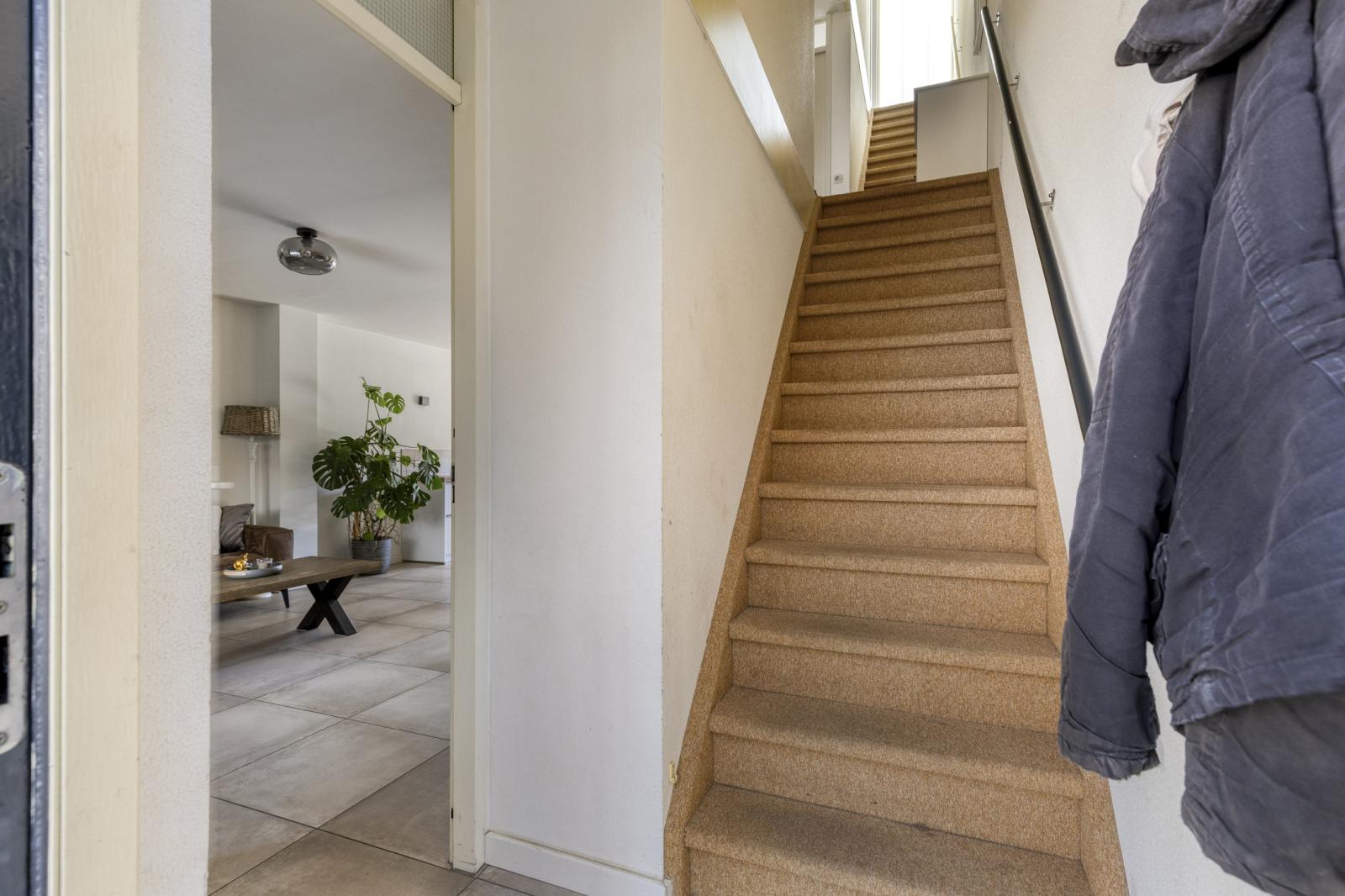 Aan de achterzijde van de woning is ruimschoots ruimte voor een knusse zithoek. De handige bergruimte onder de trap is een welkome