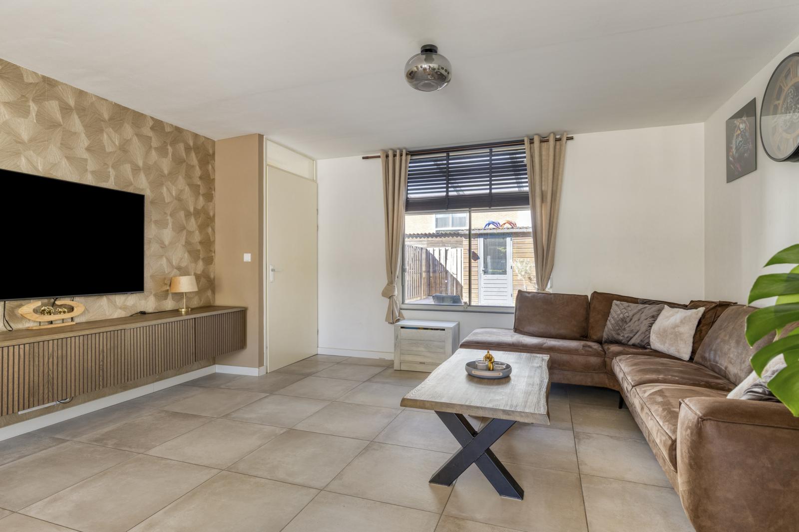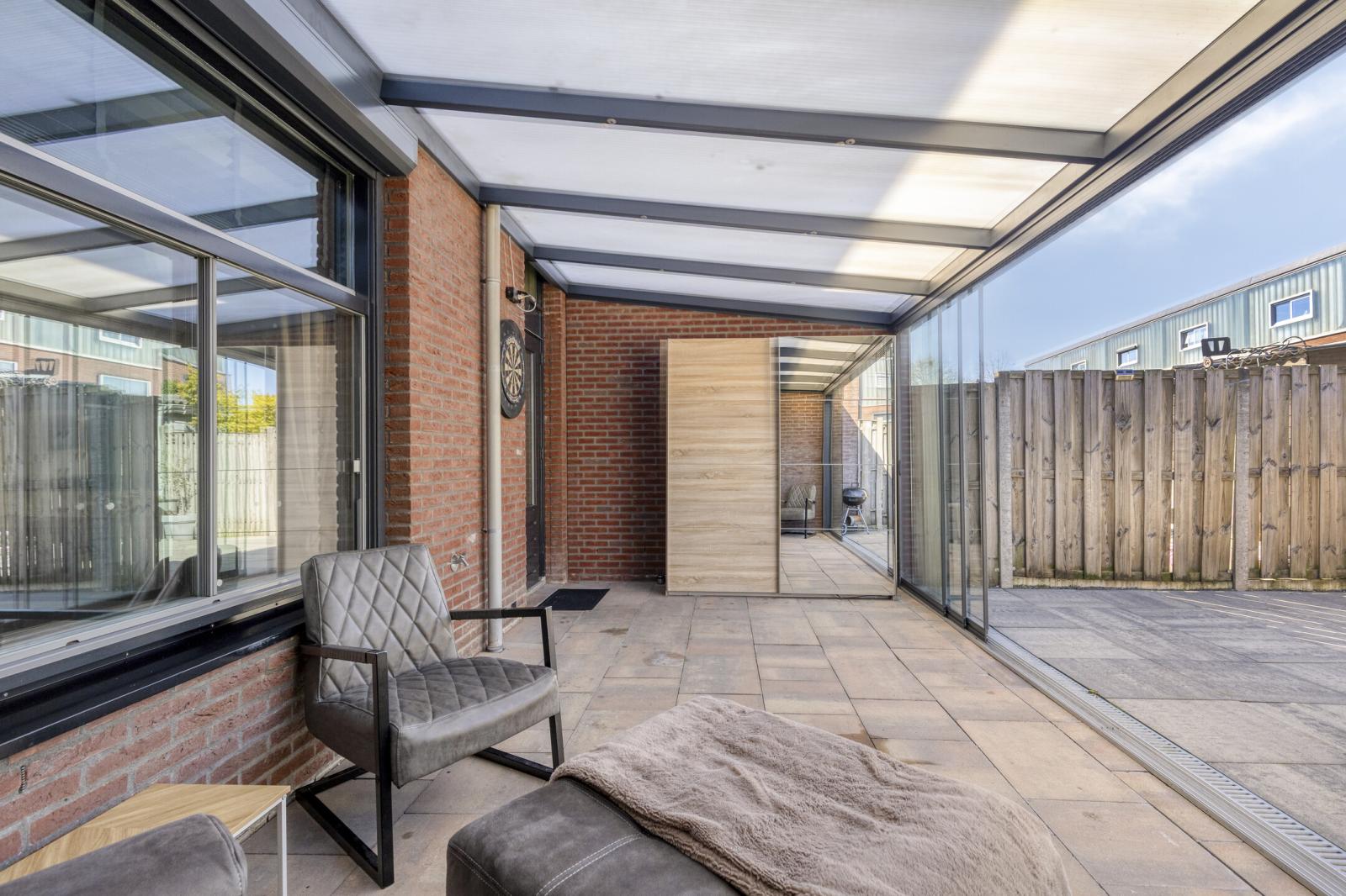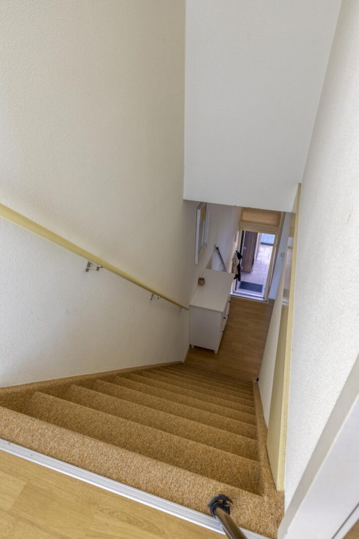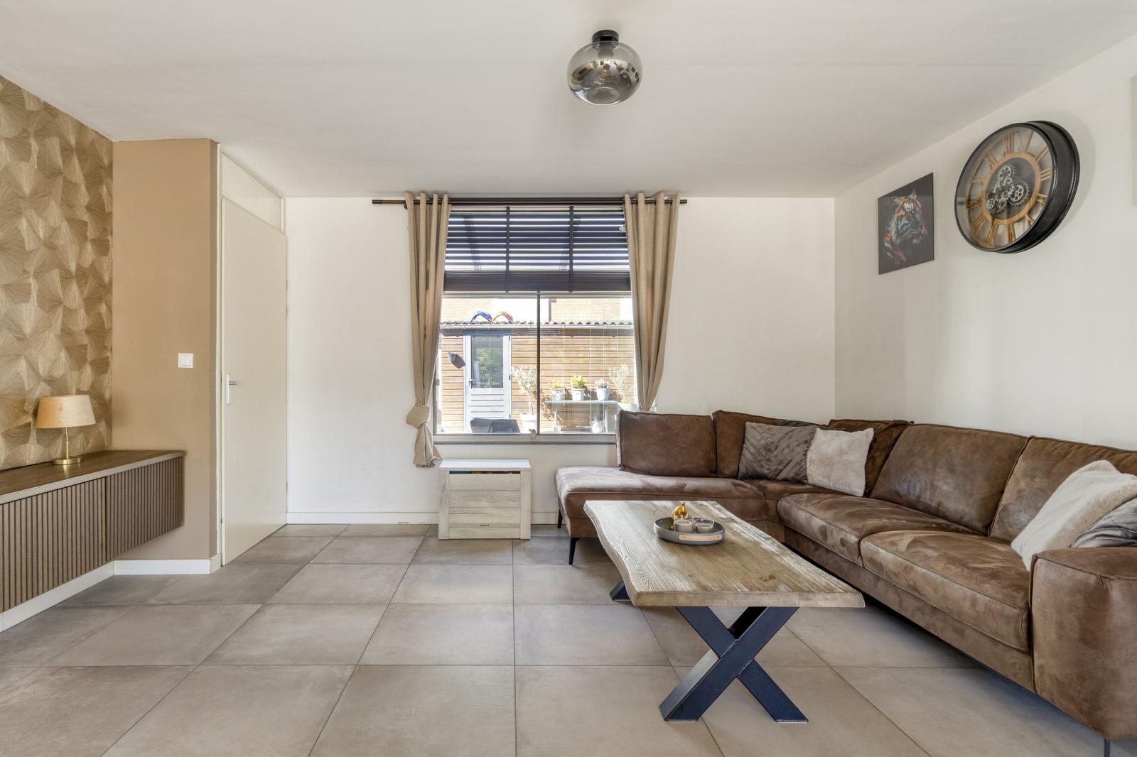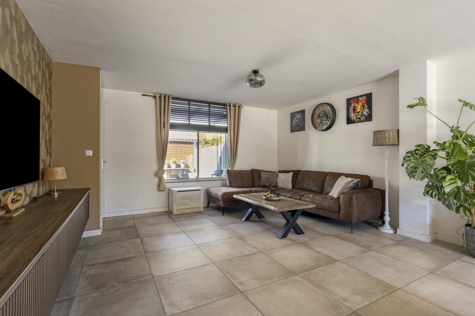 Aan de achterzijde van de woning is ruimschoots ruimte voor een knusse zithoek. De handige bergruimte onder de trap is een welkome