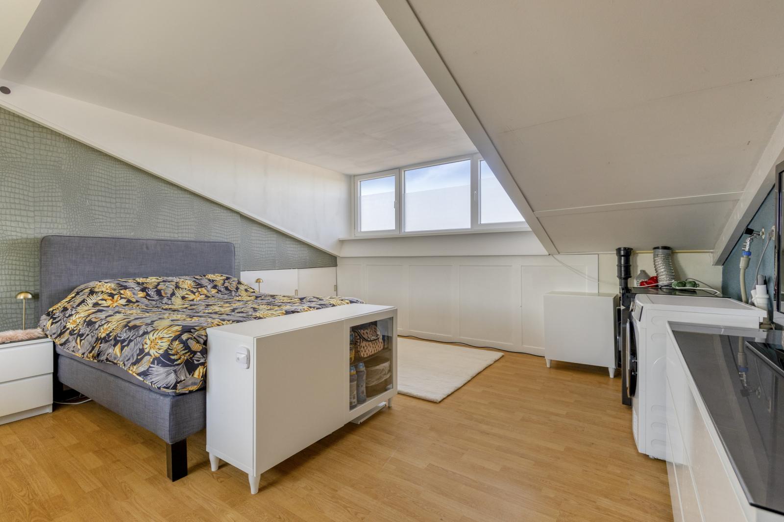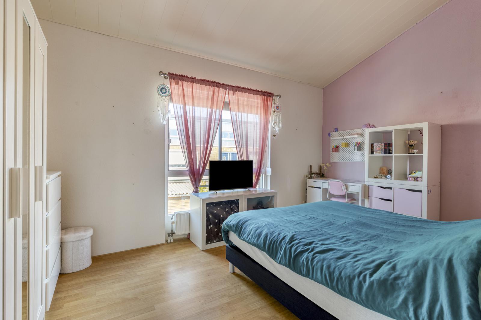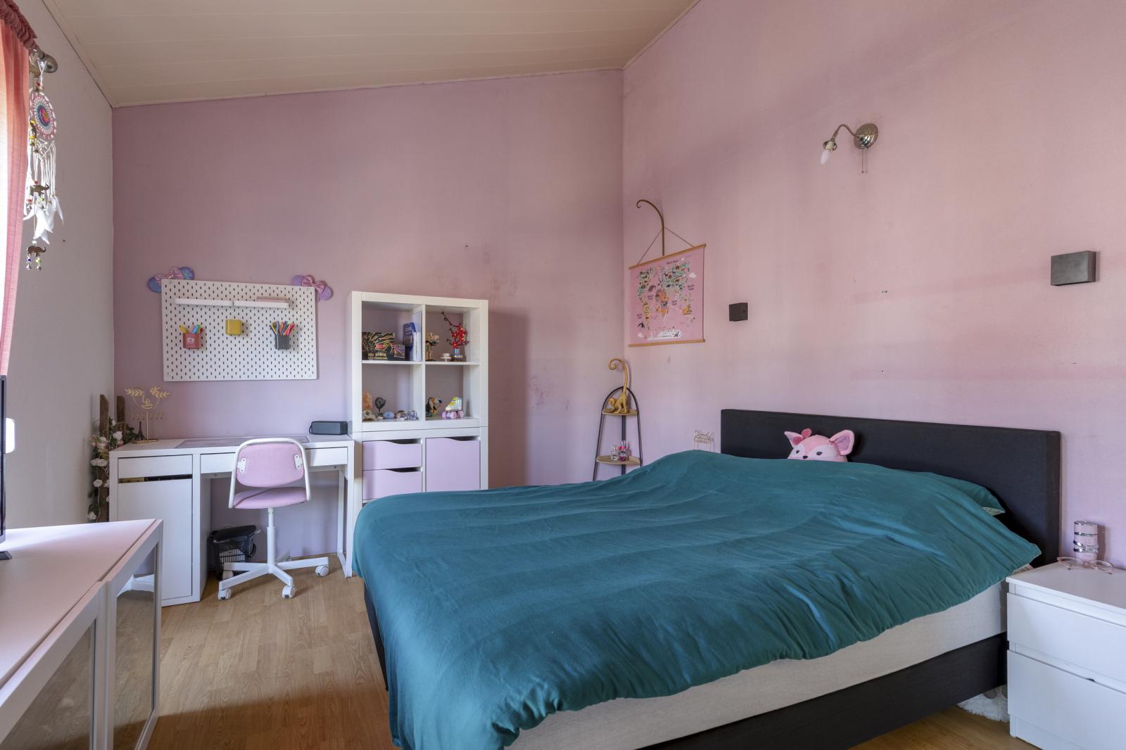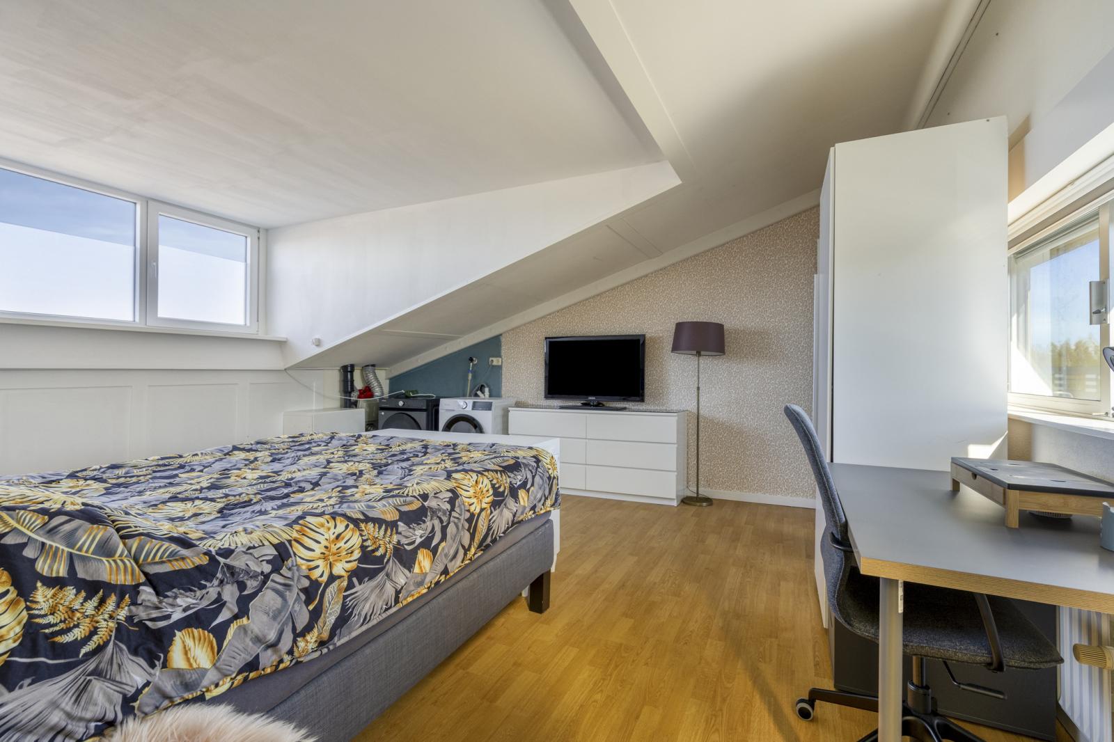 Via een vaste trap bereik je de tweede verdieping, waar een ruime slaapkamer wacht met lichte dakkapel. Of het nu een tienerbolwerk wordt, een thuiskantoor of een logeerruimte, de ruimte laat het allemaal toe. Aansluitingen voor wasapparatuur en mechanische ventilatie zijn aanwezig. Onder de kap is bovendien extra bergruimte gecreëerd.