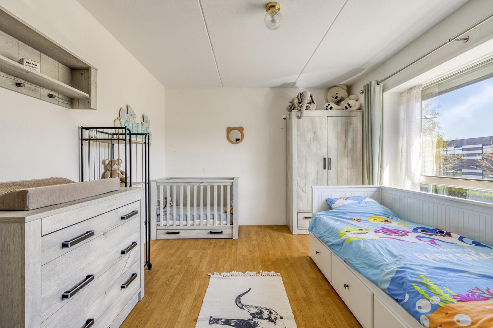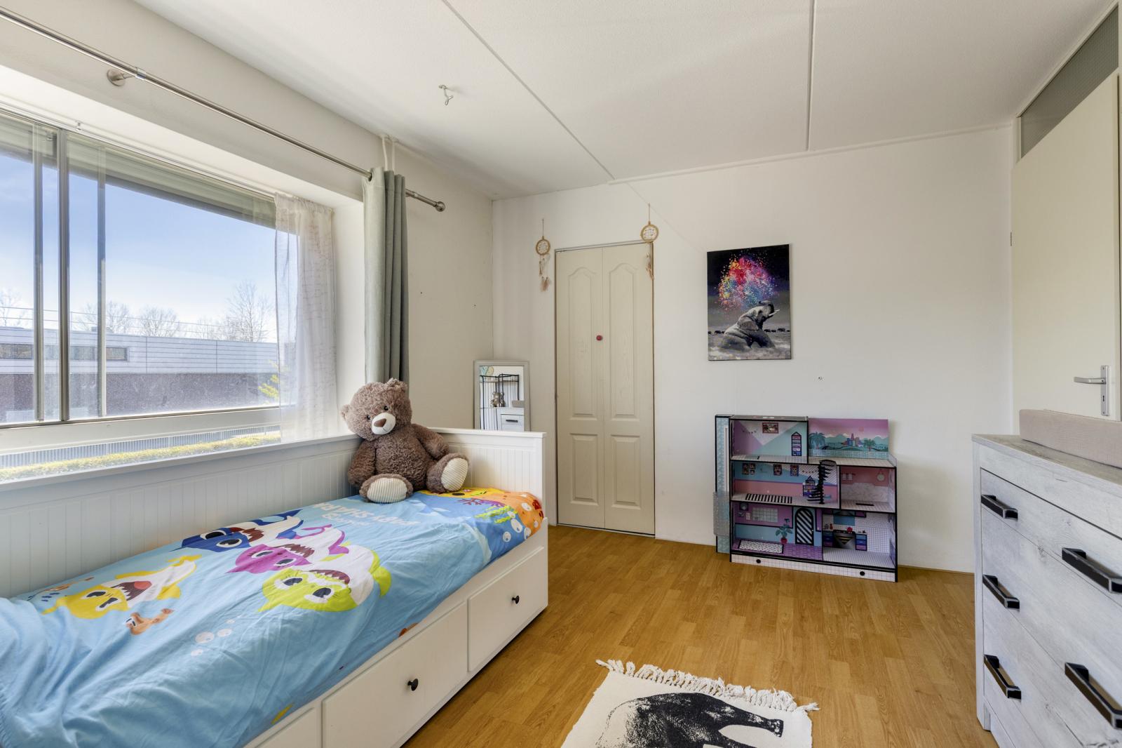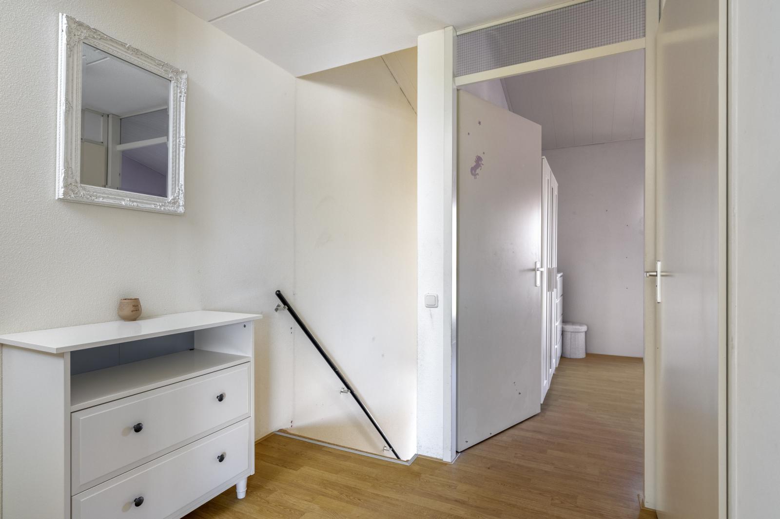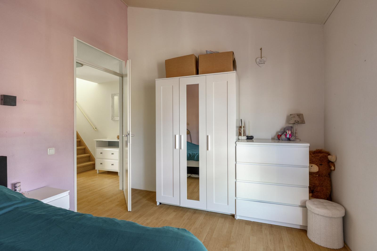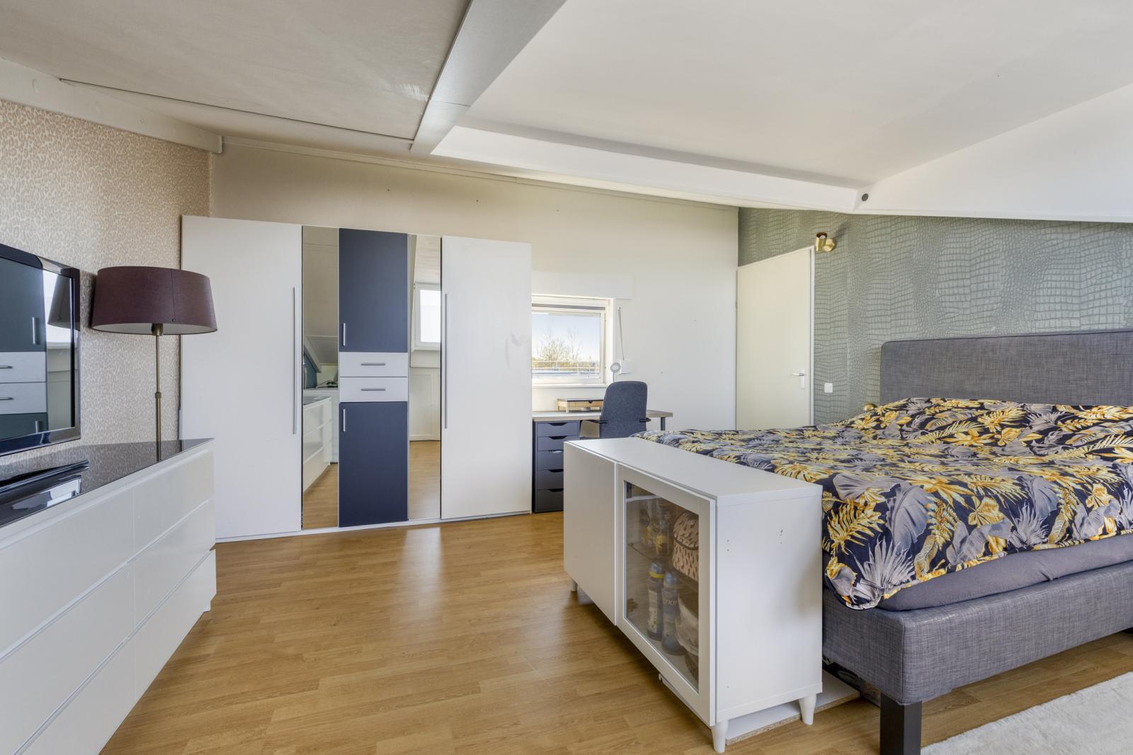 Via een vaste trap bereik je de tweede verdieping, waar een ruime slaapkamer wacht met lichte dakkapel. Of het nu een tienerbolwerk wordt, een thuiskantoor of een logeerruimte, de ruimte laat het allemaal toe. Aansluitingen voor wasapparatuur en mechanische ventilatie zijn aanwezig. Onder de kap is bovendien extra bergruimte gecreëerd.