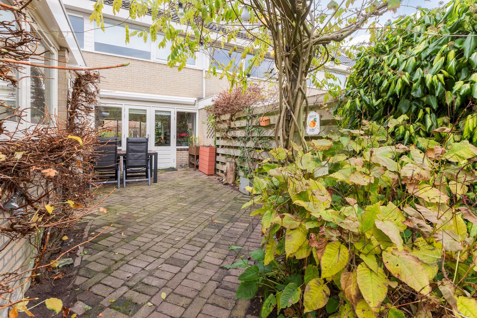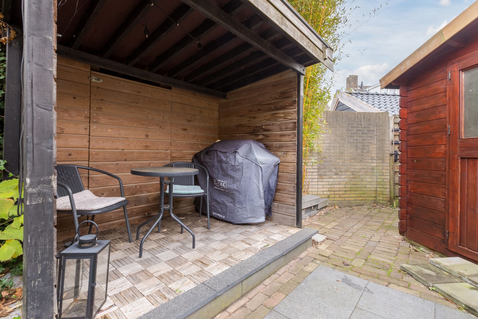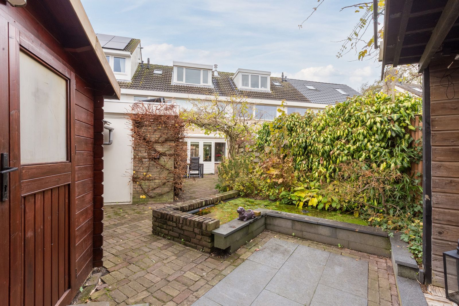De woning bevat een fijne, groene achtertuin op het oosten. ’s Morgens een kopje koffie in de zon en ‘s middags genieten van het zonnetje achterin de tuin. Dat kan hier allemaal in deze oase van groen! Er is een houten berging aanwezig voor de tuinspullen en de fietsen. Tevens is er achterin de tuin een overkapping met een handige opbergplek.