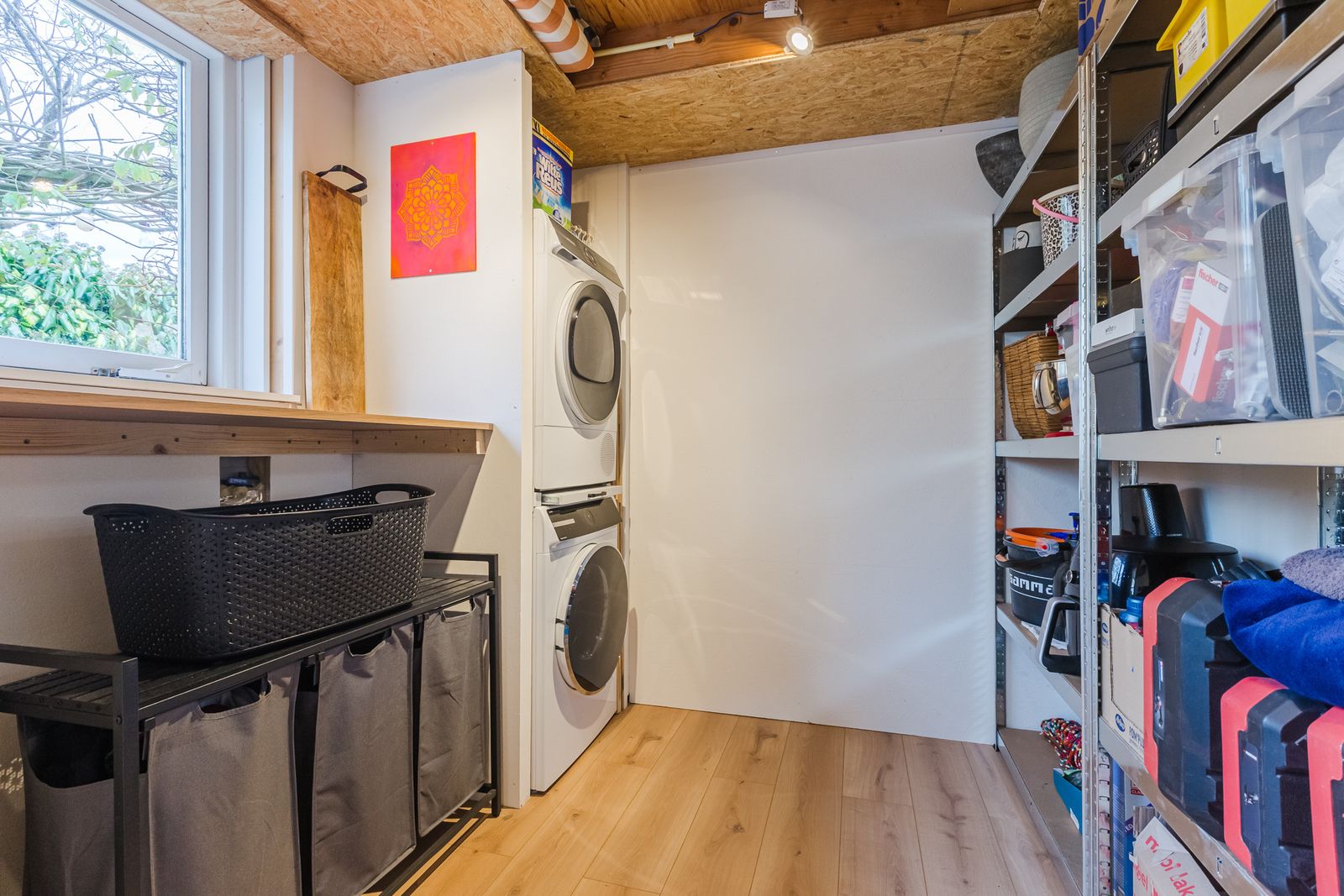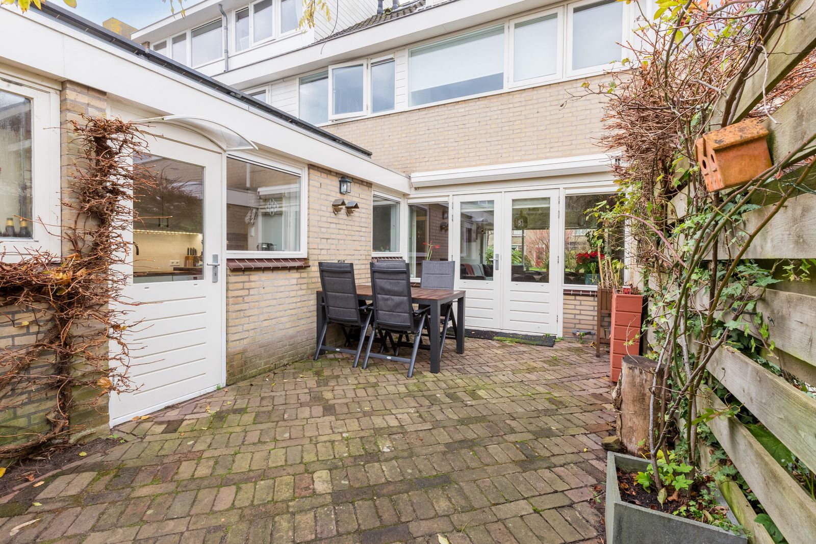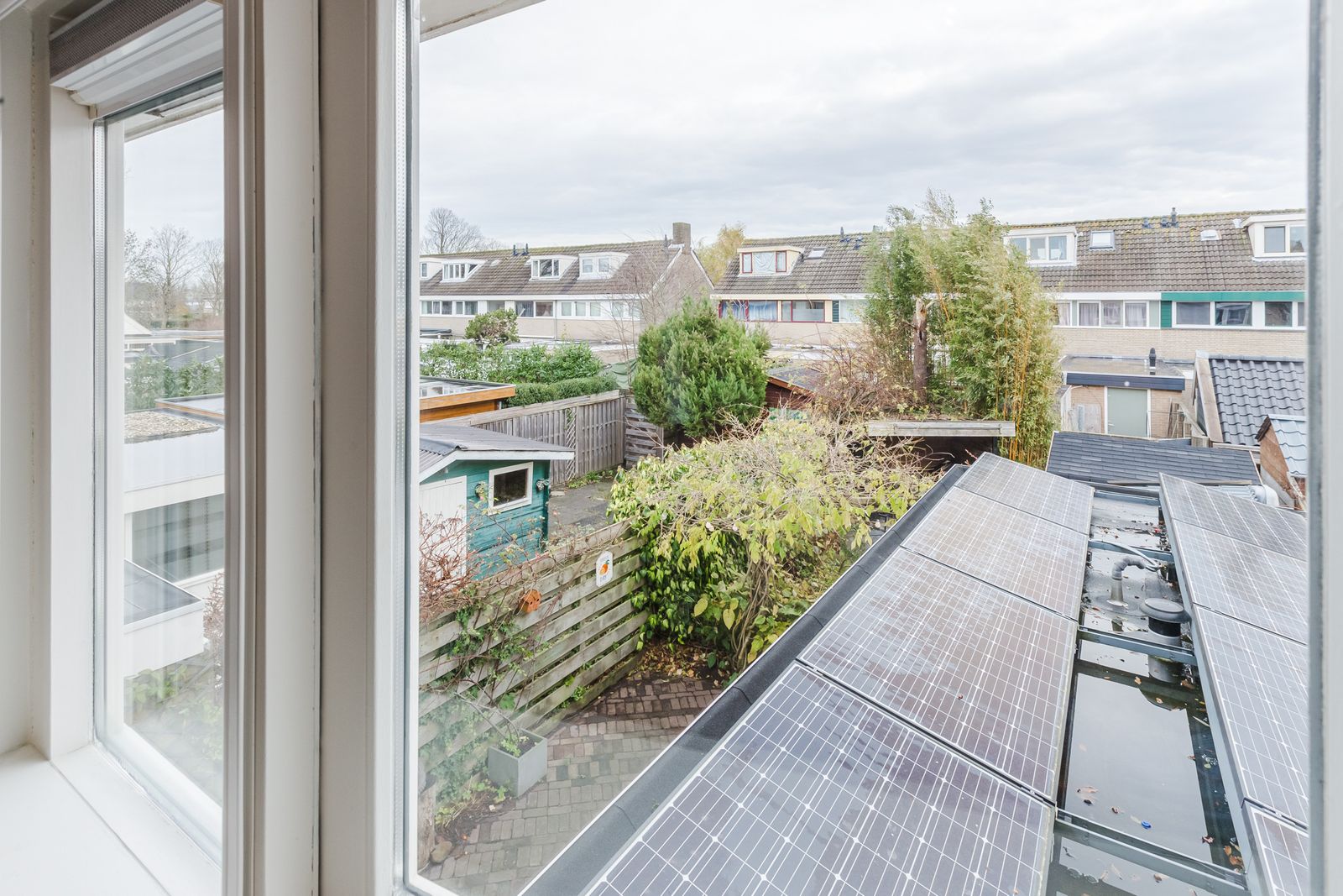 De woning bevat een fijne, groene achtertuin op het oosten. ’s Morgens een kopje koffie in de zon en ‘s middags genieten van het zonnetje achterin de tuin. Dat kan hier allemaal in deze oase van groen! Er is een houten berging aanwezig voor de tuinspullen en de fietsen. Tevens is er achterin de tuin een overkapping met een handige opbergplek.