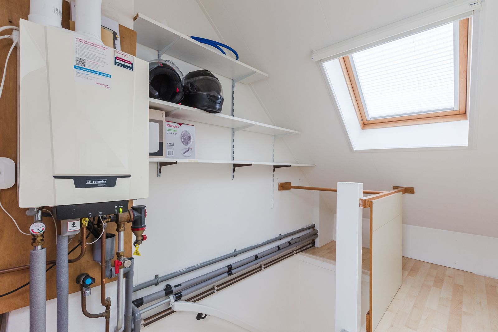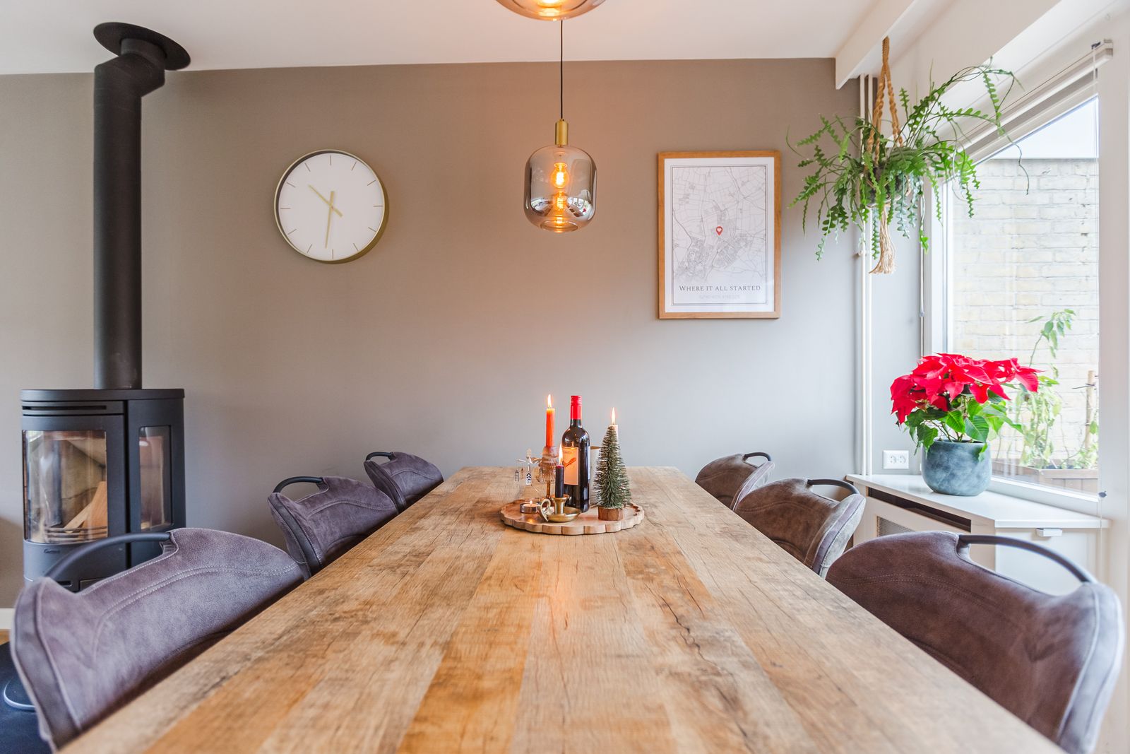 Indeling begane grond: entree/hal met meterkast, toilet met fontein, trapopgang en toegang tot de woonkamer. De woonkamer met houtkachel is straatgericht en vrij aan de voor- en achterzijde. De woonkamer is fijn verlicht en heeft een gestukt plafond met inbouwspots. De moderne, lichte keuken aan de tuinzijde is in een hoekopstelling geplaatst, heeft recent een upgrade gekregen en is voorzien van een inductiekookplaat, afzuigkap, vaatwasser en combi-oven/magnetron. De losstaande koel-/vriescombinatie wordt ter overname aangeboden. Via de keuken heb je toegang tot de bijkeuken. Hier is de opstelplaats voor het witgoed. Vanuit de keuken loop je de prachtige, groene achtertuin in. Indeling 1e verdieping: overloop met toegang tot drie ruime slaapkamers. De badkamer is voorzien van een douche, toilet, wastafelmeubel en designradiator. Er is tevens elektrische vloerverwarming aanwezig. Indeling 2e verdieping: via de vaste trap kom je op de zolderverdieping. Hier tref je een voorzolder met de cv-opstelling (Remeha, 2017) en een royale (hoofd)slaapkamer met vaste kasten. Door de dakkapellen aan de voor- en achterzijde is de slaapkamer goed bemeten en absoluut fraai te noemen! De dakkapel aan de voorzijde beschikt over elektrische rolluiken.