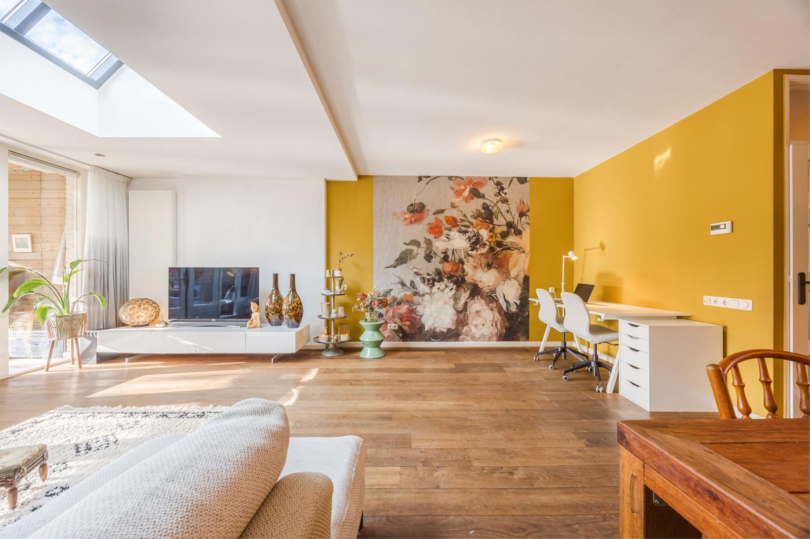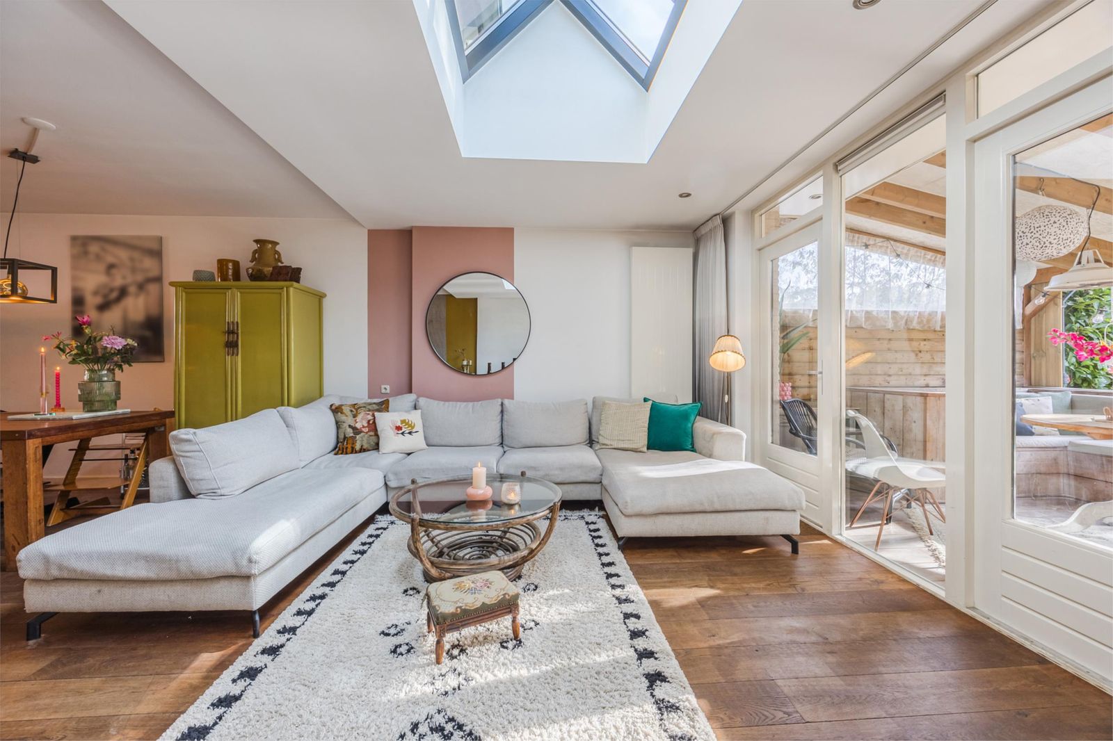 De royale uitbouw met zadeldak zorgt voor extra hoogte, veel lichtinval en een prachtig ruimtelijk gevoel. Hierdoor voelt de woonkamer bijzonder licht en open aan.