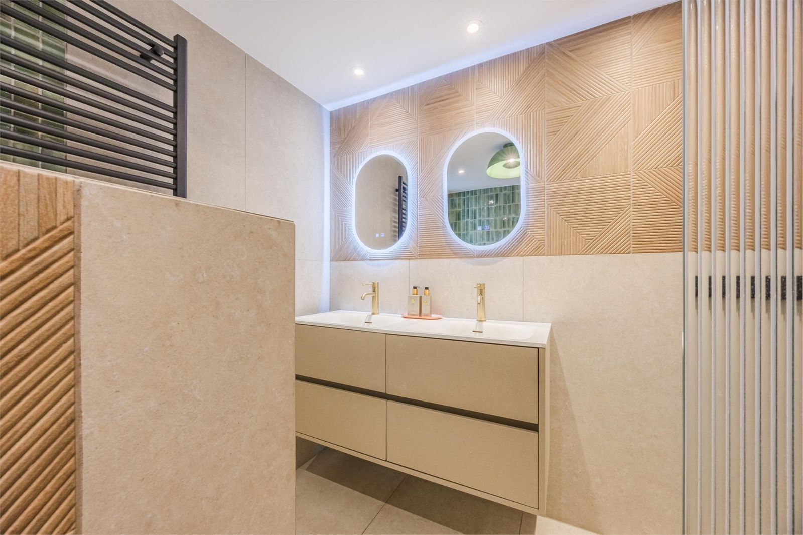 De recent gerenoveerde badkamer is modern afgewerkt en van alle gemakken voorzien.