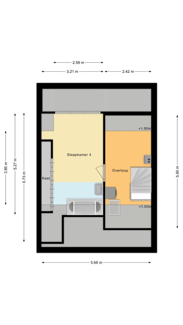 Hier bevindt zich een ruime vierde slaapkamer met een badkamer ensuite. Dankzij de dakkapel geniet je hier van extra licht en ruimte, terwijl de airconditioning zorgt voor extra comfort. Hierdoor ontstaat een heerlijke master bedroom waar rust en privacy centraal staan.