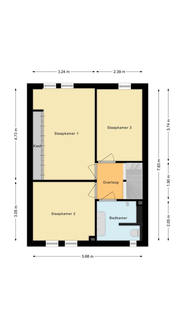 Op de eerste verdieping bevinden zich drie comfortabele slaapkamers die flexibel te gebruiken zijn, bijvoorbeeld als kinderkamer, werkkamer of logeerkamer.
