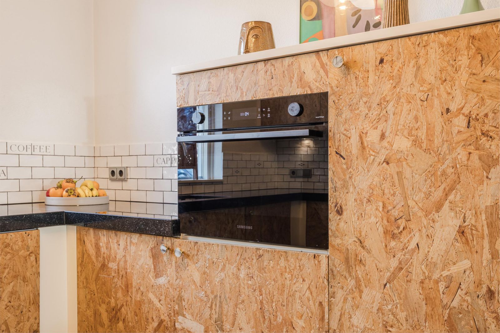 De open keuken is praktisch ingedeeld en beschikt over voldoende werk- en bergruimte. Het is een plek waar koken en samenzijn vanzelf samenkomen – het echte hart van het huis.