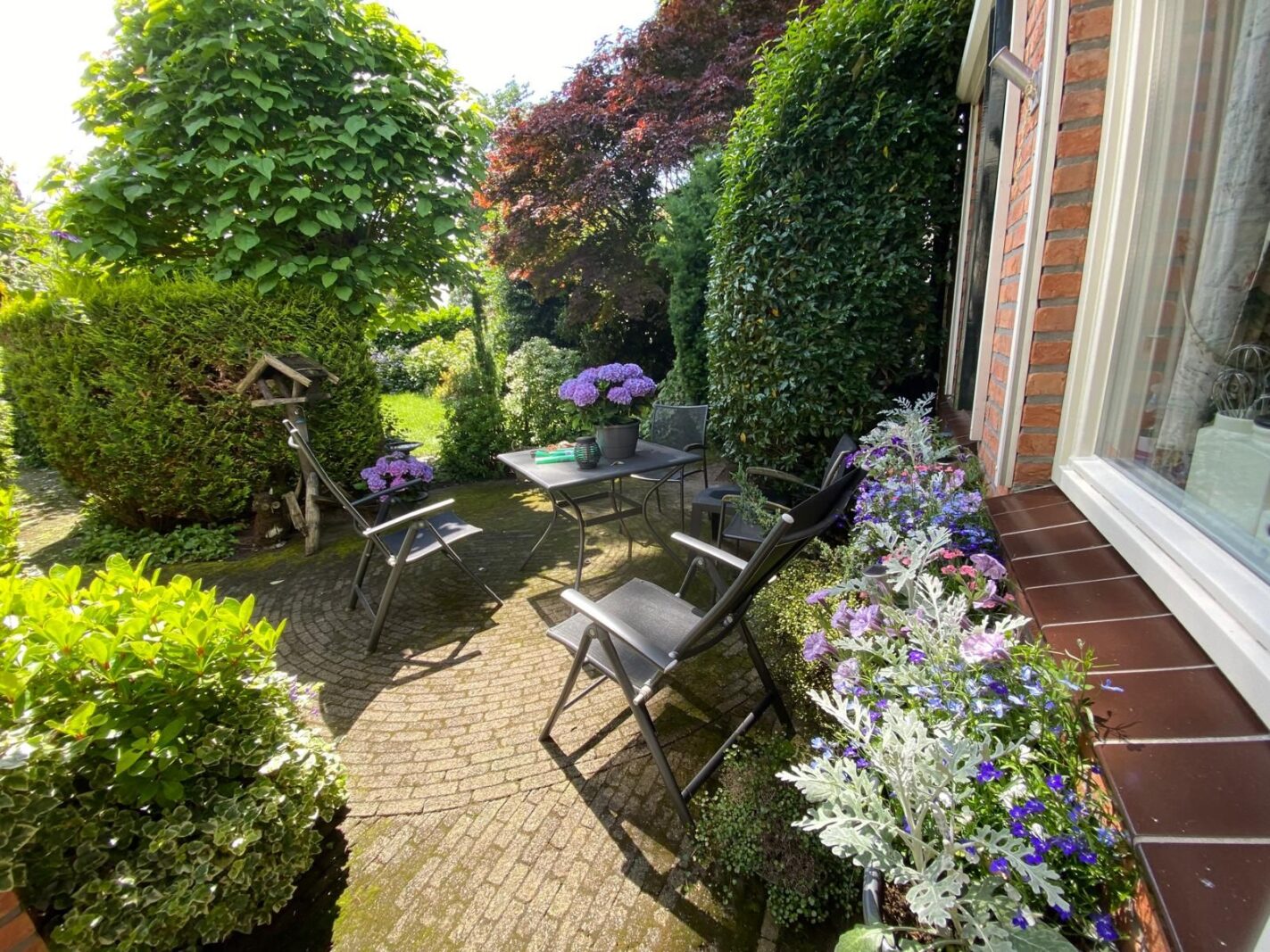 Via de deur met mooi geslepen ruiten komt u in de woonkamer. Deze is ruim en licht door de vele ramen en schuifpui aan de achterzijde. De karakteristieke marmeren schouw met gashaard is een sfeervolle en bijzondere blikvanger die de ruimte bovendien snel een aangename warmte geeft. De open en suite eetkamer, aansluitend aan de woonkamer, is tevens voorzien van een grote raampartij met glas tot op de vloer en een groot zijraam waardoor het geheel een open licht karakter heeft. De woon en eetkamer zijn net als de rest van het huis voorzien van radiatoren. De schuifpui biedt toegang tot het terras en de onderhoudsarme tuin en aan deze zijde van de woning heeft u een fraai uitzicht op een grote grasweide en oude bomenrijen. De eetkamer is groot genoeg om er een (slaap)kamer van te maken, zodat de woning levensloop bestendig is. De beneden gelegen badkamer is immers aansluitend aan de huidige eetkamer gesitueerd. Deze badkamer is voorzien van een wastafel met wastafelmeubilair, toilet, douche, radiator, mechanische ventilatie en bovenramen.