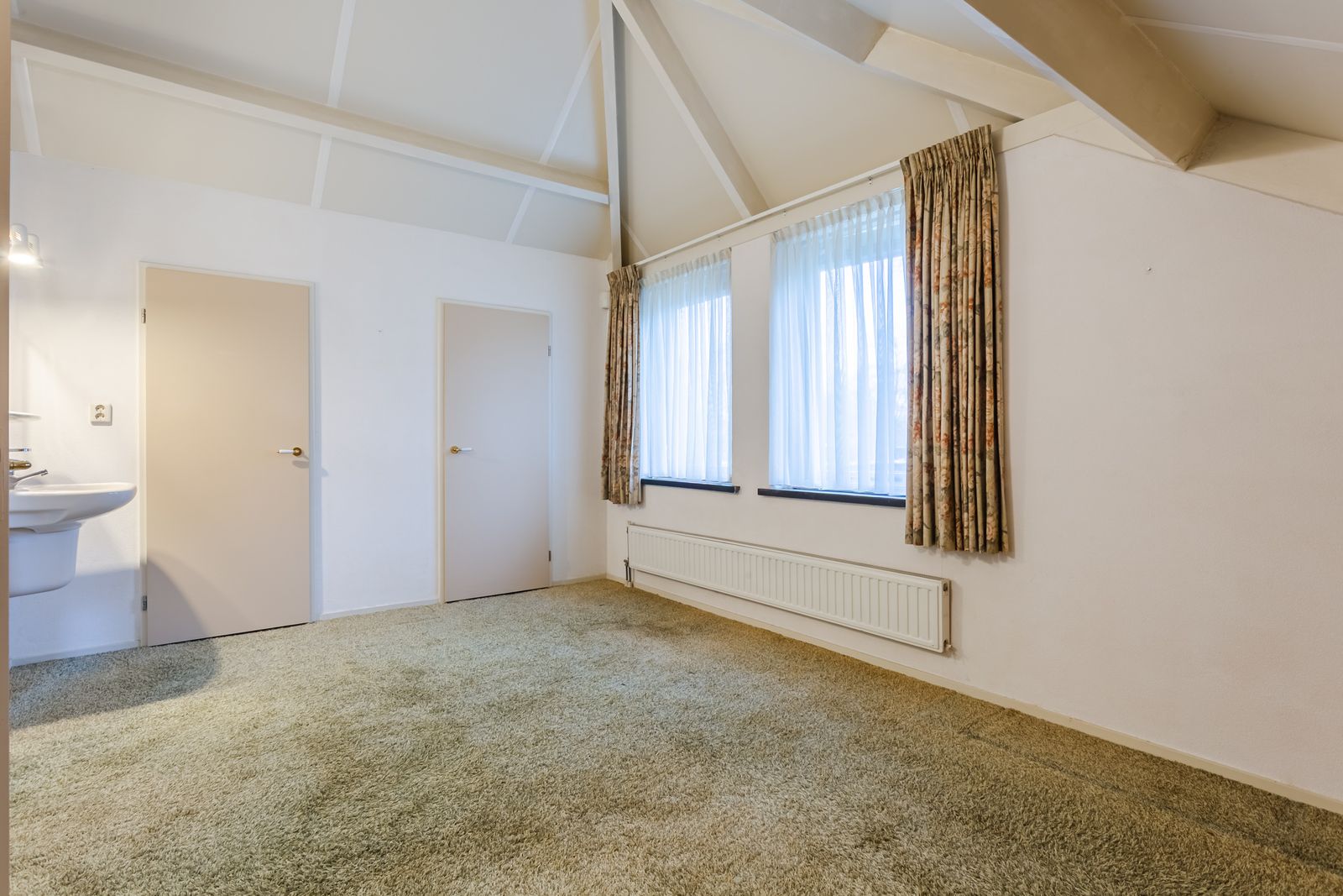 Met de trap of traplift komt u op de bovenverdieping. Boven is er in de grootste slaapkamer plaats voor een tweepersoonsbed en er is veel bergruimte. Er is een aparte bergruimte onder de schuine kap over de gehele breedte van de kamer, een vaste wastafel en een grote inloopkast. Deze inloopkast voorzien van planken en rails, voor nog meer bergruimte, is tevens geschikt als garderobekast voor meerdere personen. De kamer is voorzien van twee grote ramen met uitzicht op de tuin en het prachtige pand van de voormalige Jonker Schimmelpenninck.