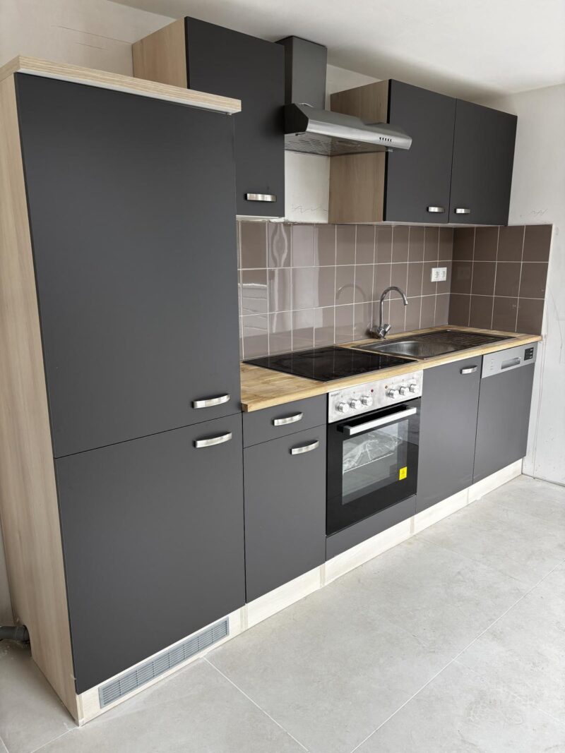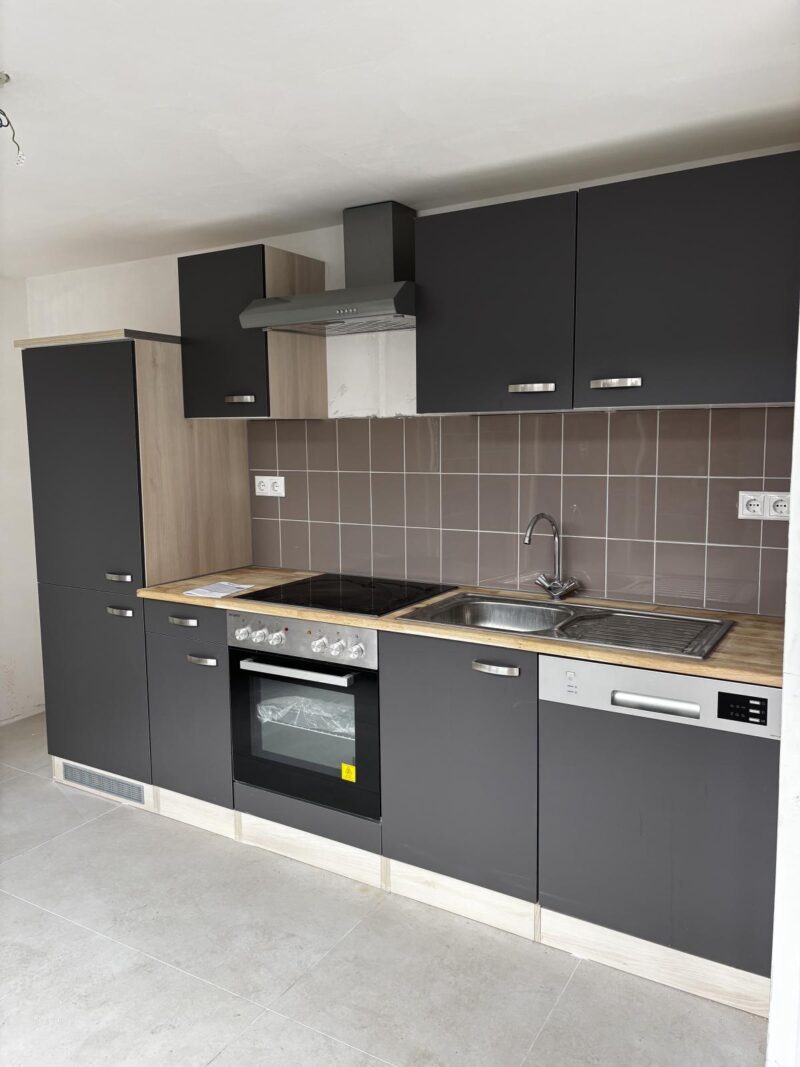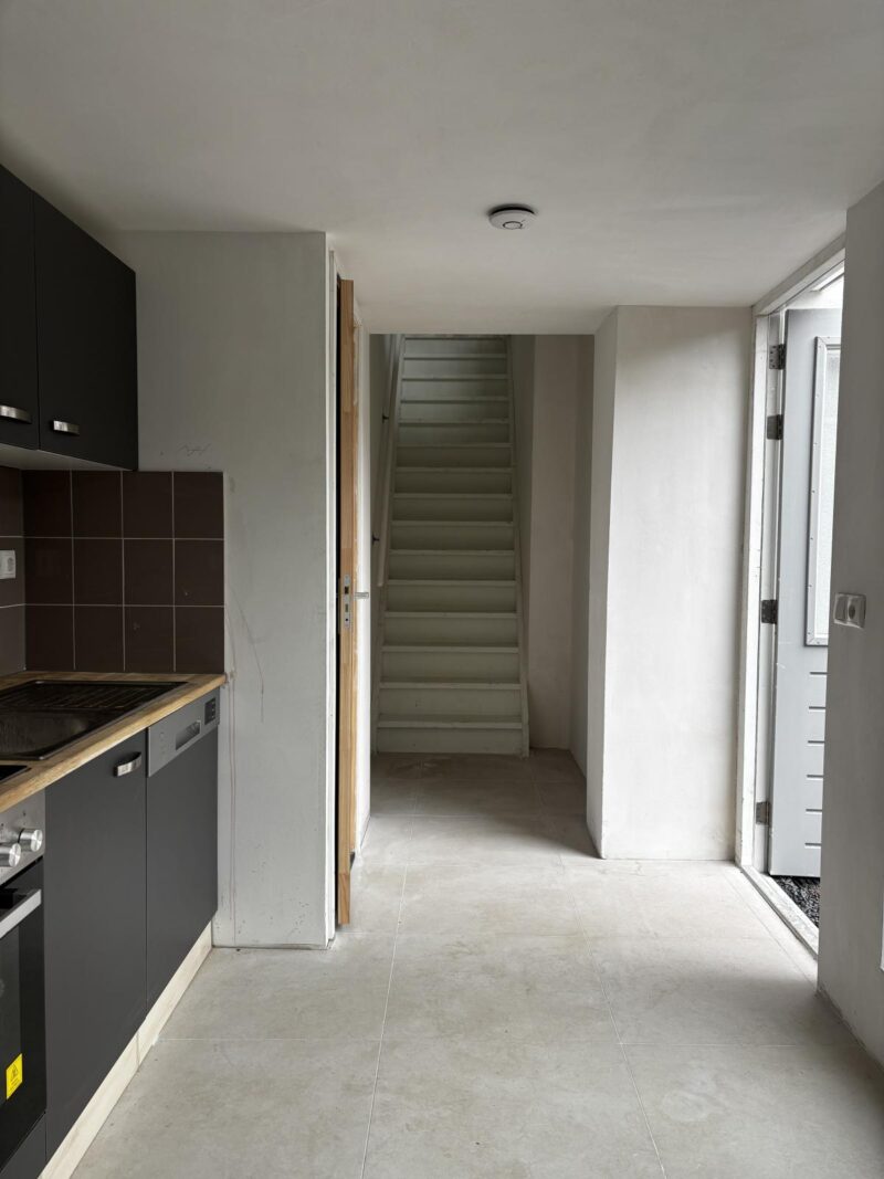 - Entree en keuken: De entree bevindt zich op de begane grond, waar u direct de keuken vindt, uitgerust met inbouwapparatuur zoals een kookplaat, oven en koelkast.