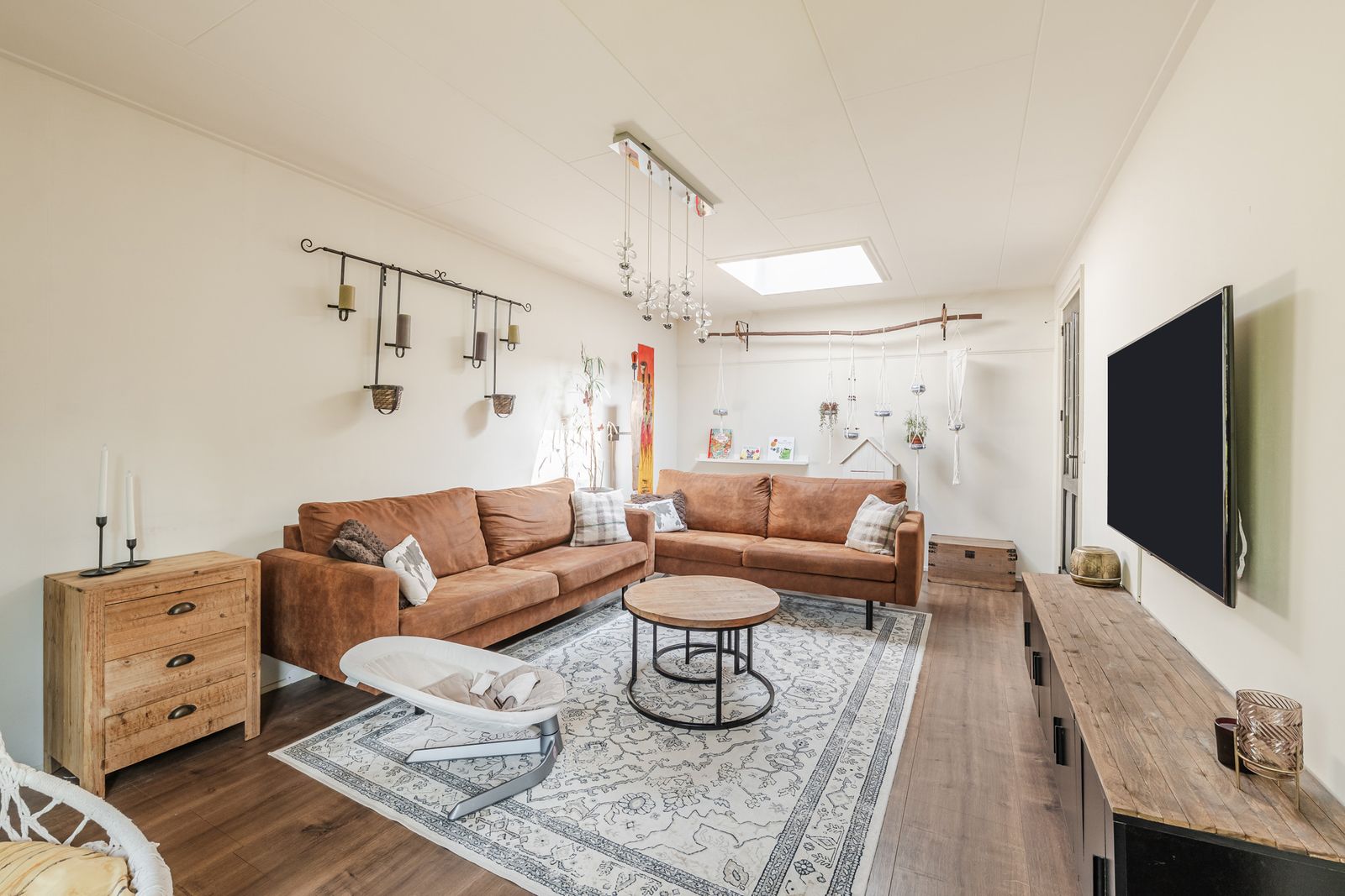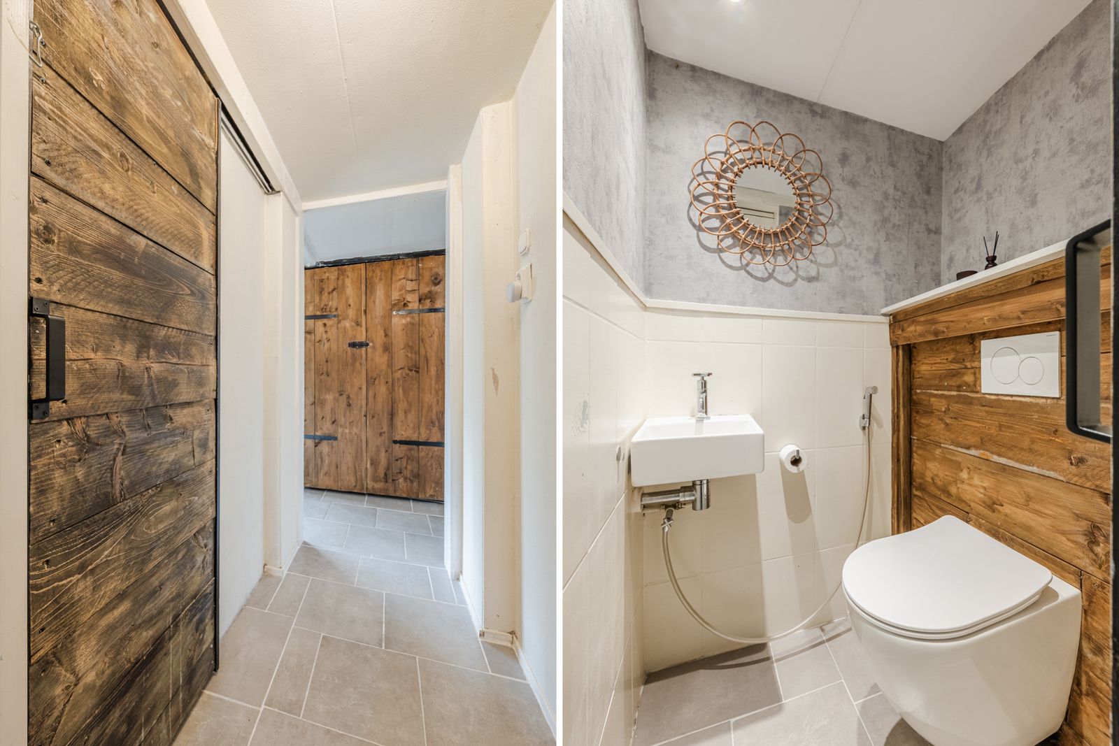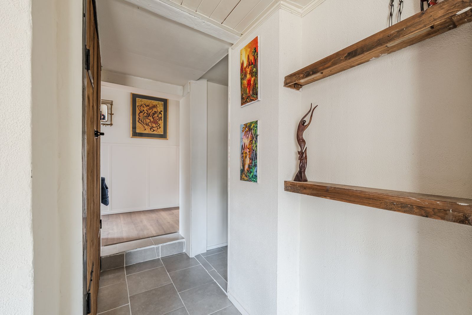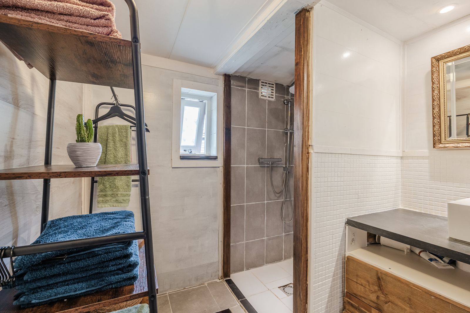 Bij binnenkomst via de zij-entree loop u via de hal vernieuwde keuken in, compleet met moderne keukenapparatuur. Aan de voorzijde van de woning vindt u een sfeervolle eetkamer met balkenplafond en laminaatvloer, perfect voor gezellige avonden met familie en vrienden. Vanuit de centrale hal is de badkamer bereikbaar, en biedt alle benodigde voorzieningen, waaronder een toilet, wastafelmeubel en douche. De wasmachineaansluiting en de cv-installatie bevinden zich in een afgesloten ruimte.