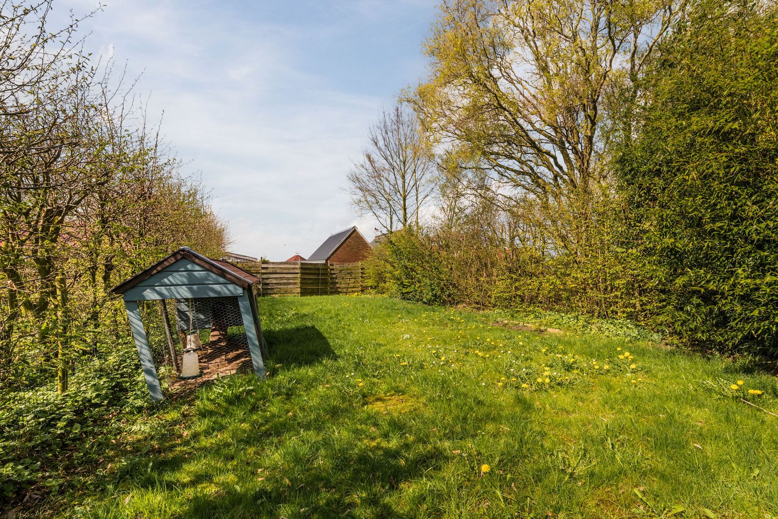 Ruime achtertuin op het noordwesten, ideaal voor zonnige middagen en gezellige barbecues. De vrijstaande houten schuur, gebouwd in 2006, biedt talloze mogelijkheden voor opslag of het uitoefenen van uw favoriete hobby's.