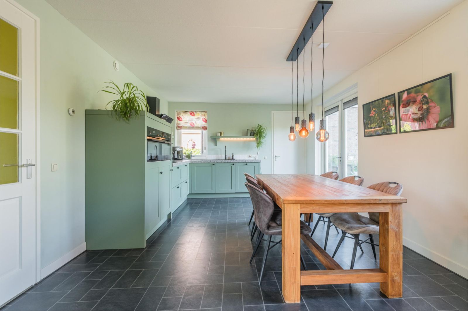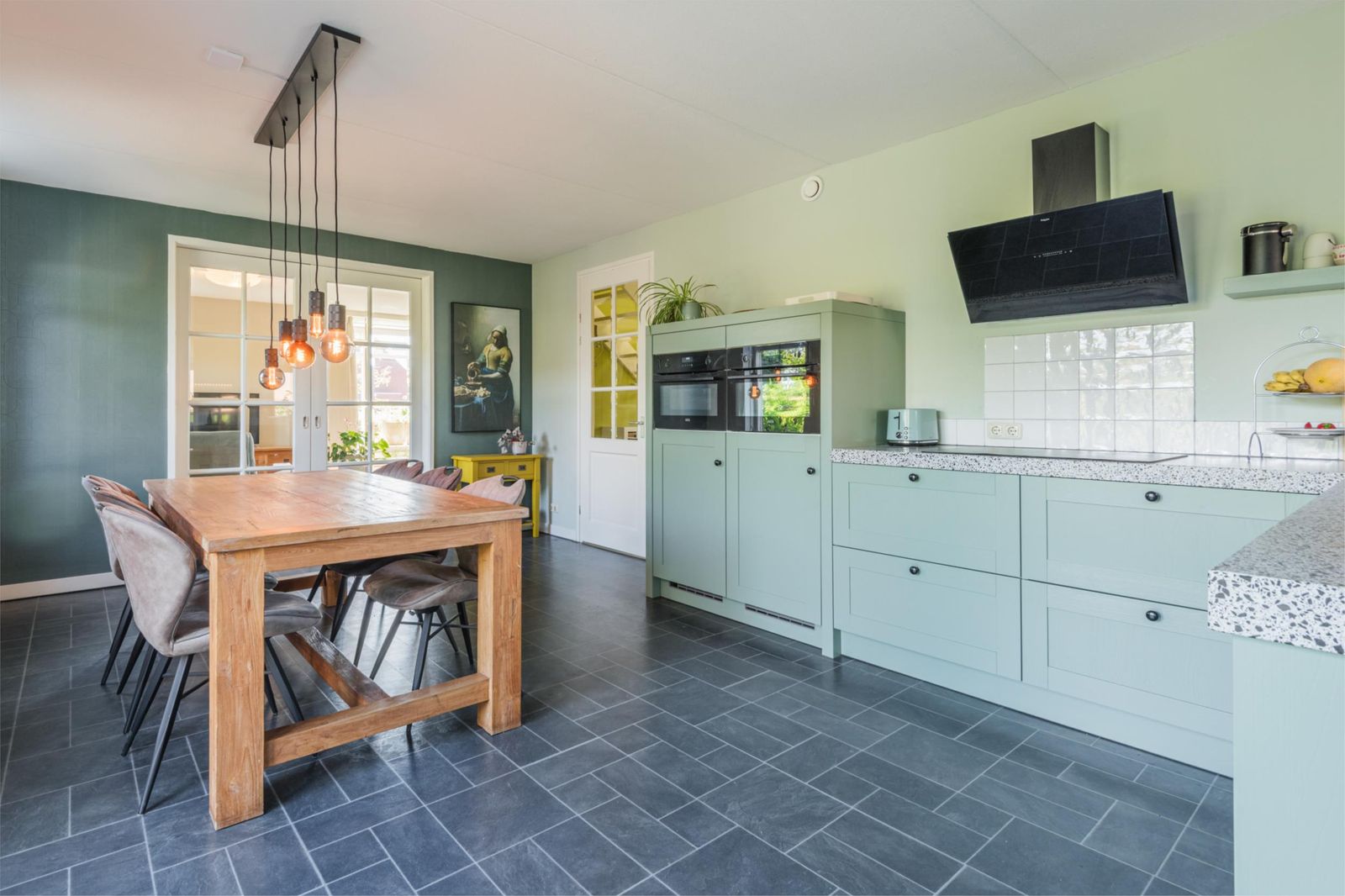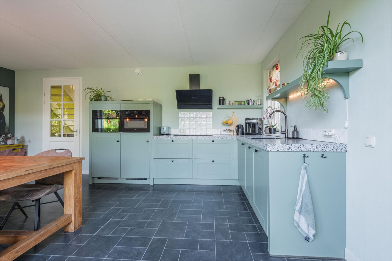 De keuken is met de woonkamer verbonden met grote schuifdeuren. In de keuken is vloerverwarming met een praktische laminaten vloer.