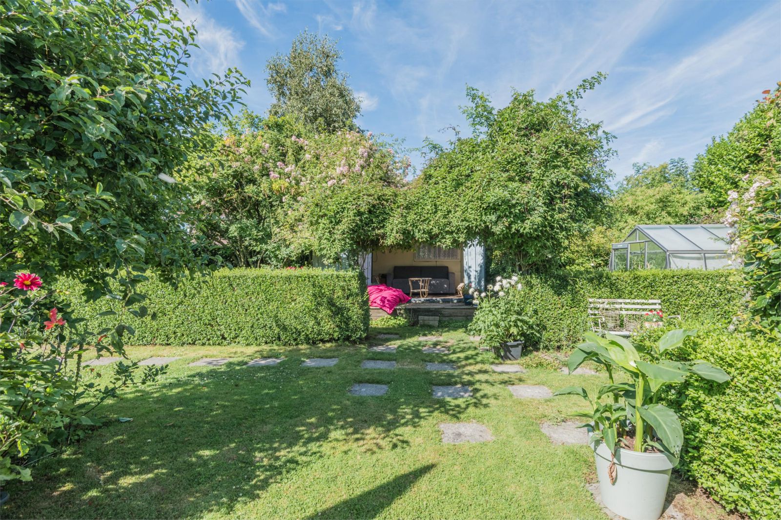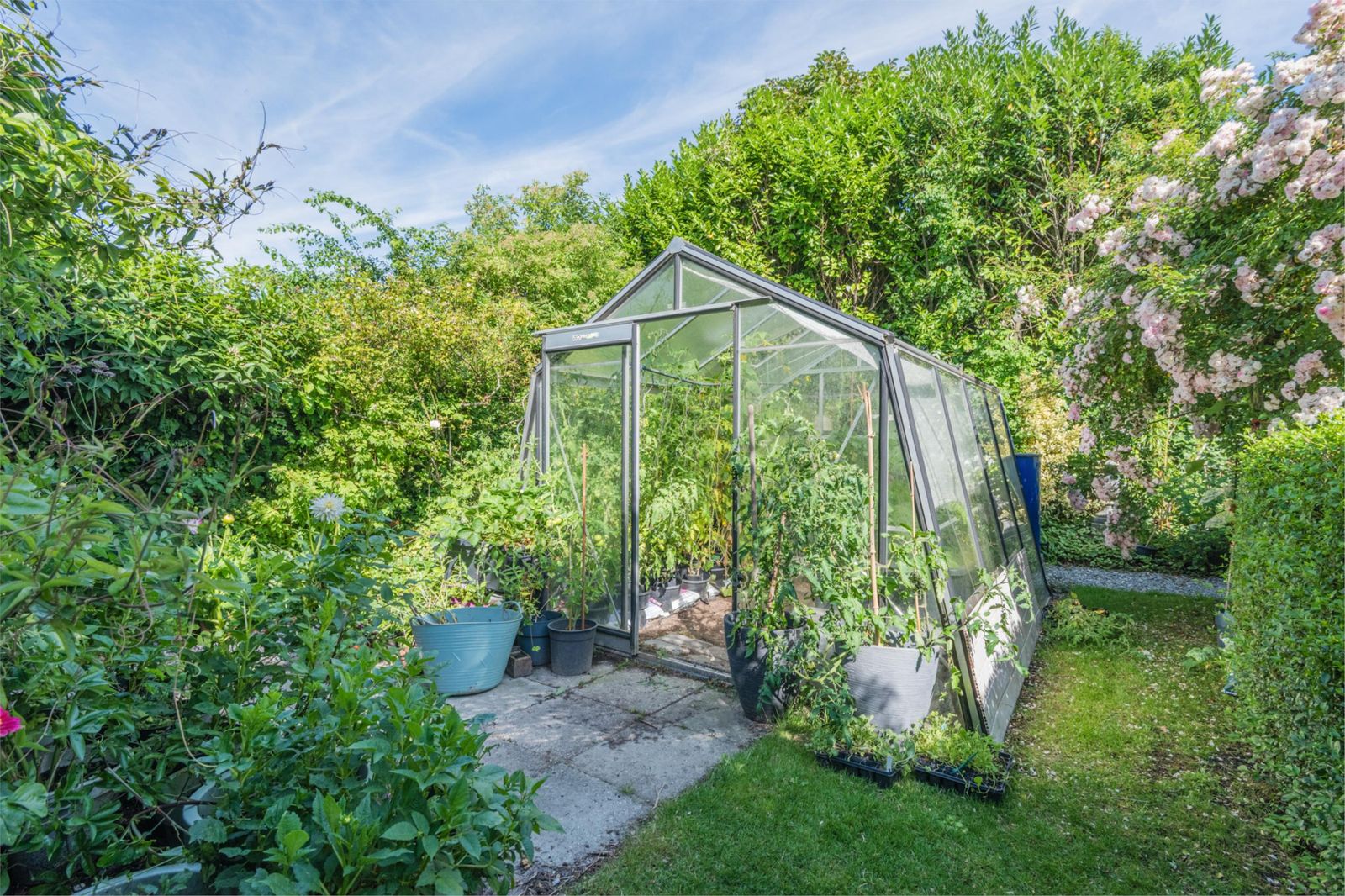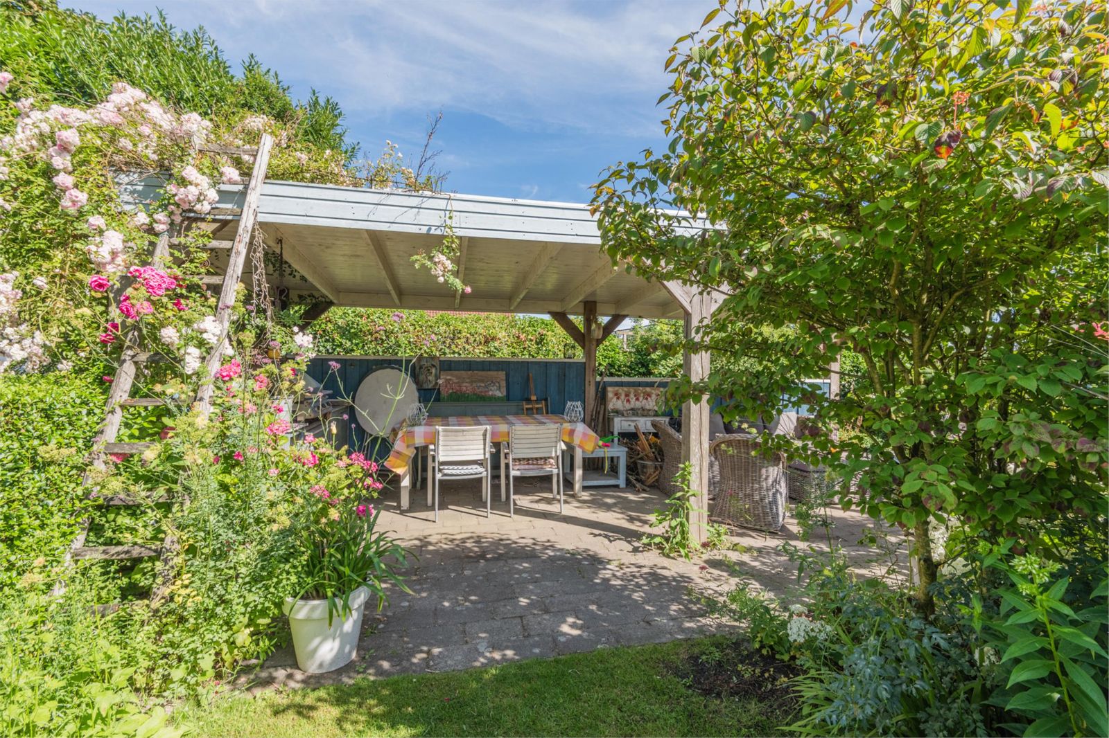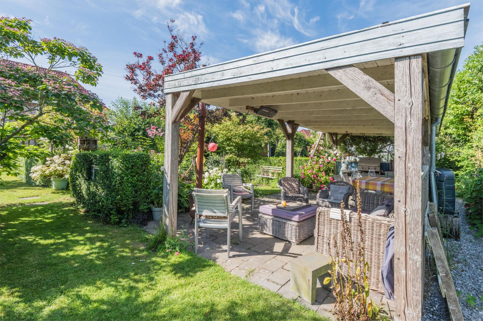 Tuin: Een zeer royale achtertuin op het zuidwesten met meerdere terrassen, perfect voor zomerse barbecues en ontspanning. Zo is er een grote overkapping achterin de tuin en als een van de verrassingen is er een Pipowagen. De vele doorkijkjes maakt de tuin een plezierige plek voor jong en oud,