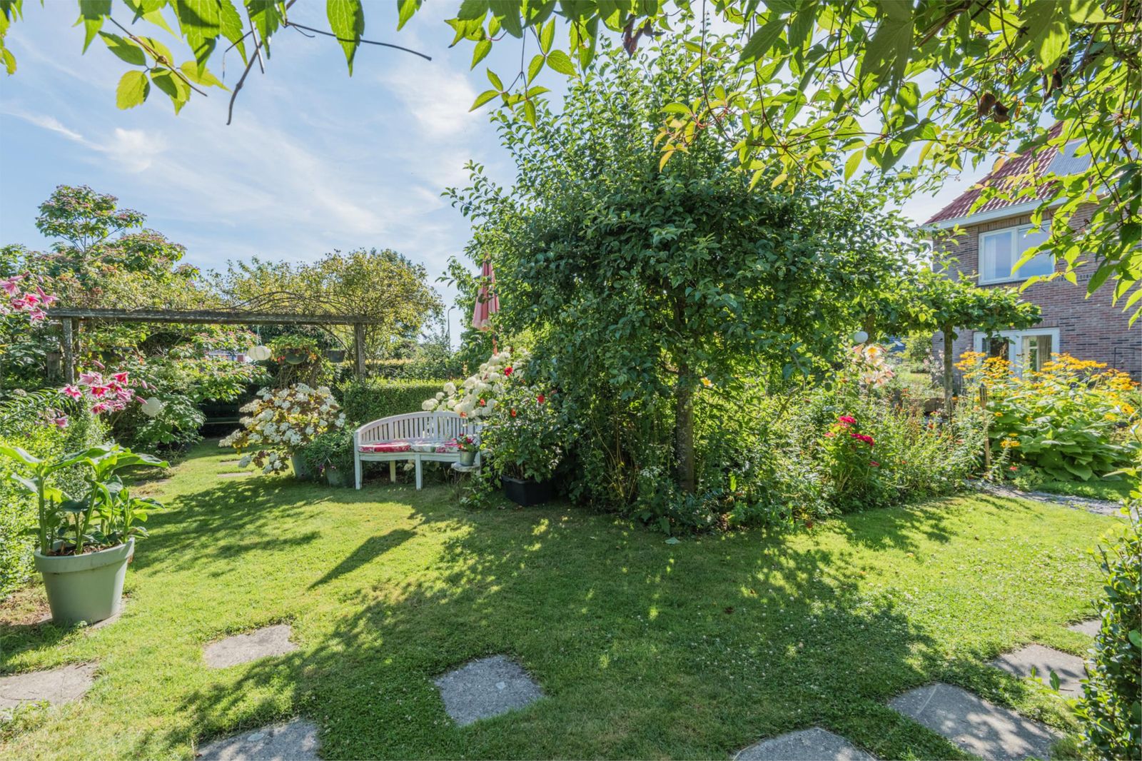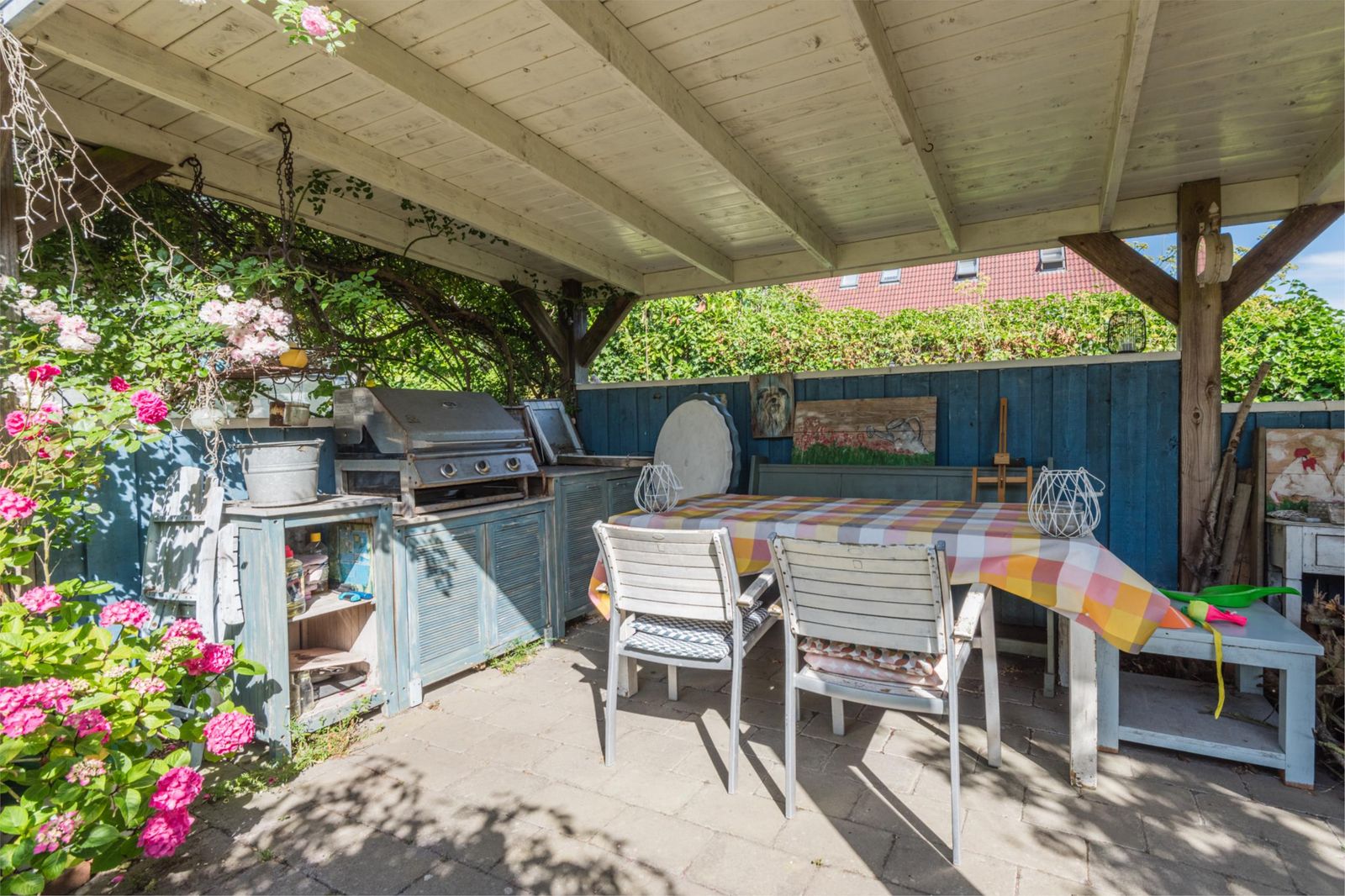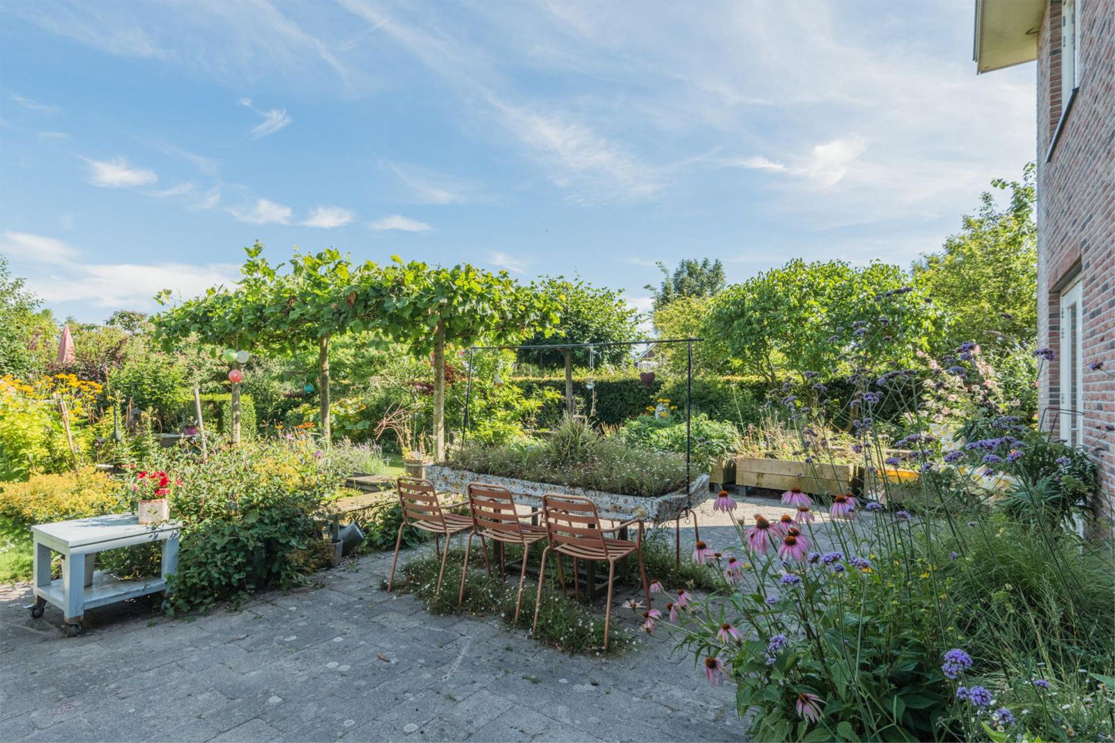 Tuin: Een zeer royale achtertuin op het zuidwesten met meerdere terrassen, perfect voor zomerse barbecues en ontspanning. Zo is er een grote overkapping achterin de tuin en als een van de verrassingen is er een Pipowagen. De vele doorkijkjes maakt de tuin een plezierige plek voor jong en oud,