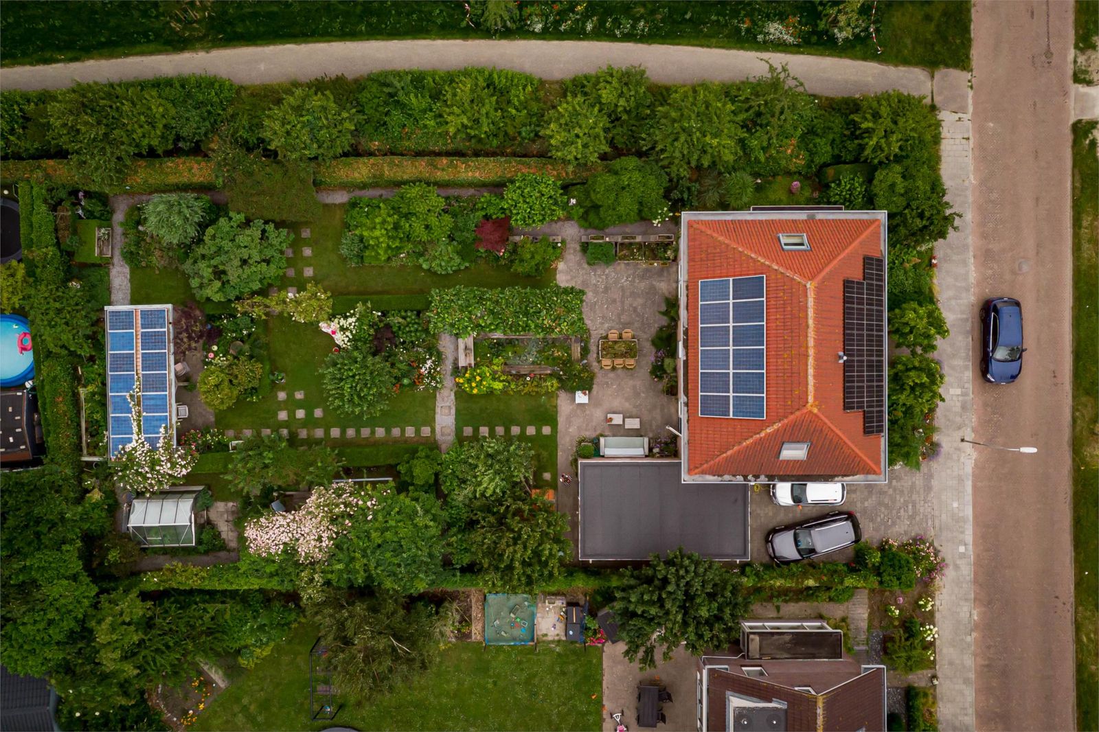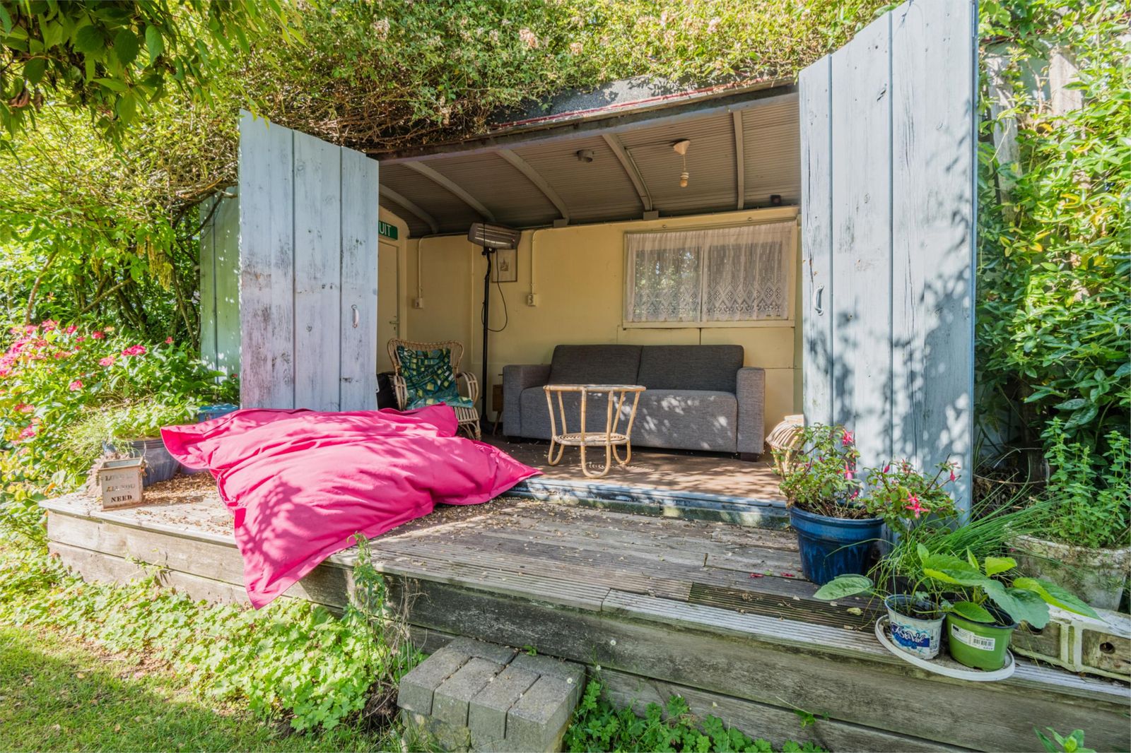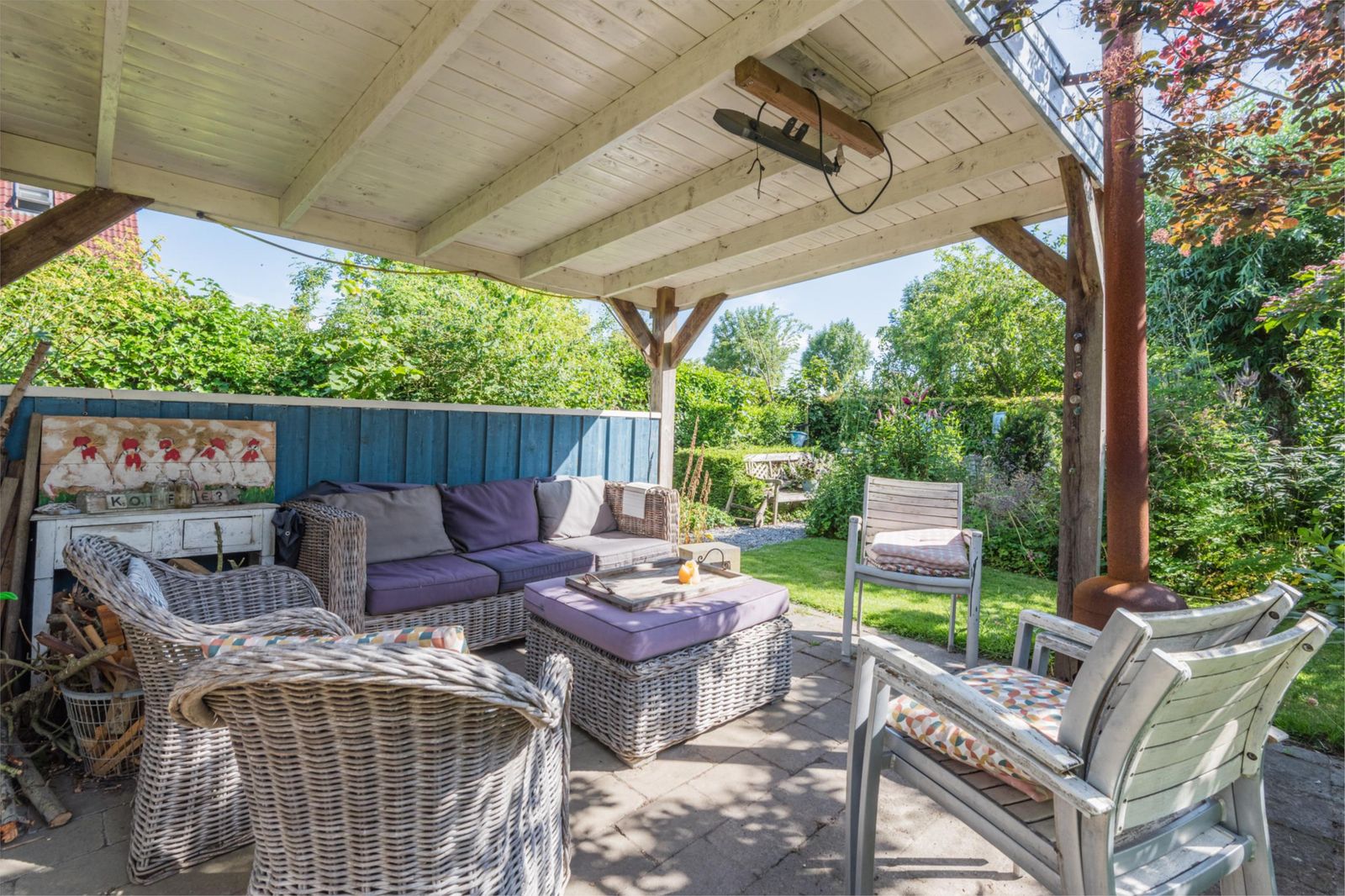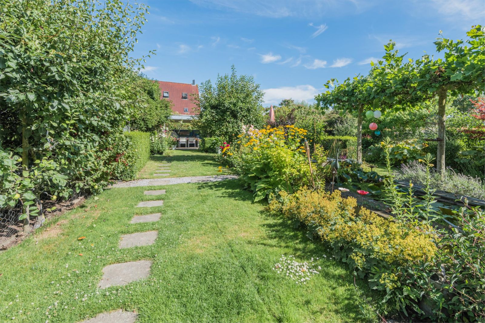 Tuin: Een zeer royale achtertuin op het zuidwesten met meerdere terrassen, perfect voor zomerse barbecues en ontspanning. Zo is er een grote overkapping achterin de tuin en als een van de verrassingen is er een Pipowagen. De vele doorkijkjes maakt de tuin een plezierige plek voor jong en oud,