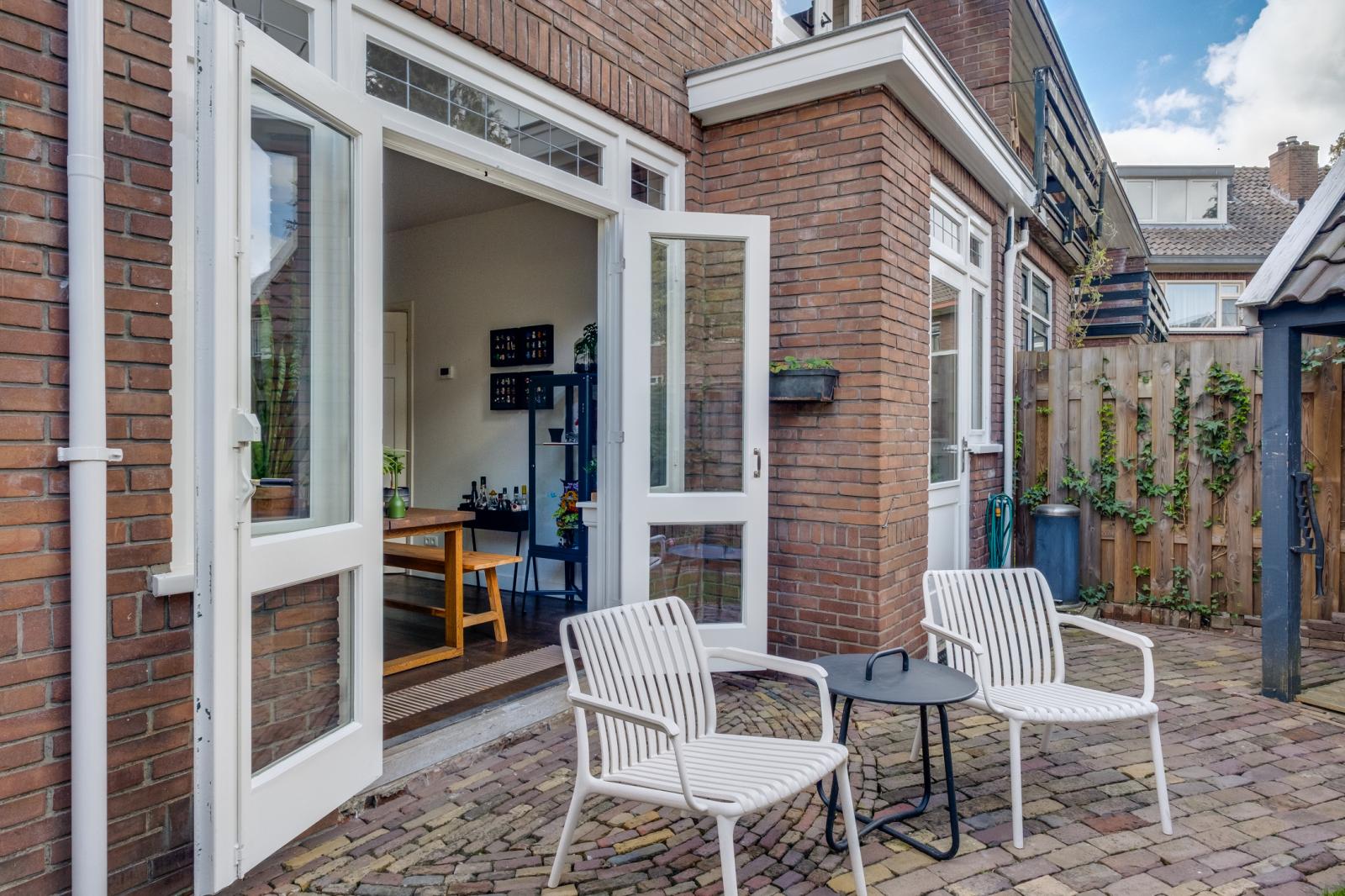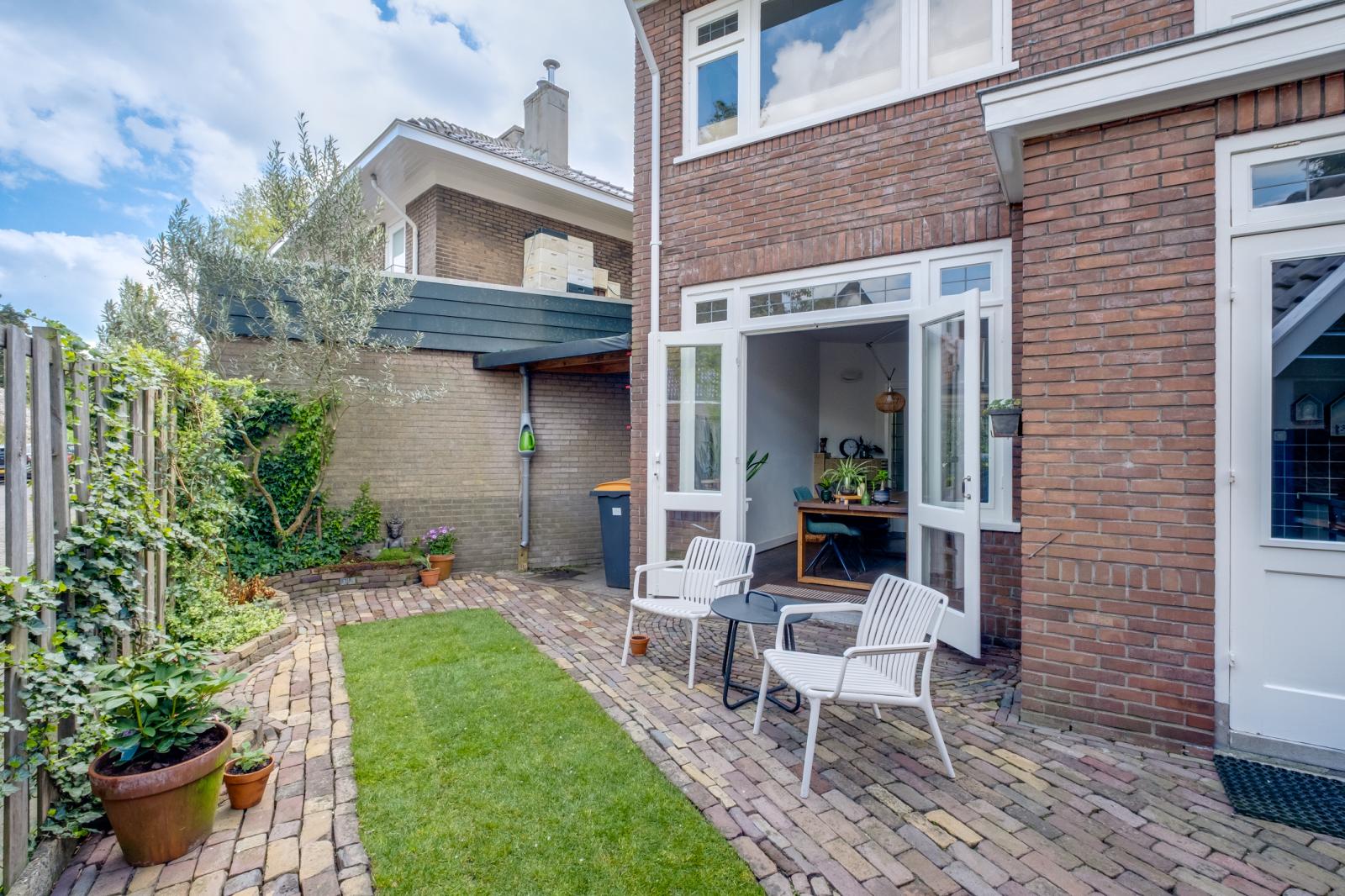 Buiten beschikt de woning over een fijne stadstuin en aan de voorzijde is een leuke plek gecreëerd om in de zon van een kop koffie te genieten.