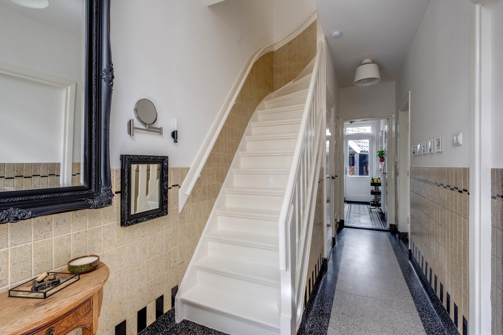 De woning beschikt over drie slaapkamers en een ruime zolderverdieping met een groot dakkapel, wat zorgt voor extra ruimte en mogelijkheden. Binnen treft u diverse karakteristieke elementen, zoals paneeldeuren, een granito vloer, een kamer en suite, schouwen, tegellambrisering en glas-in-loodramen, die de woning een warme en authentieke uitstraling geven.