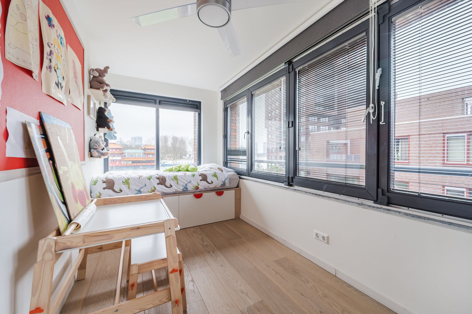 “Het uitzicht verveelt nooit: boten die voorbij varen, de skyline van Rotterdam en het park dat letterlijk aan onze tuin grenst. Je woont hier rustig, maar toch midden in de stad. Binnen vijf minuten sta je bij de tram of metro en in tien minuten fiets je naar het centrum. De buurt is gezellig, kindvriendelijk en alles is dichtbij: van scholen tot musea en fijne restaurants. Onze kinderen konden autovrij buiten spelen in het park, terwijl wij vanuit de woning een oogje in het zeil hielden. Sporten? Basic-Fit op loopafstand, hardlopen langs de Maas of racefietsen richting de Krimpenerwaard zonder hinder van verkeerslichten – het kan allemaal.”