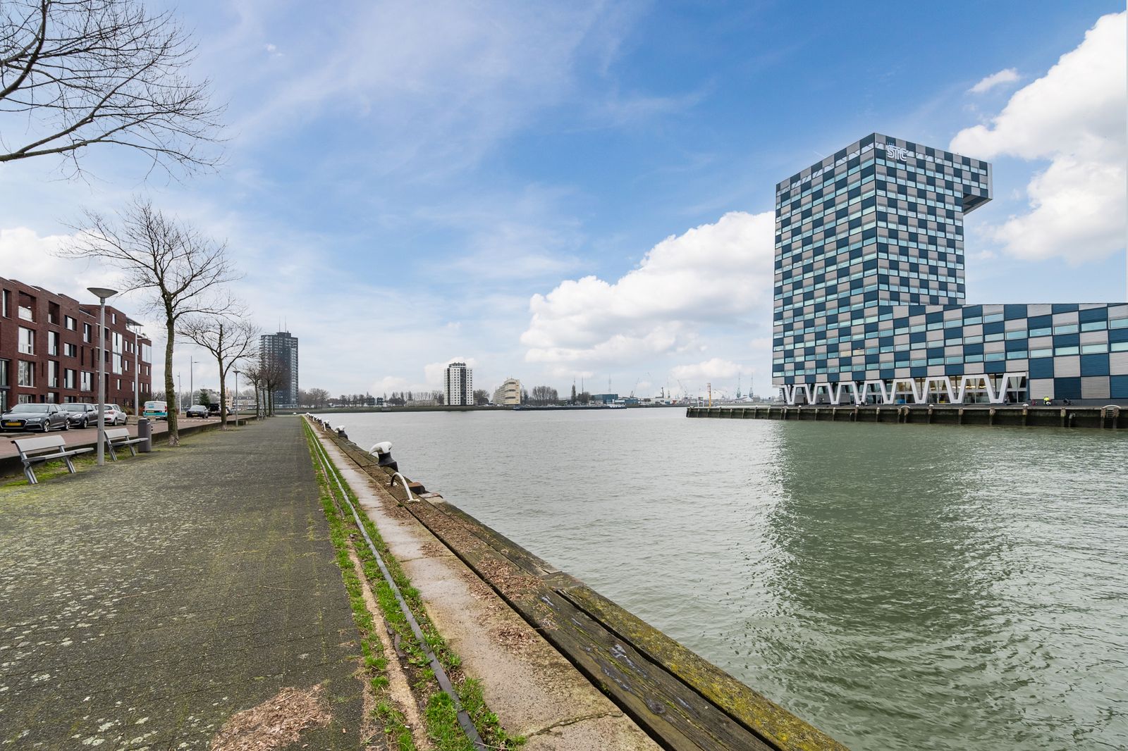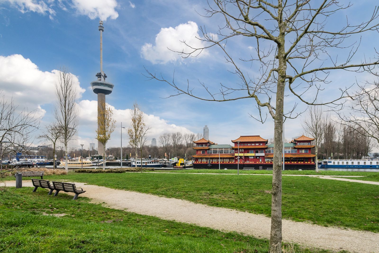 Wonen aan het water én aan het park? Deze ruime gezinswoning (163 m²) op de Müllerpier biedt het allemaal: een eigen tuin (22 m²), drie verdiepingen, drie slaapkamers met uitzicht op de Euromast en Parkhaven, en energielabel A. Geniet van licht, ruimte en een fenomenaal panorama over de Parkhaven van Euromast tot Nieuwe Maas, met een woonkamer van 3,2 meter hoog voor een prachtig ruimtelijk effect. Het centrum, scholen, musea, horeca én een Albert Heijn liggen op loop- of fietsafstand. Binnen enkele minuten sta je bij de watertaxi, waarmee je snel naar Katendrecht of Hotel New York vaart. Dit is comfortabel wonen in het hart van Rotterdam, met rust én stadse dynamiek binnen handbereik.